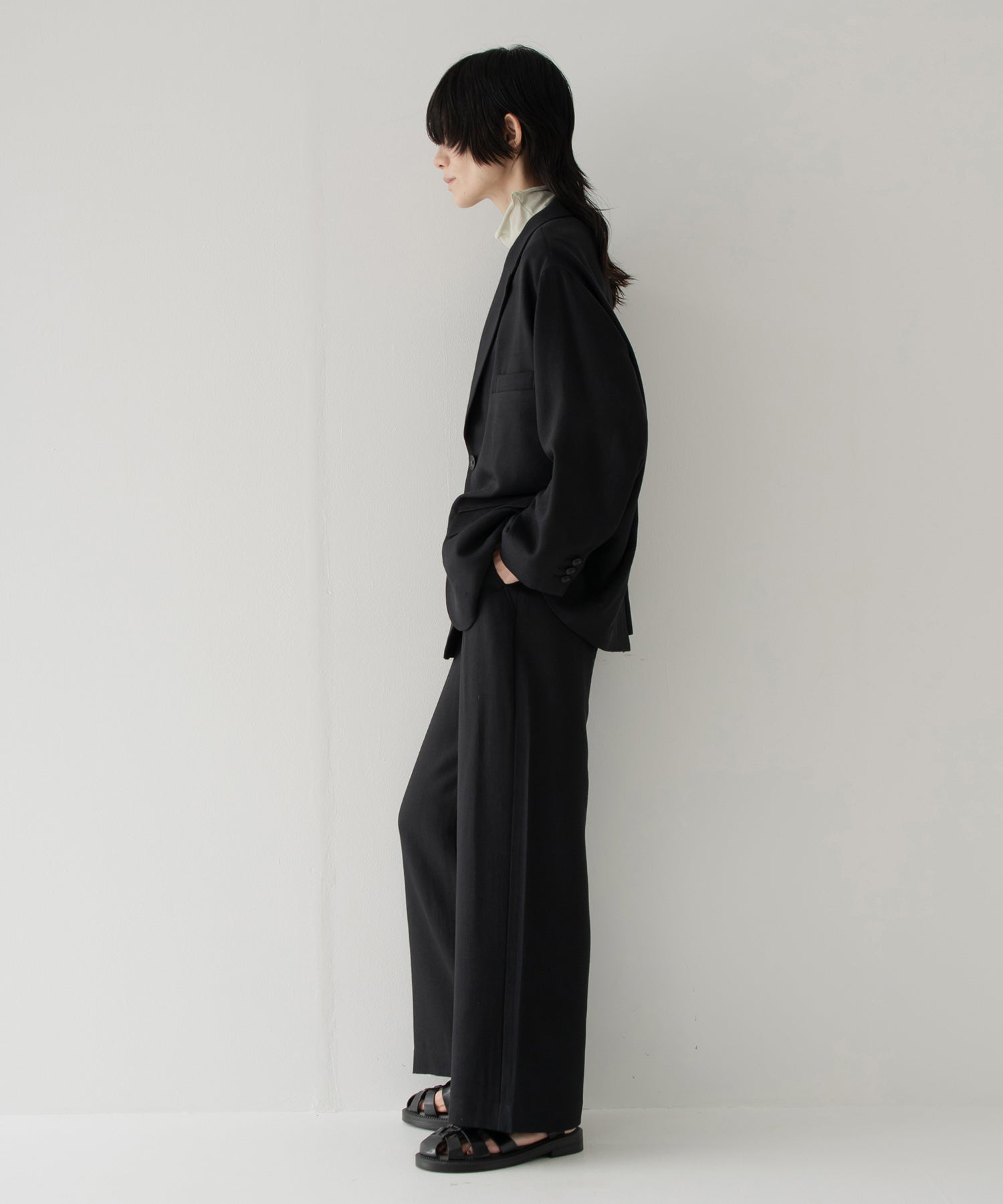 サマーウール特有の軽やかさと通気性を備え、快適な着心地を実現しながら、レーヨンのしなやかな落ち感と上品な光沢がフォーマルな表情を引き立てます。