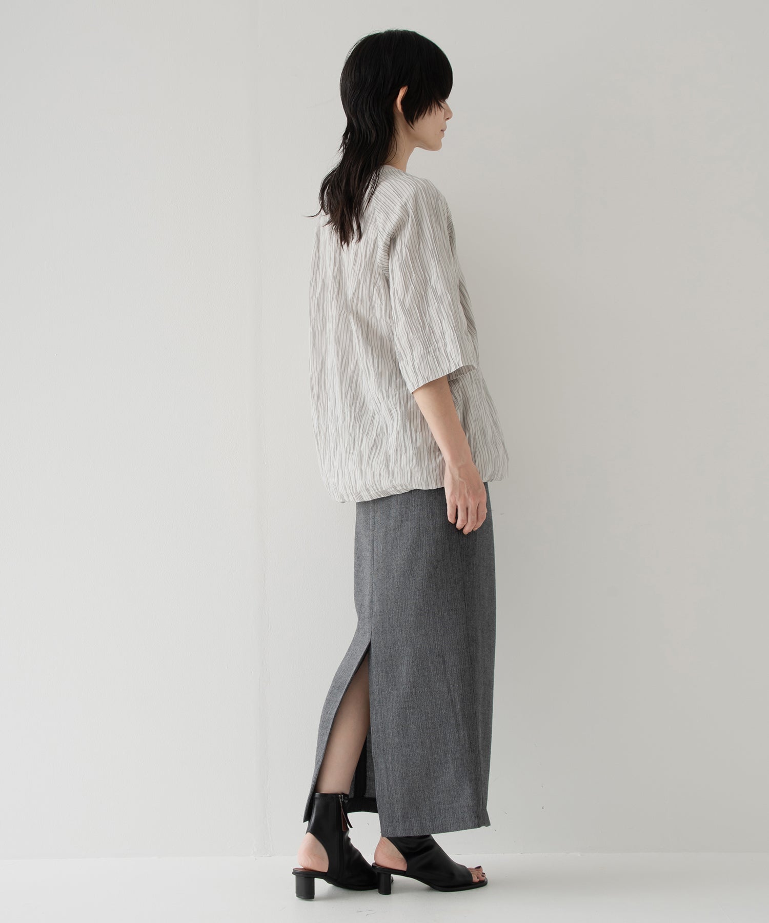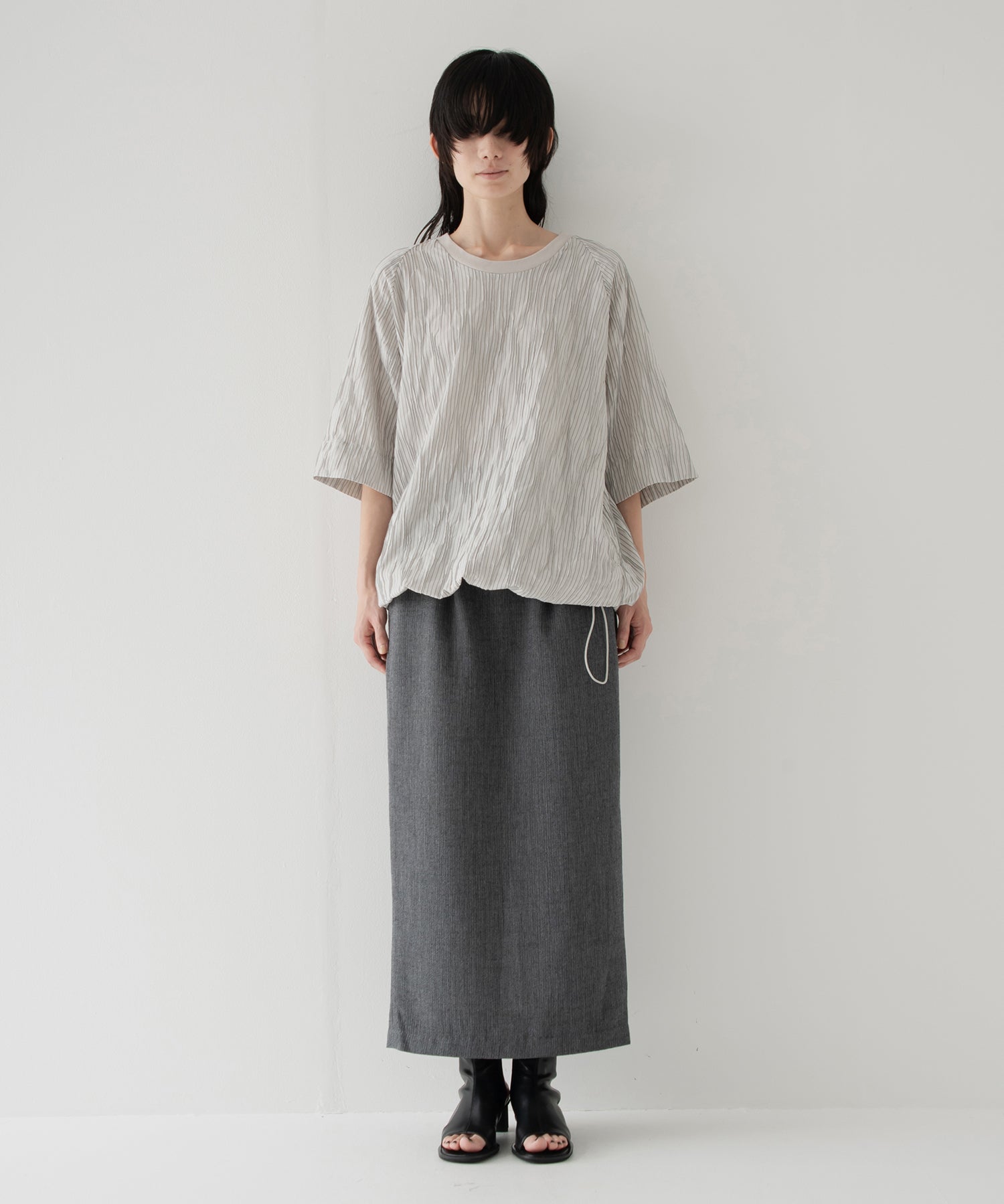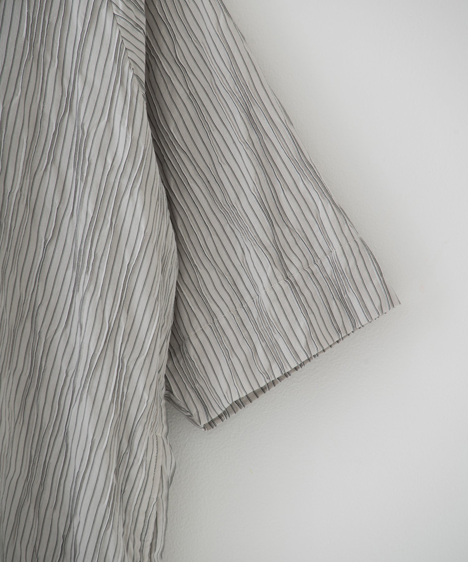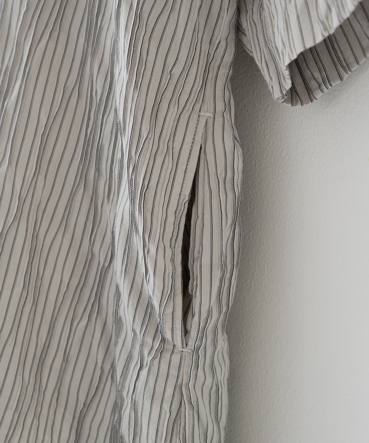 タック組織が生み出す陰影が光の加減で表情を変え、上品かつモードな印象を演出します。