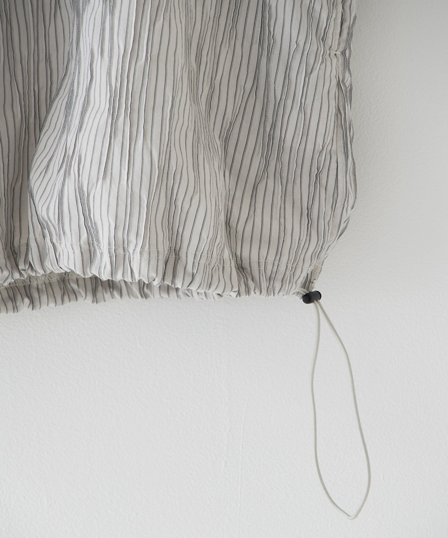 裾に配したドローコードにより、着丈やふくらみのある丸みシルエットへ自在にアレンジでき、ユニセックスで楽しめます。