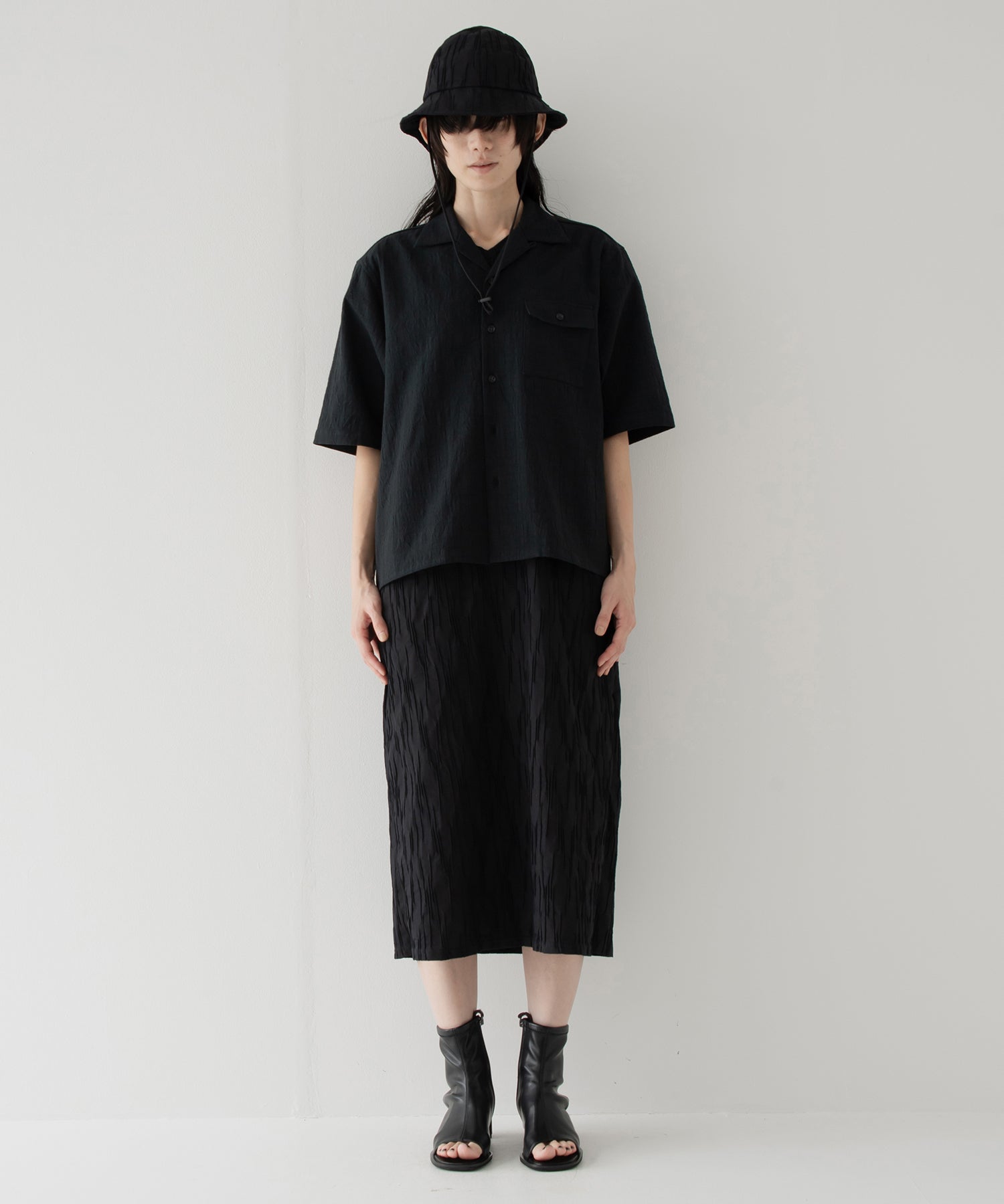 タック組織が生み出す陰影が光の加減で表情を変え、上品かつモードな印象を演出します。