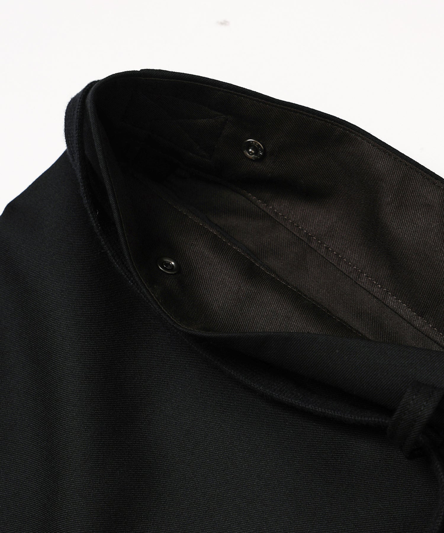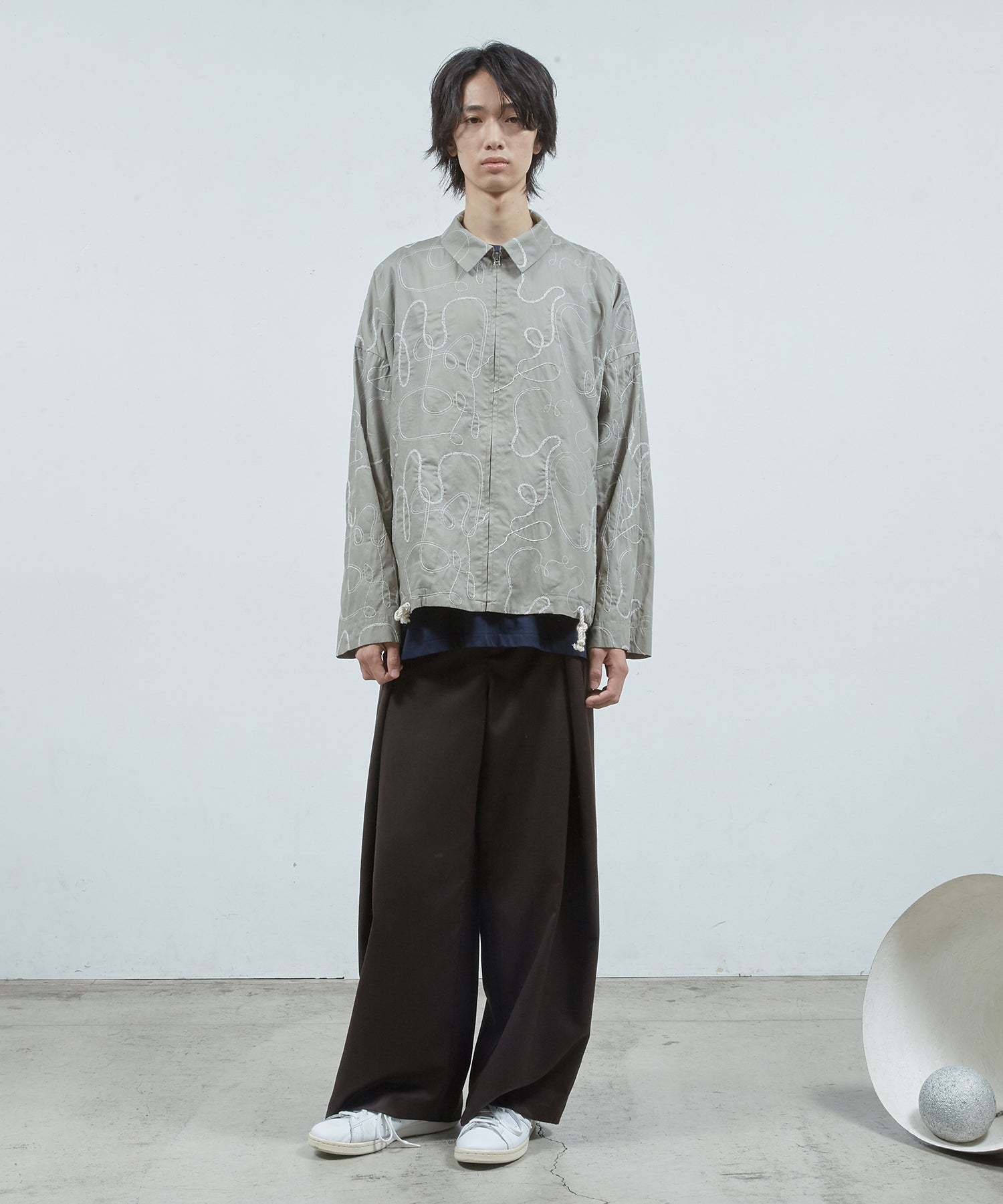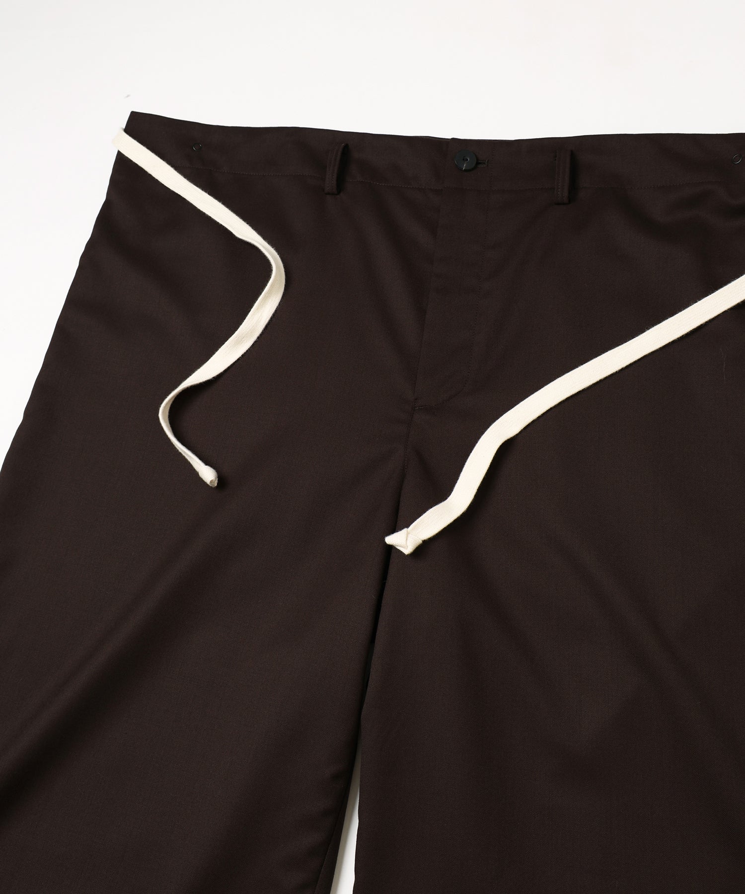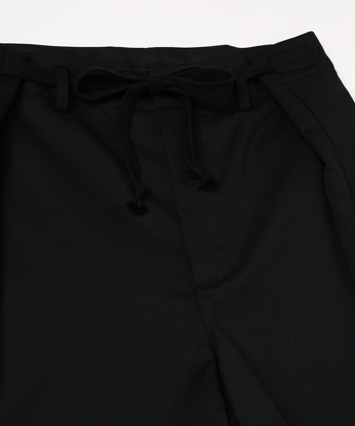 左右をたたみ、ウエストのコードで絞り固定することで、ラップパンツのようなフォルムをを描きます。