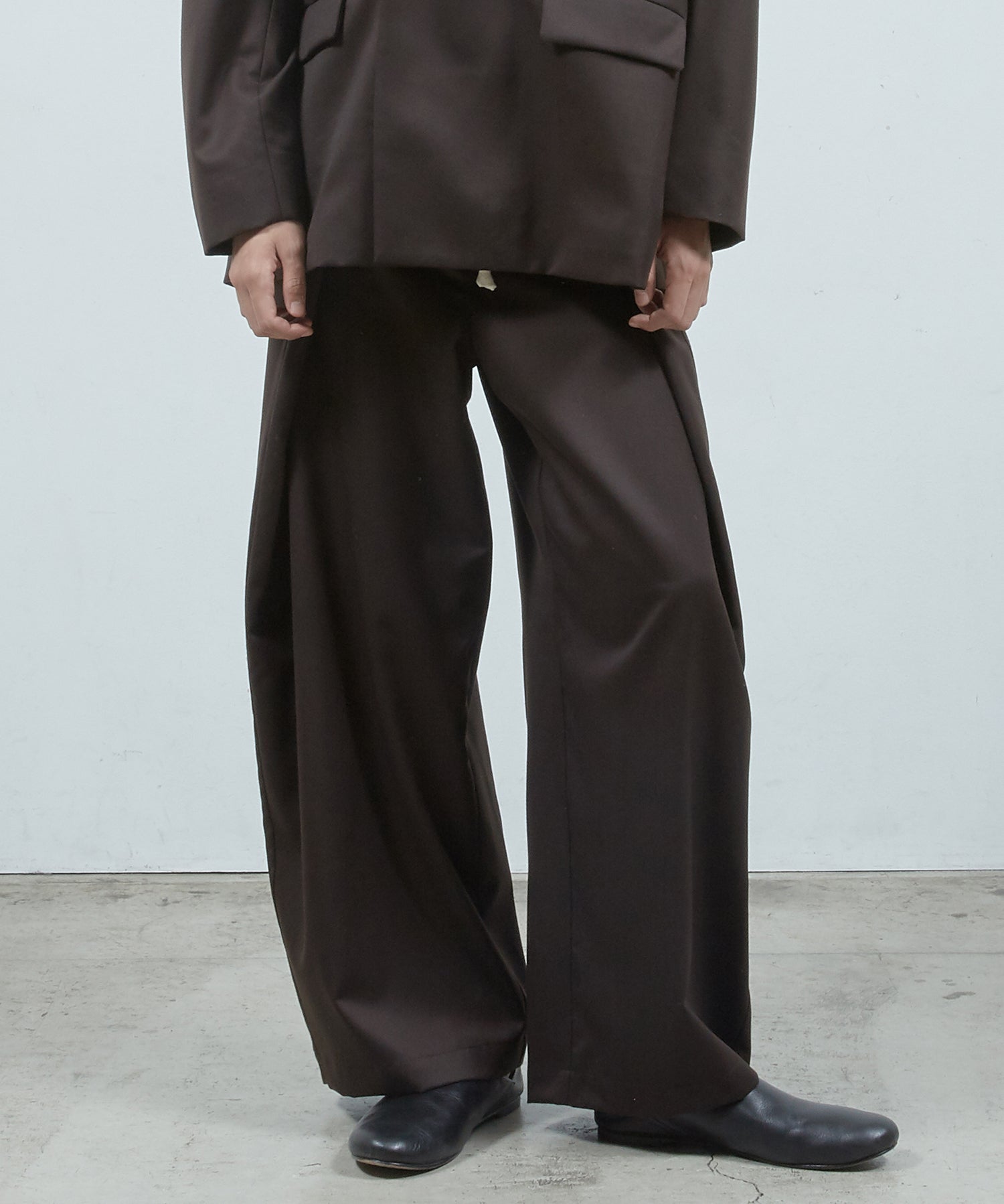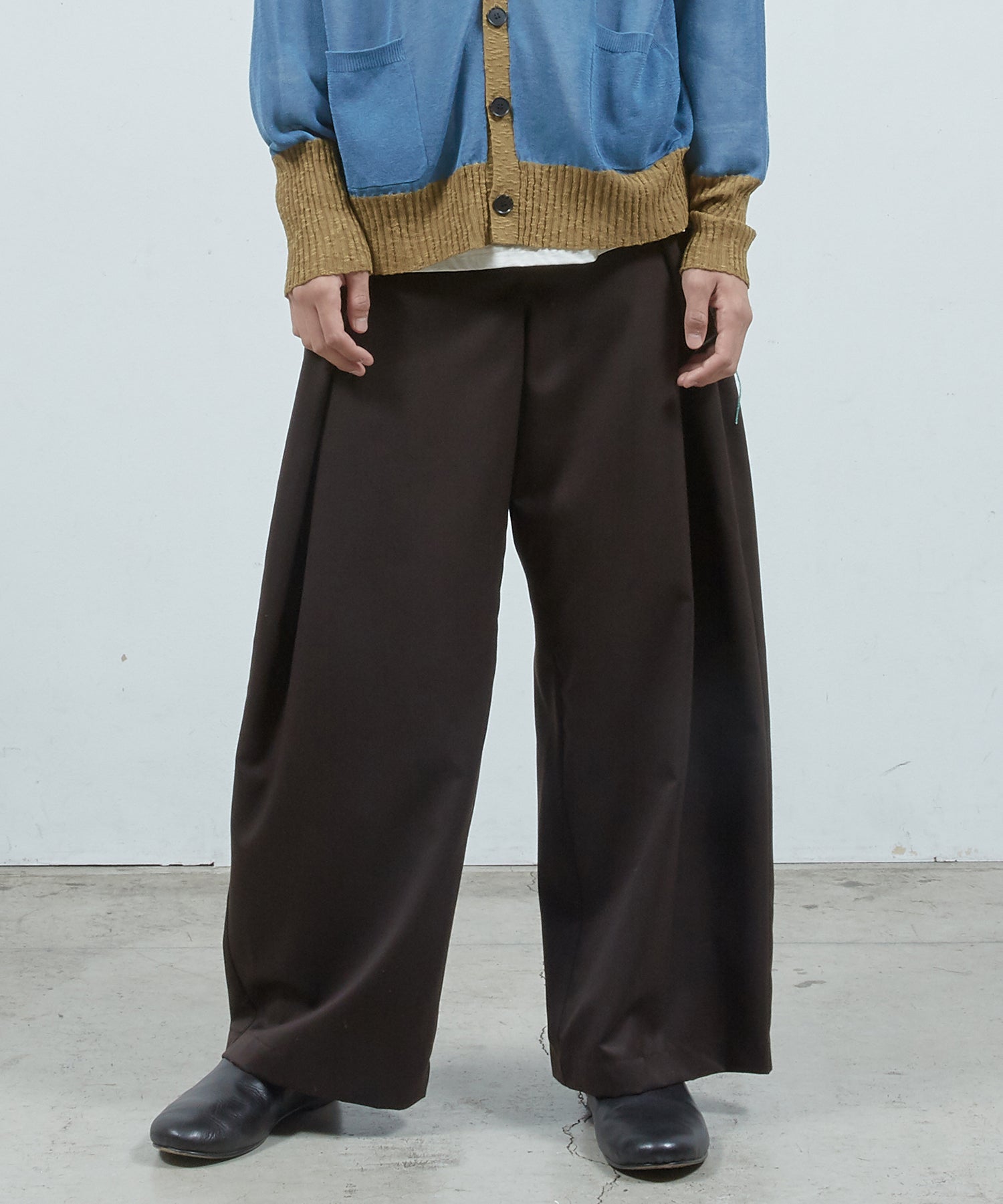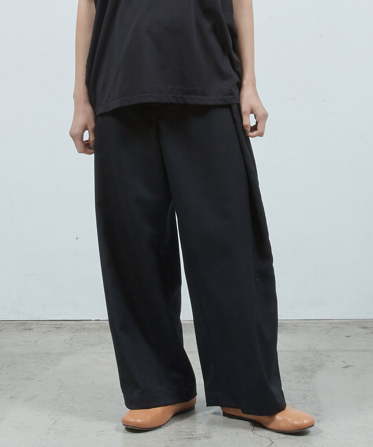 贅沢に生地をつかいワイドなシルエットを作り出したスラックス。