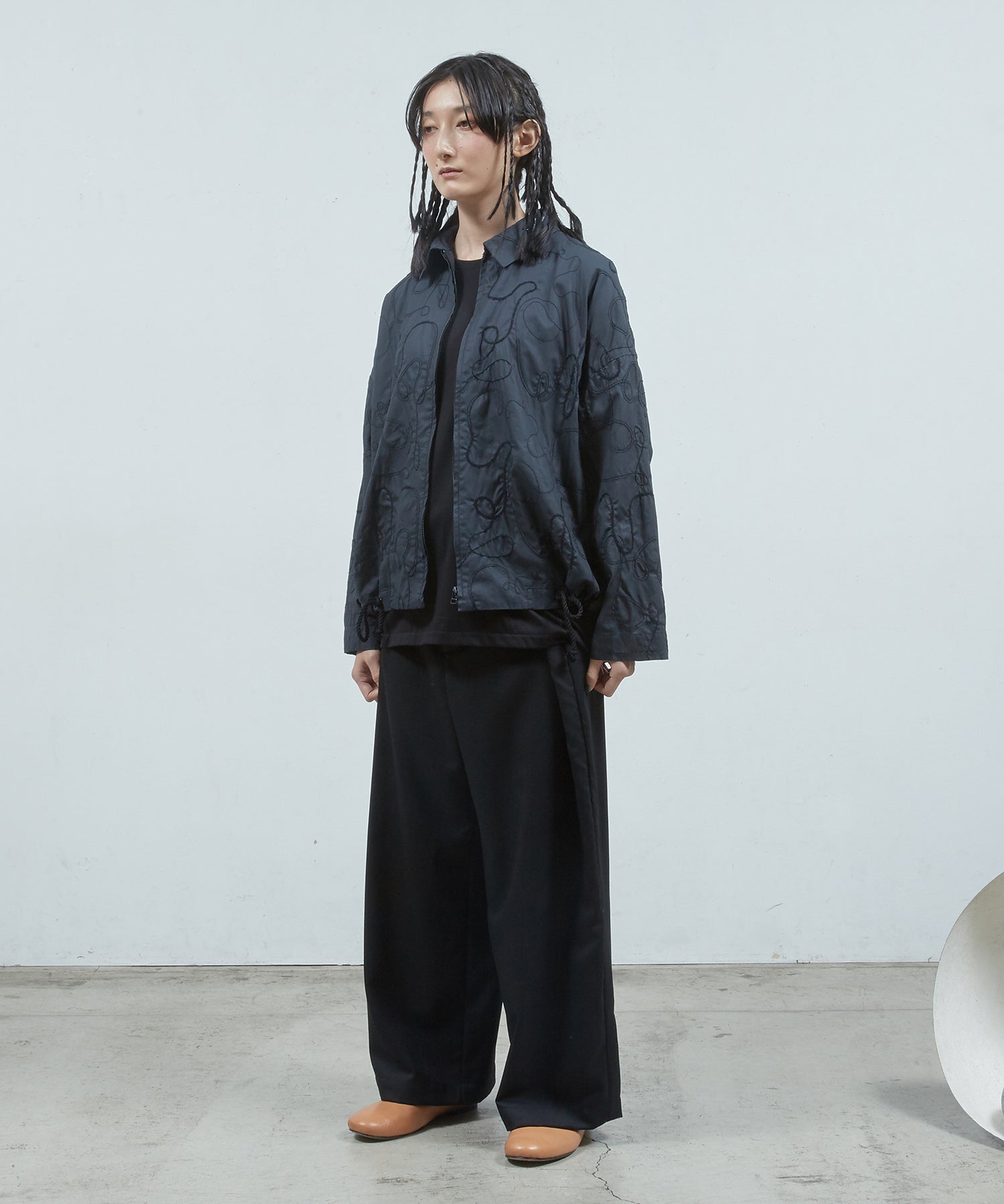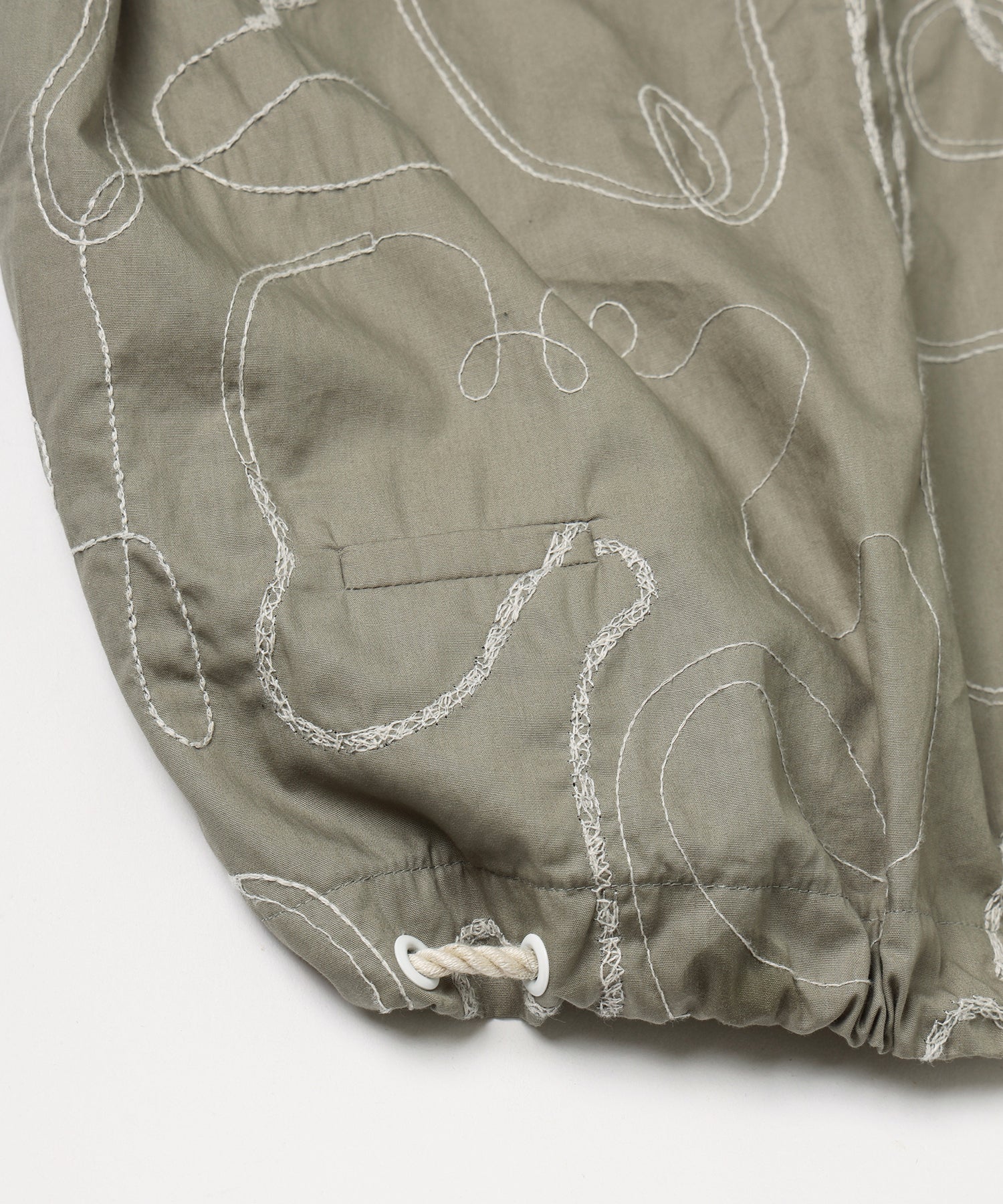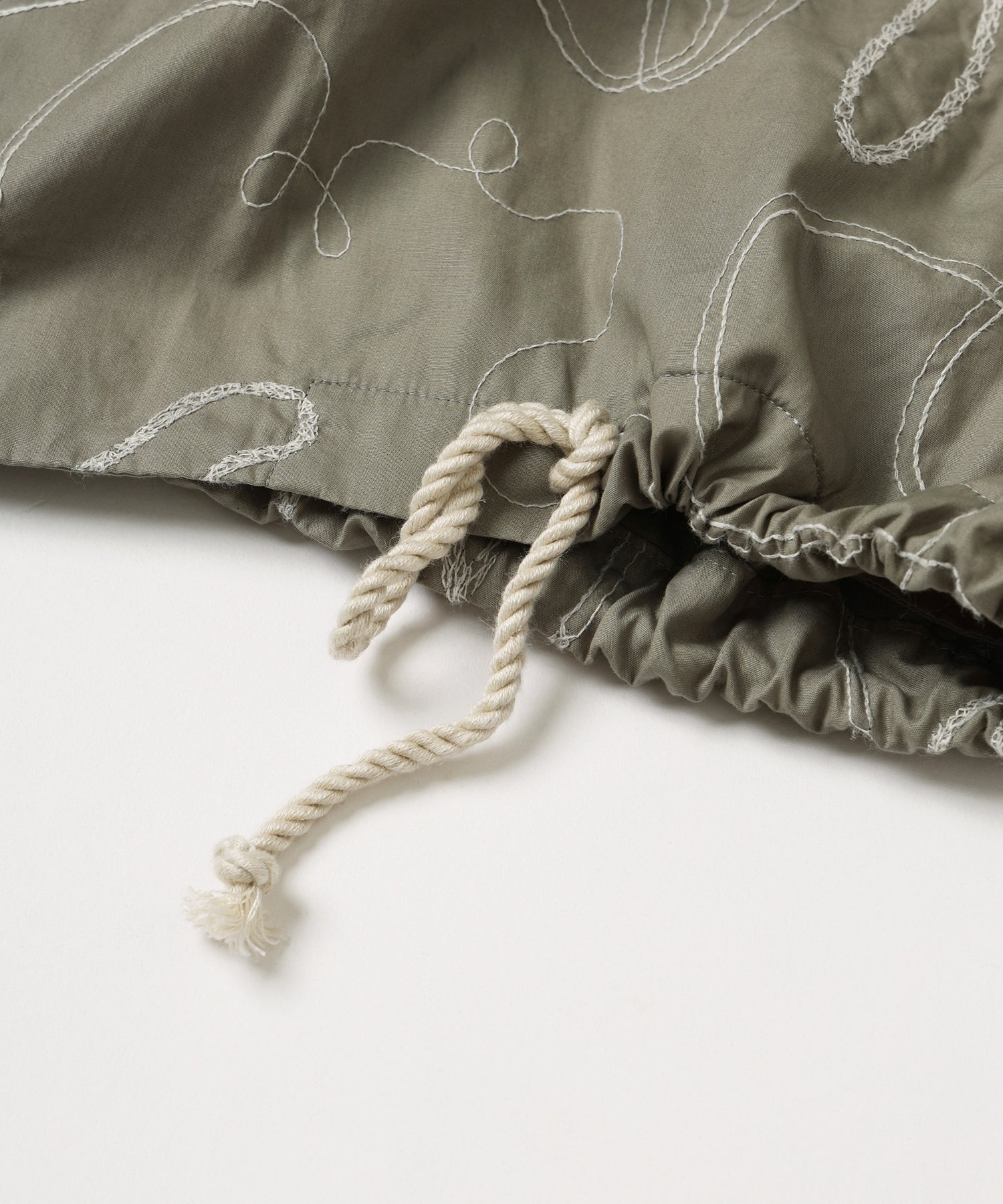 裾元にはナチュラルな印象の紐を通しています。絞ることでシルエットの変化を楽しむことが可能です。