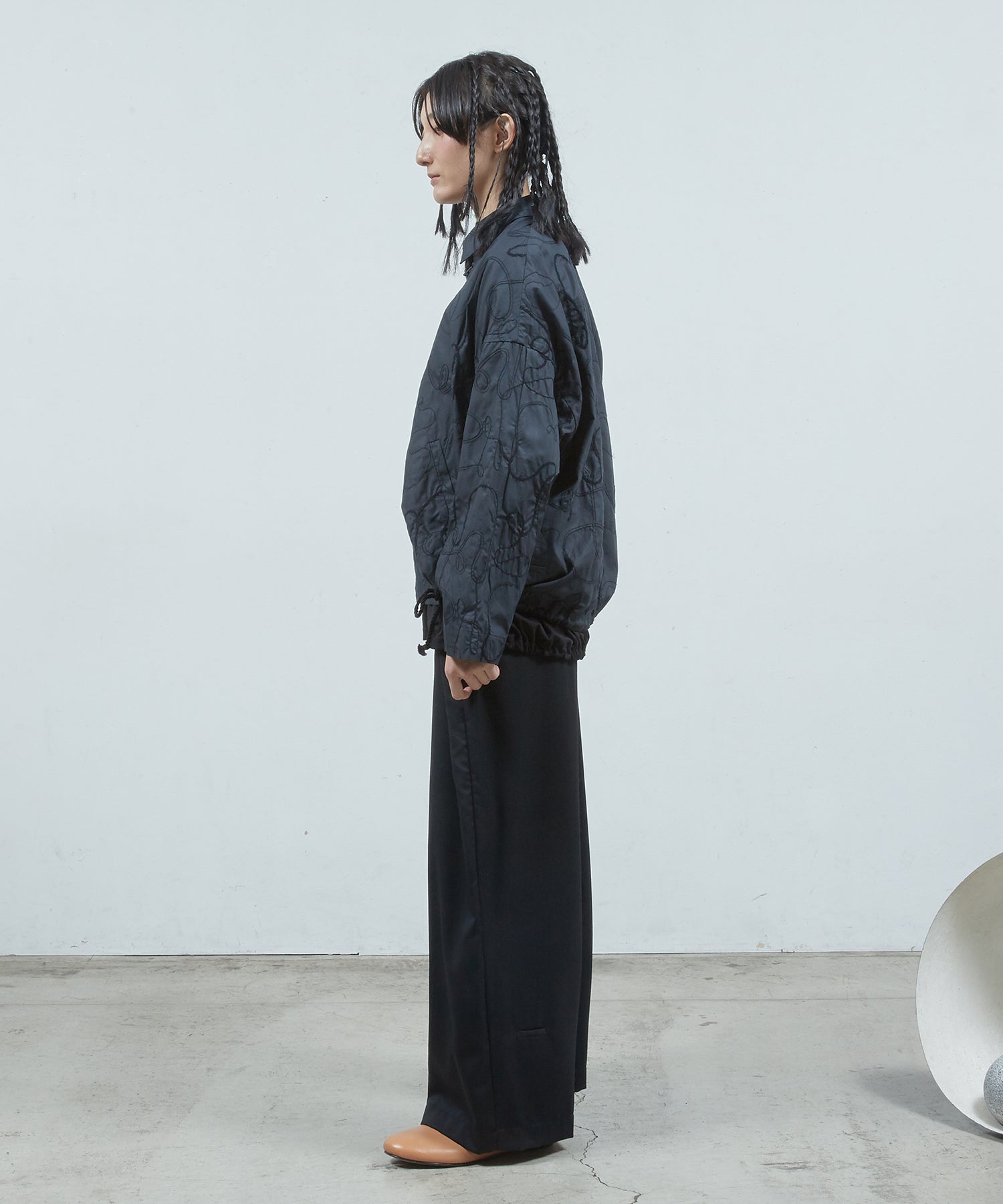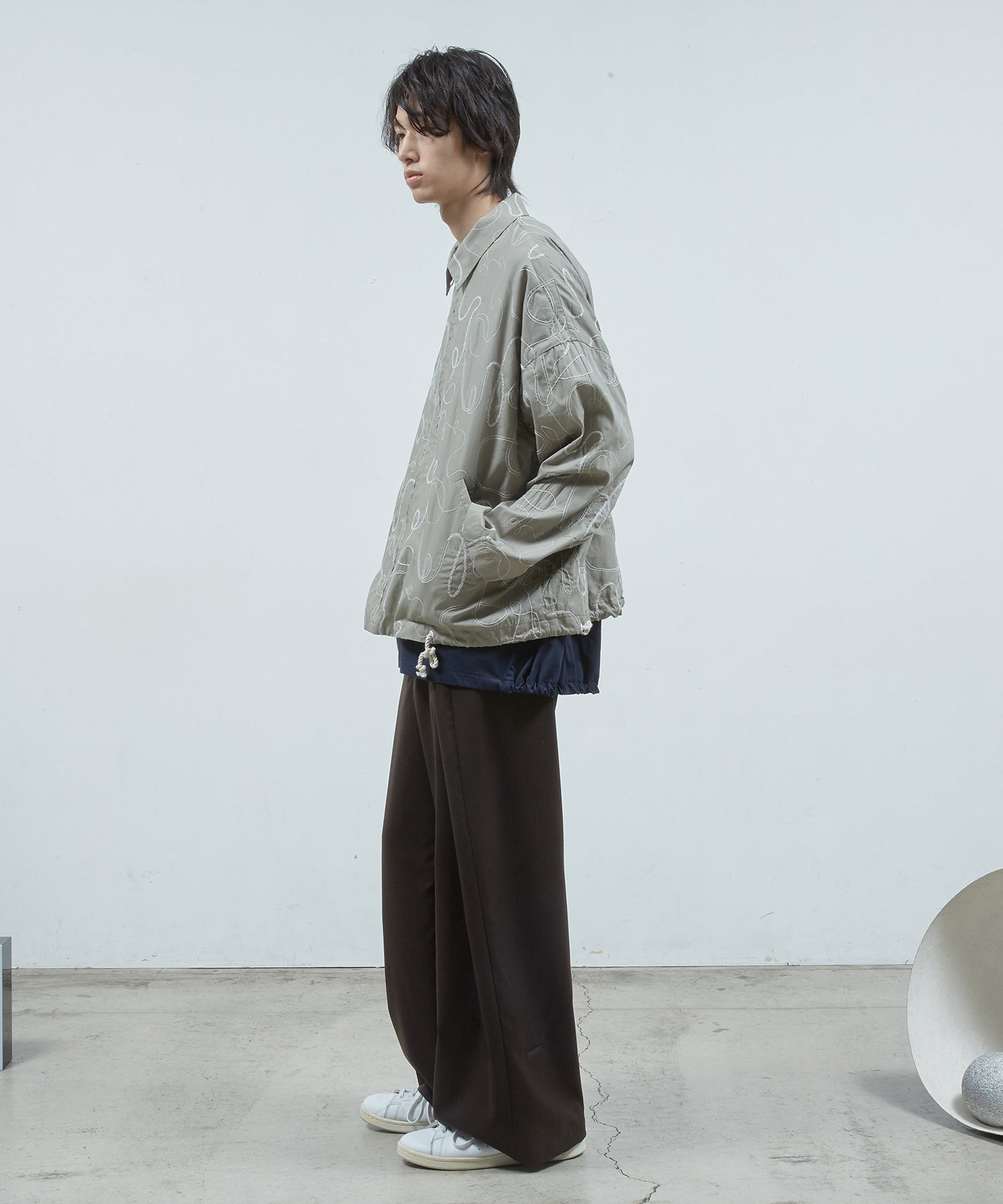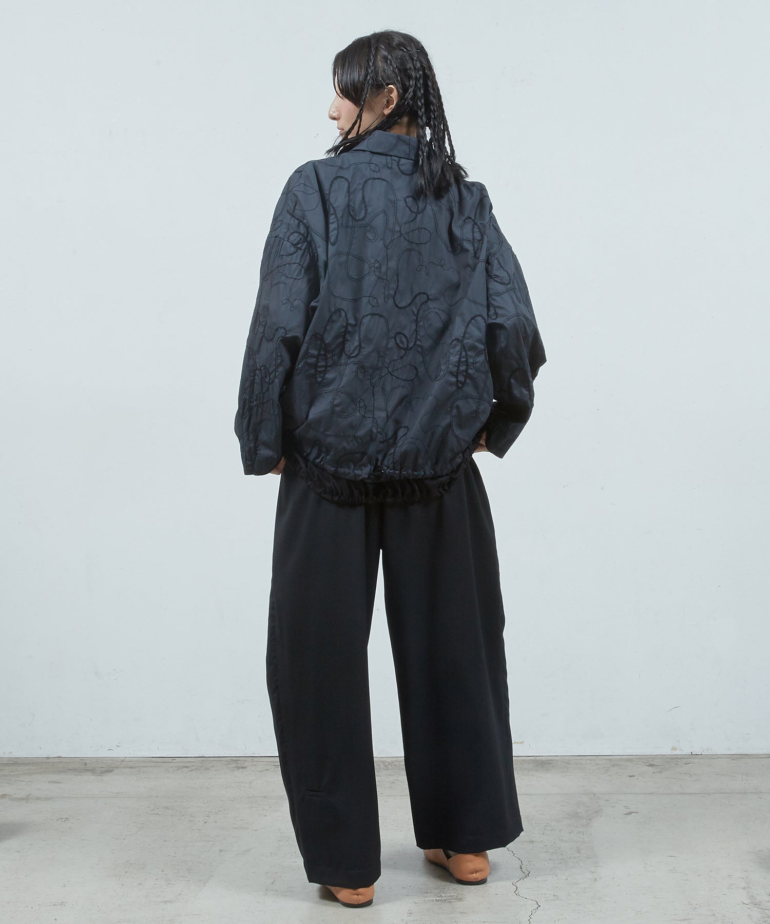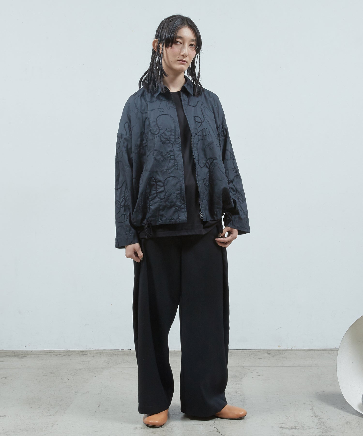 裾元にはナチュラルな印象の紐を通しています。絞ることでシルエットの変化を楽しむことが可能です。