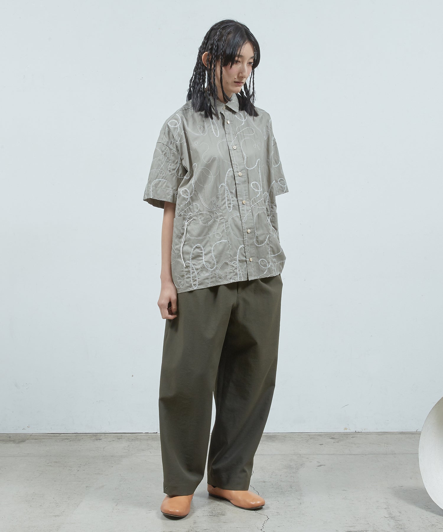 ゆったりとしたフォルムのショートスリーブシャツ。春夏らしい清涼感のあるスタイルを楽しめます。
