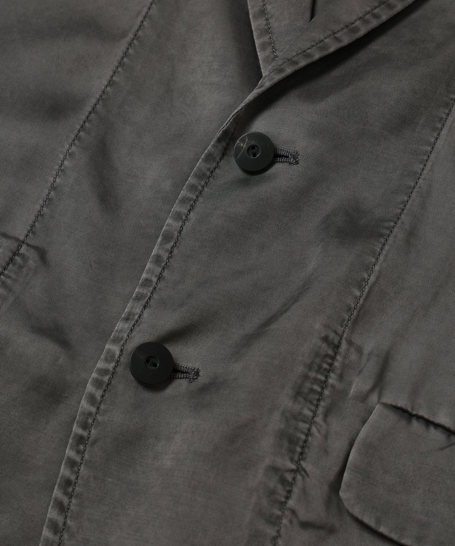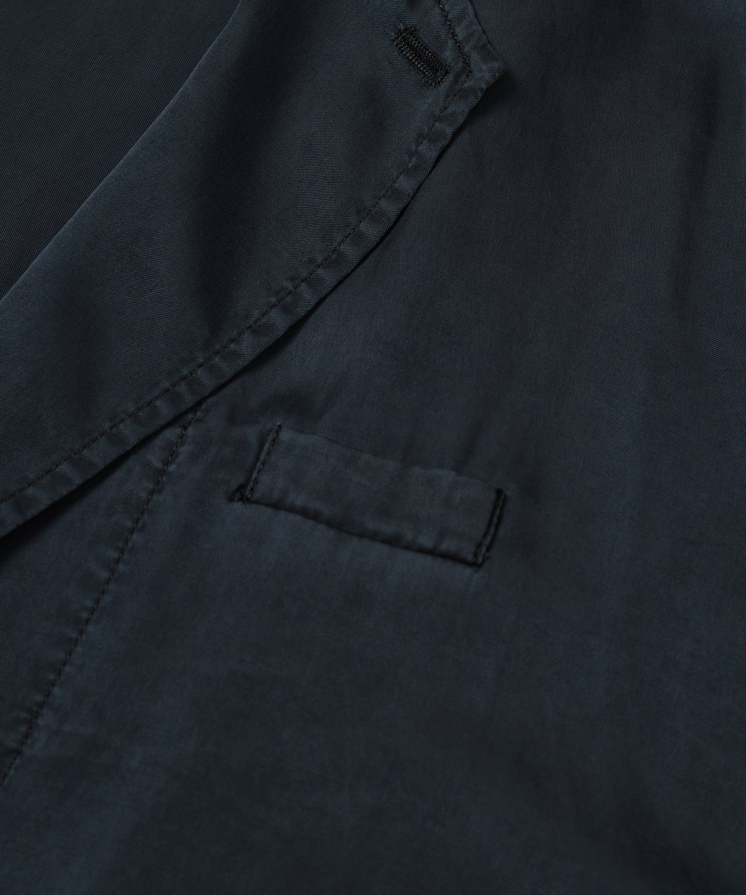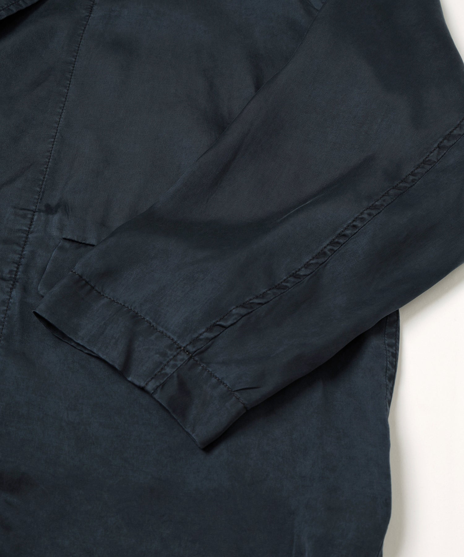顔料染めの生地を使用し、縫製後にバイオ加工を施しています。独特の風合いを閉じ込めました。