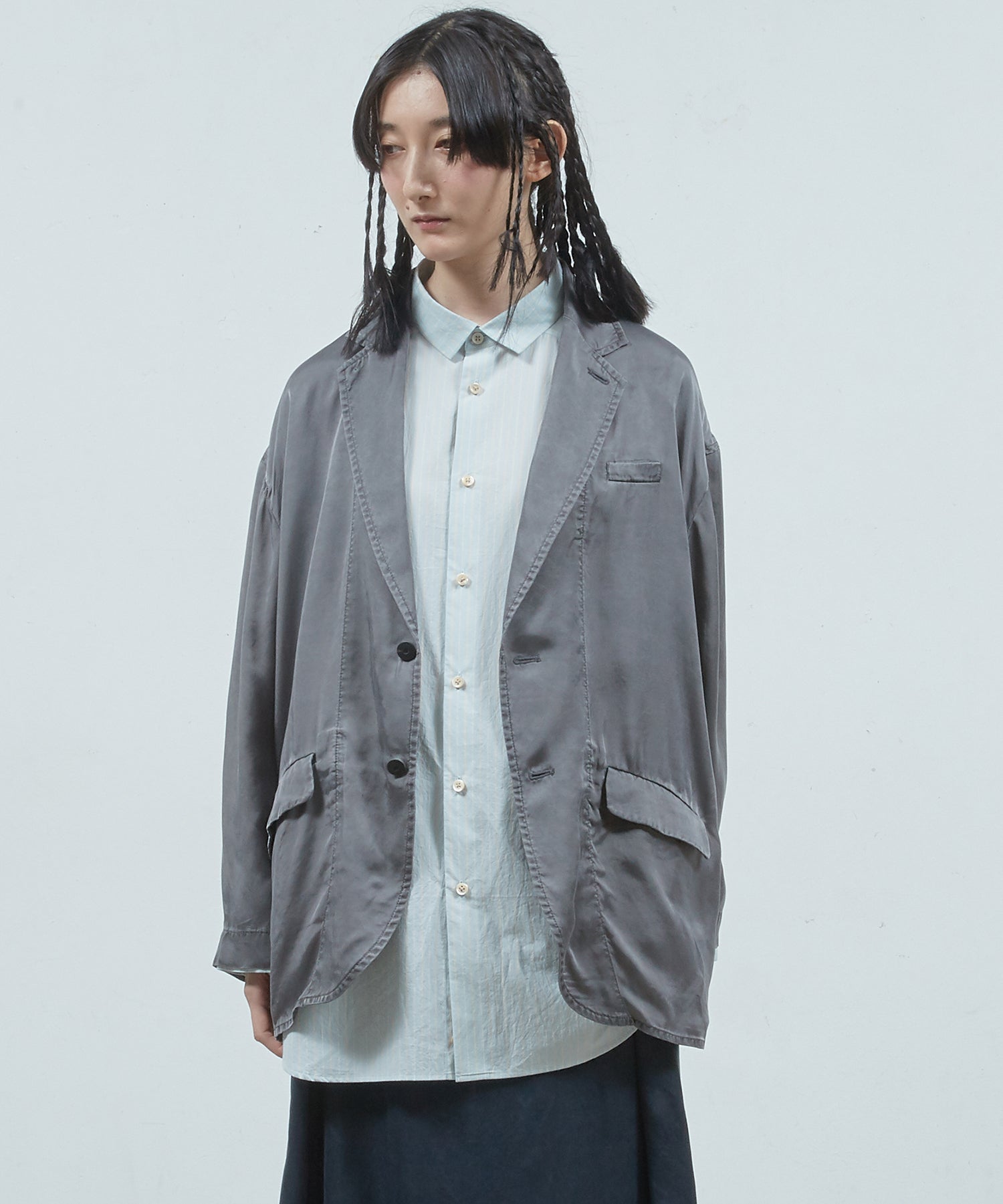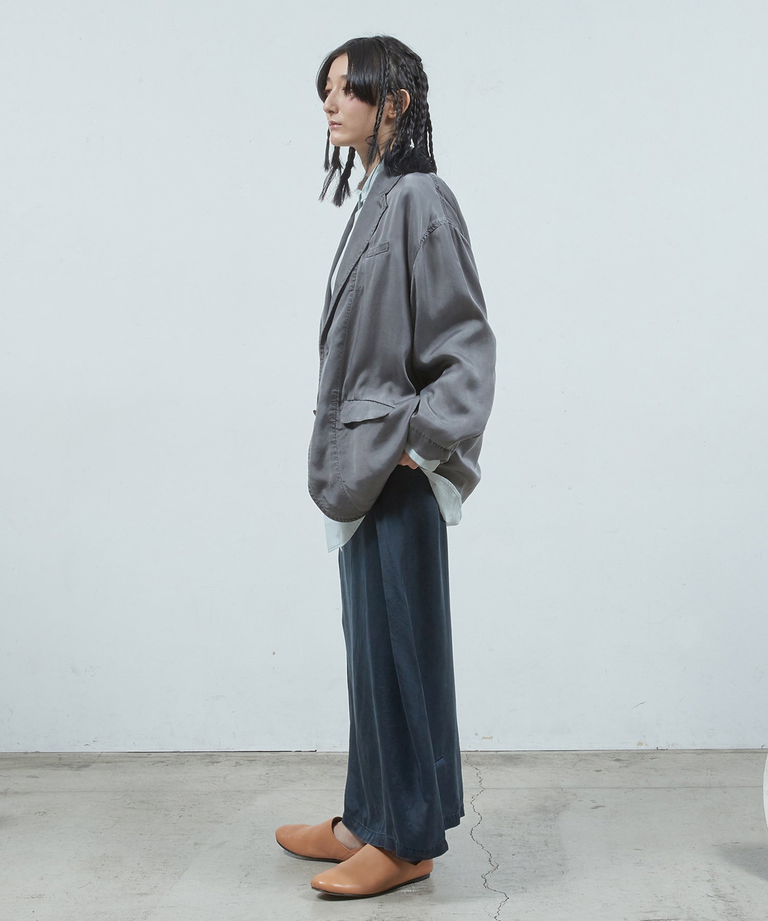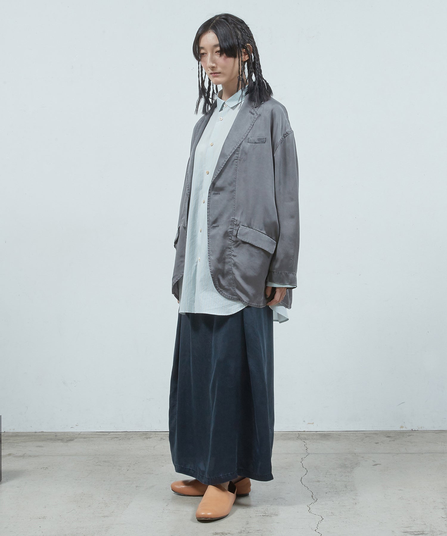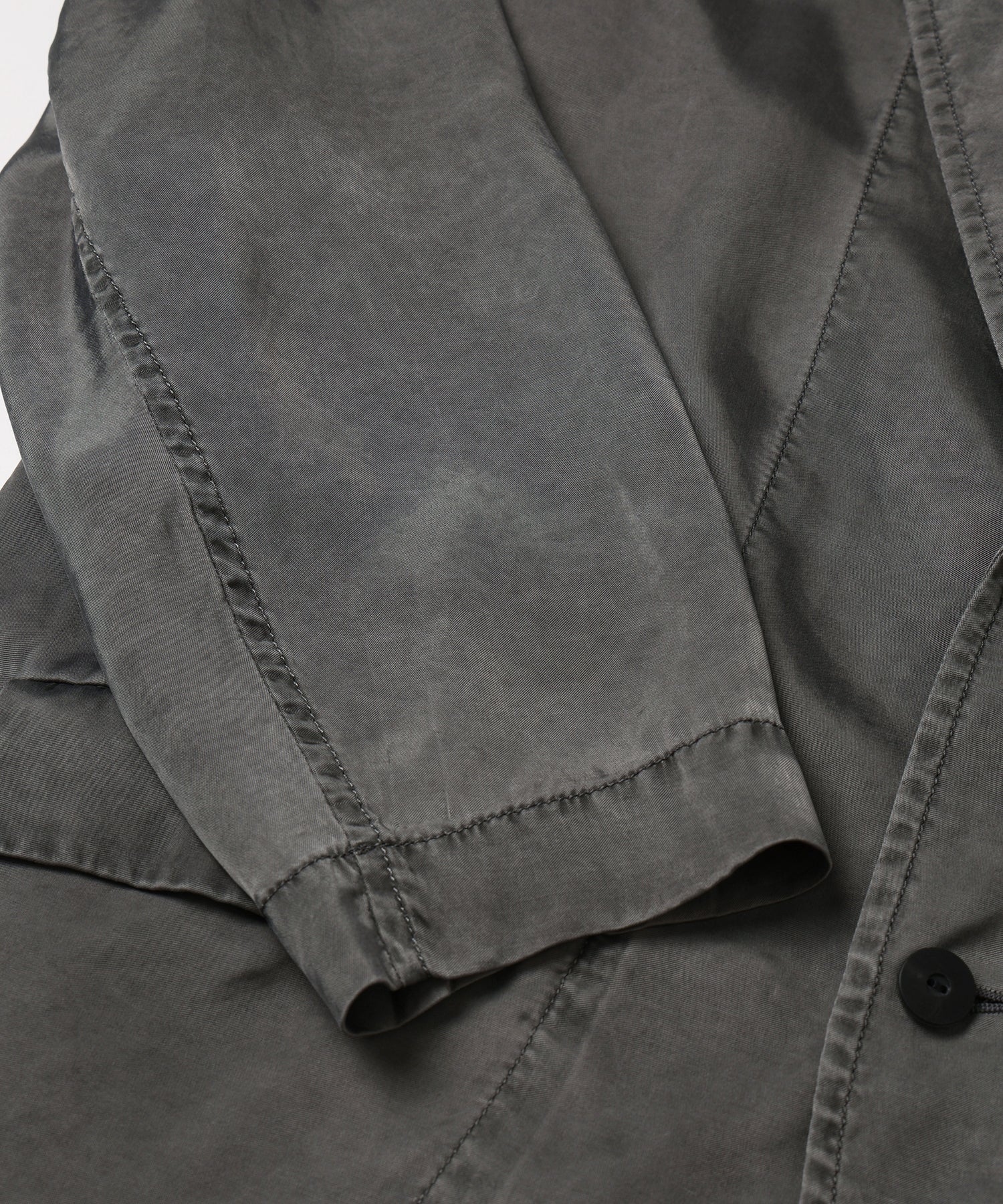 顔料染めの生地を使用し、縫製後にバイオ加工を施しています。独特の風合いを閉じ込めました。