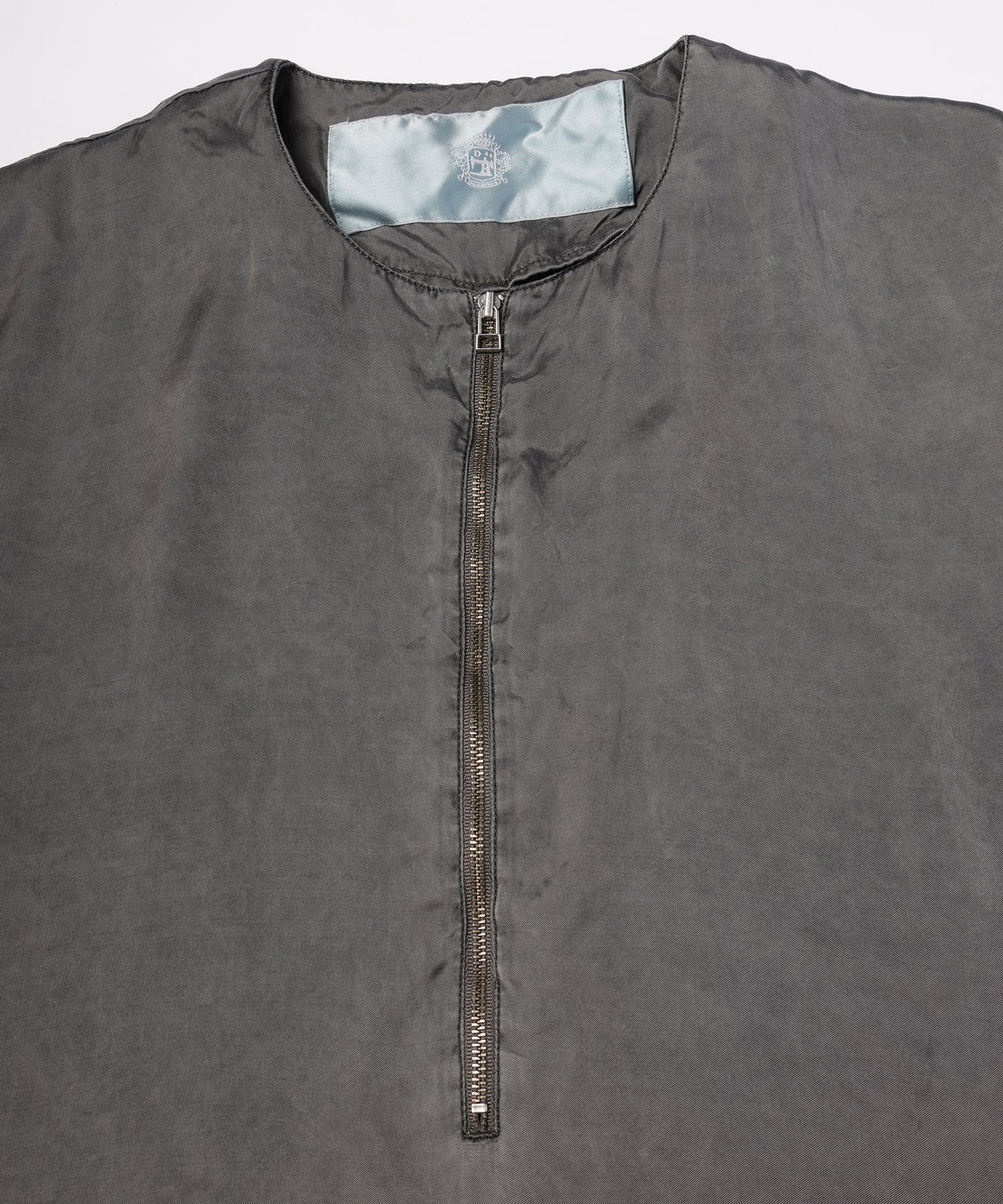 ハーフジップ仕様のゆったりとしたフォルムのショートスリーブシャツ。