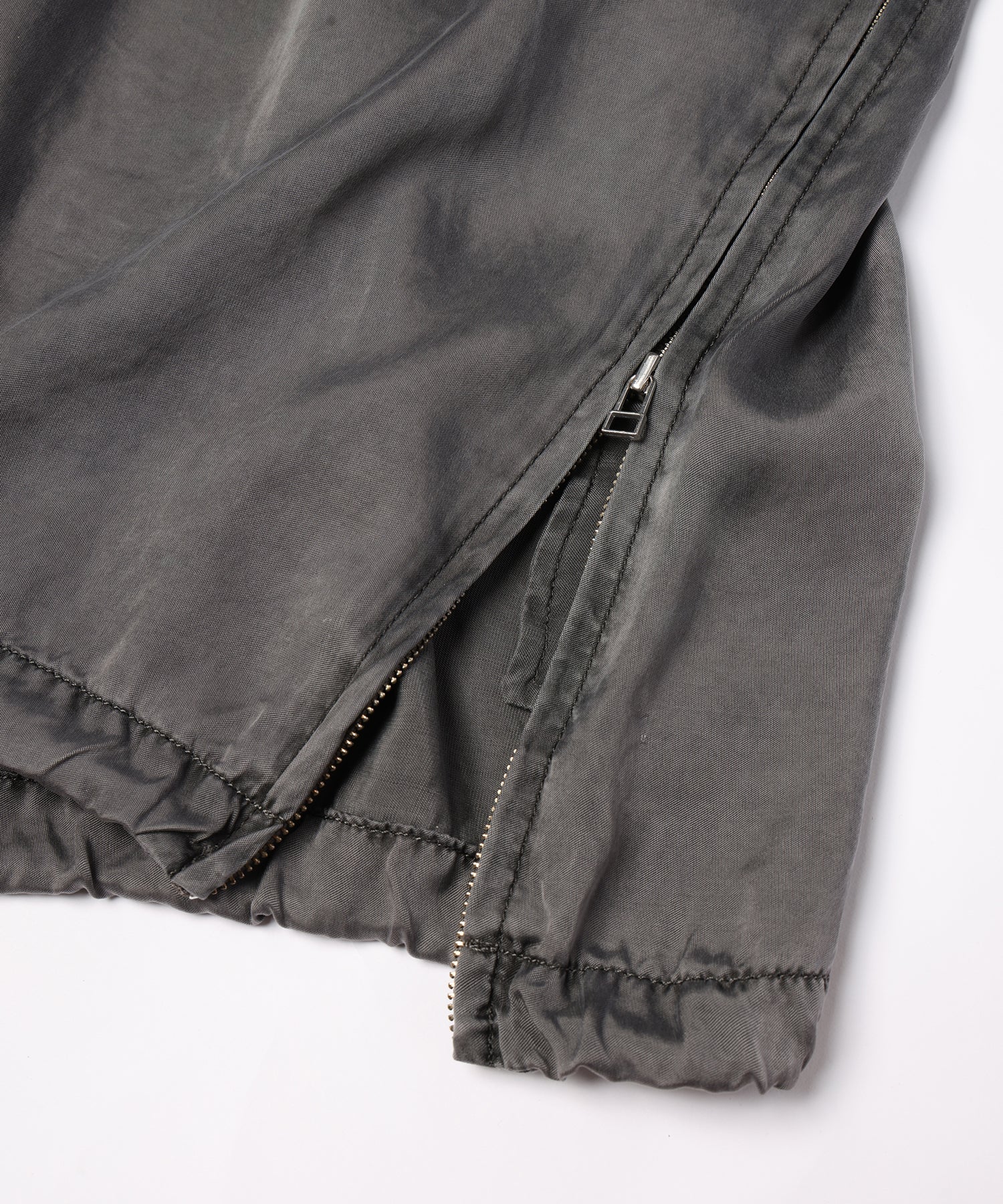 顔料染めの生地を使用し、縫製後にバイオ加工を施しています。独特の風合いを閉じ込めました。
