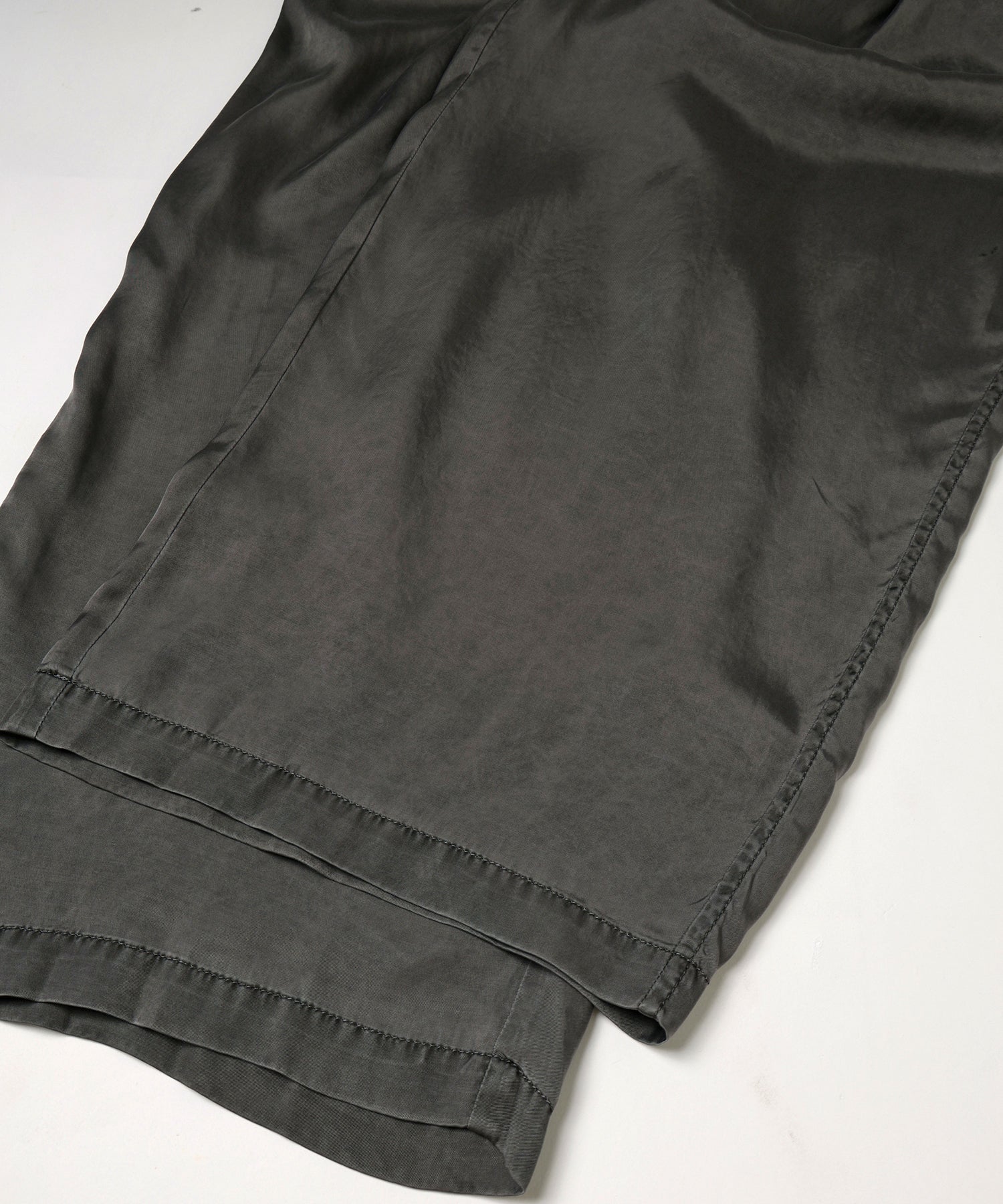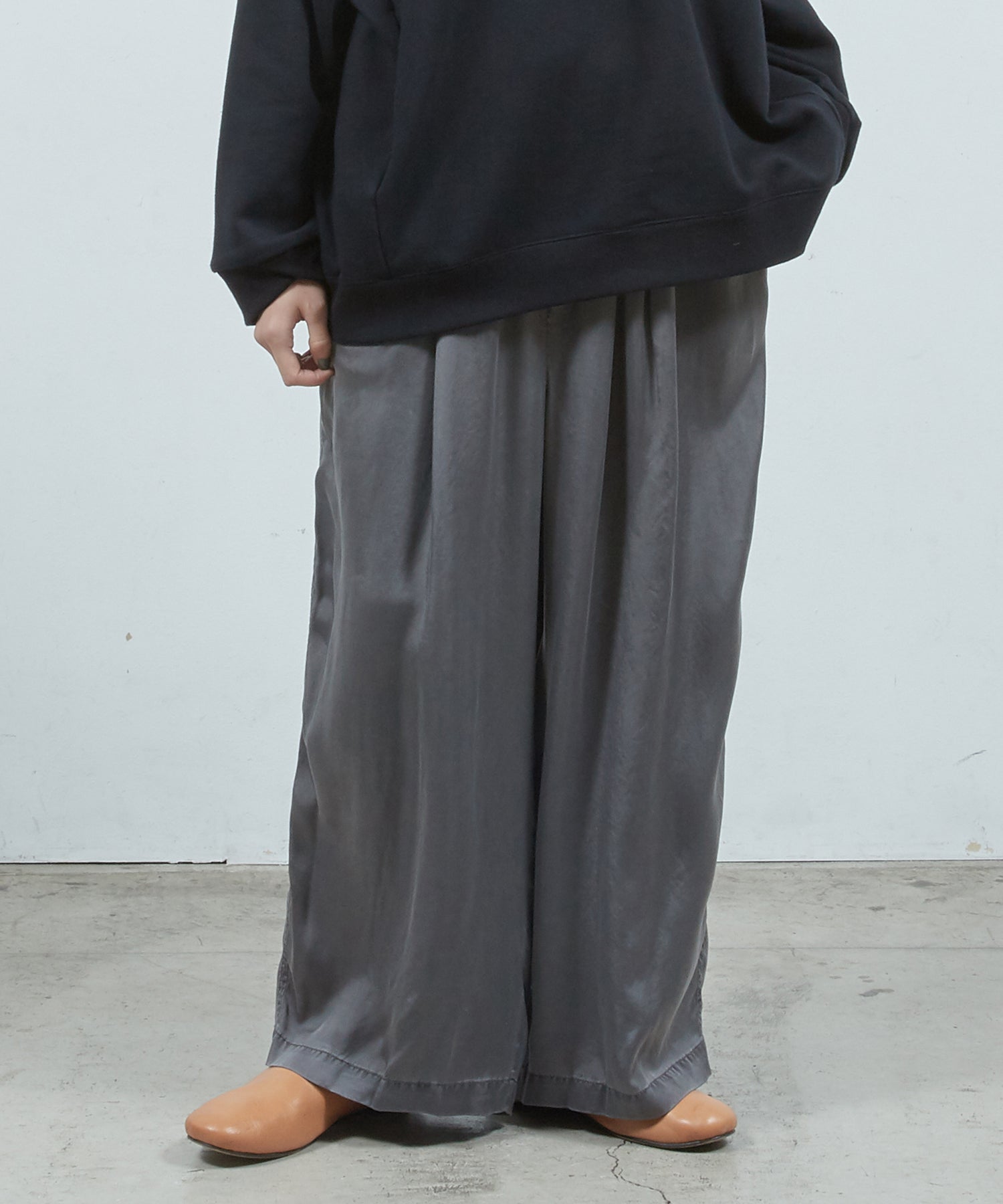 動くごとにドレープが生まれ、パンツ自体の個性を引き上げてくれます。ラフさと大人な印象を高めた仕上がりに。