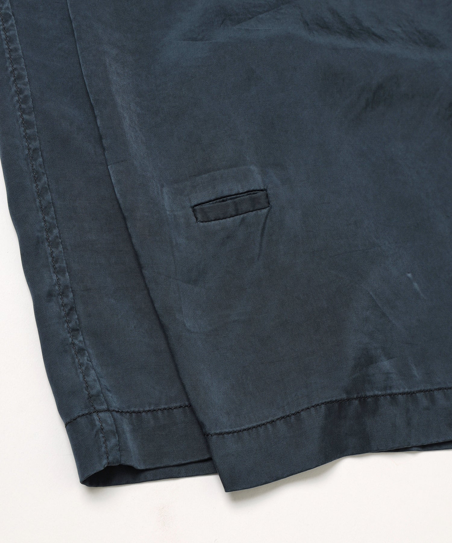 顔料染めの生地を使用し、縫製後にバイオ加工を施しています。独特の風合いを閉じ込めました。