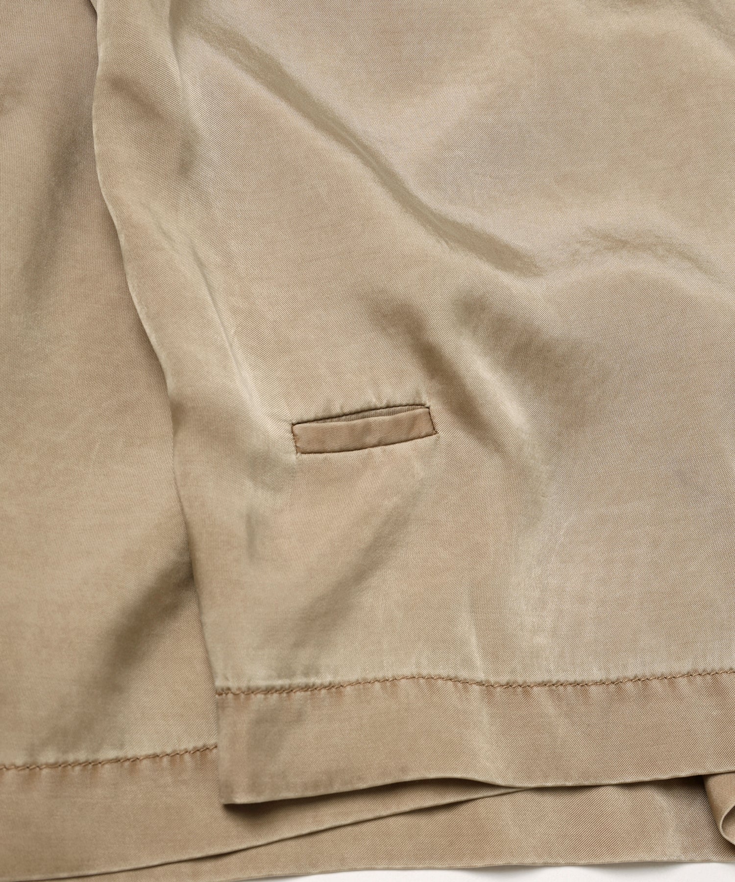 顔料染めの生地を使用し、縫製後にバイオ加工を施しています。独特の風合いを閉じ込めました。