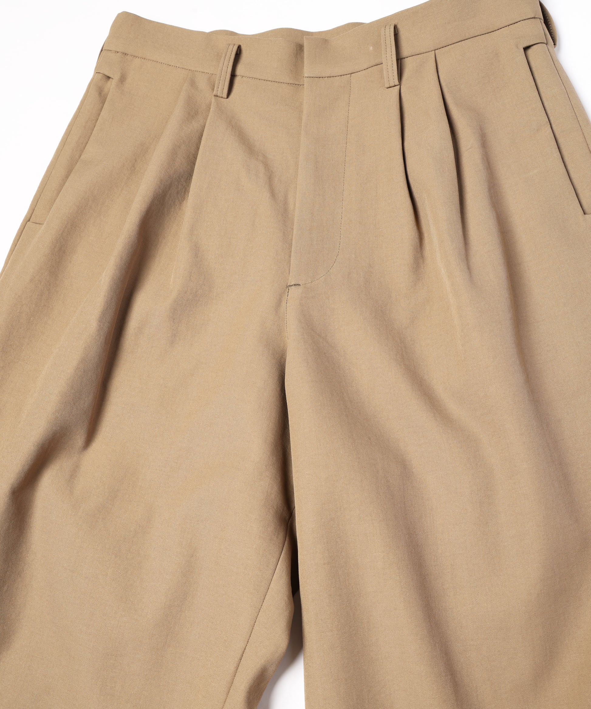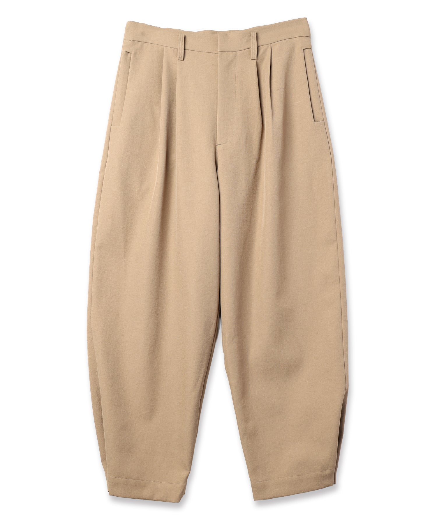 ヘムにかけてたっぷりとワイドシルエットにに仕上げたパンツ。動くたびにドレープが生まれ、表情を加えてくれます。