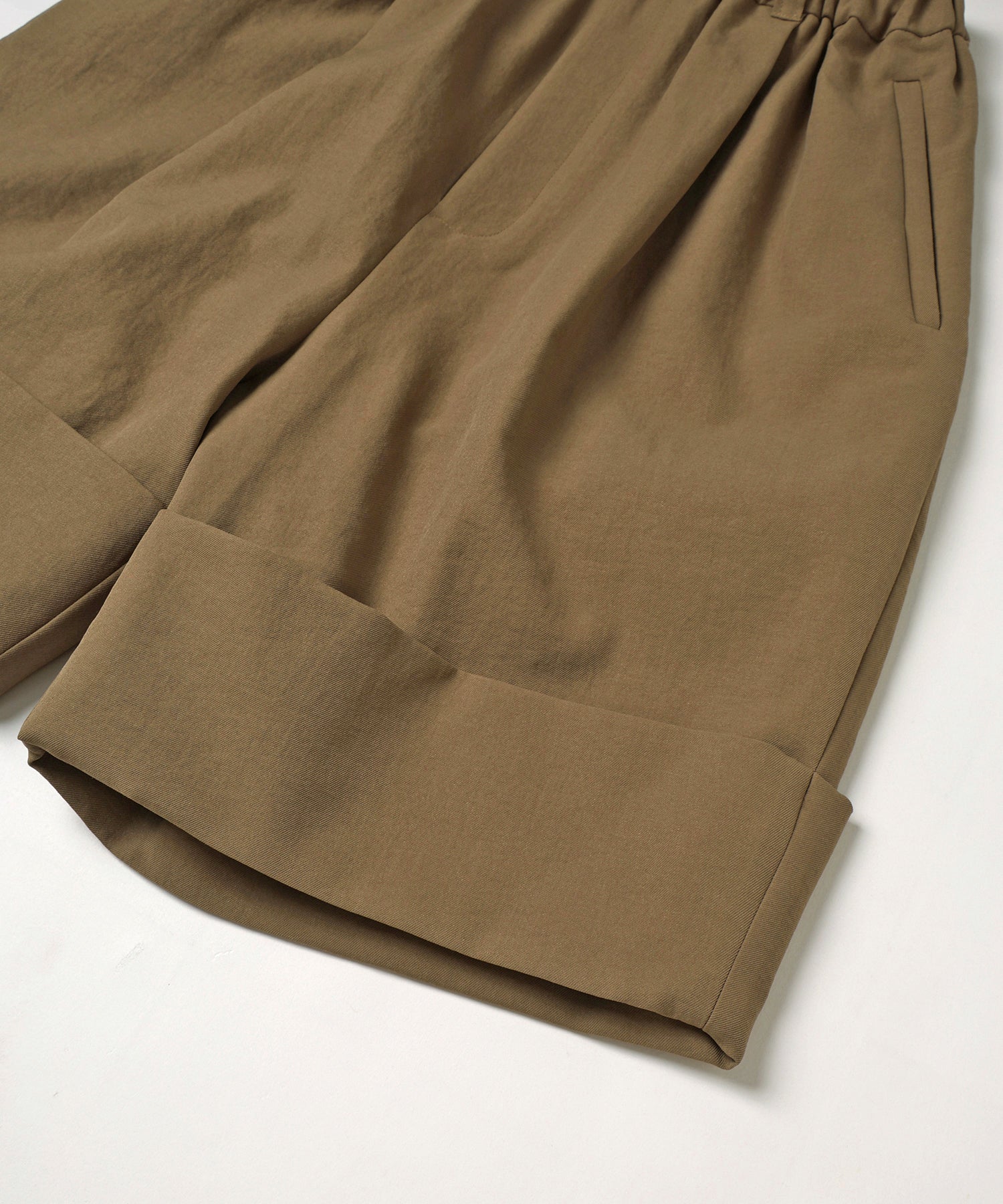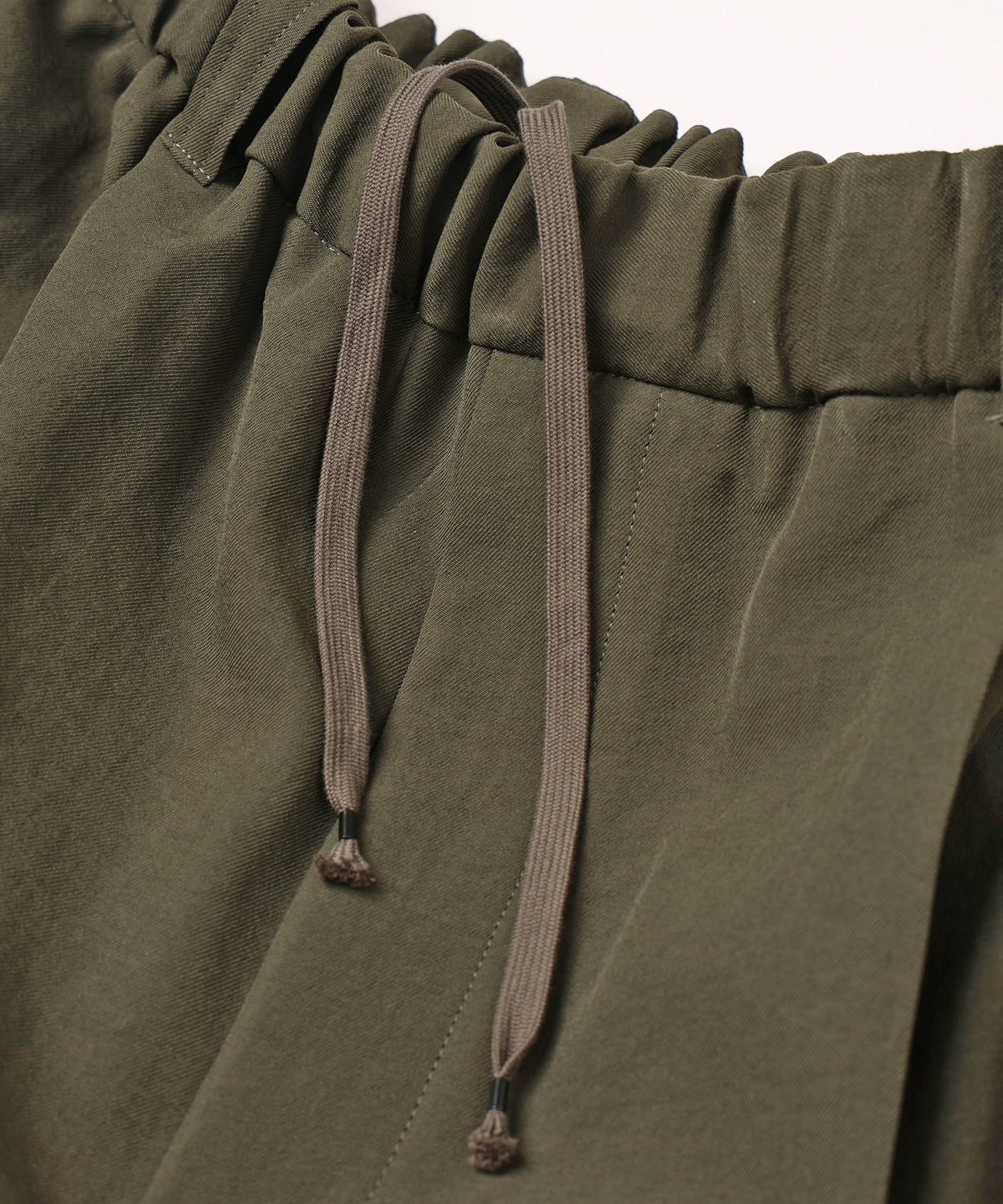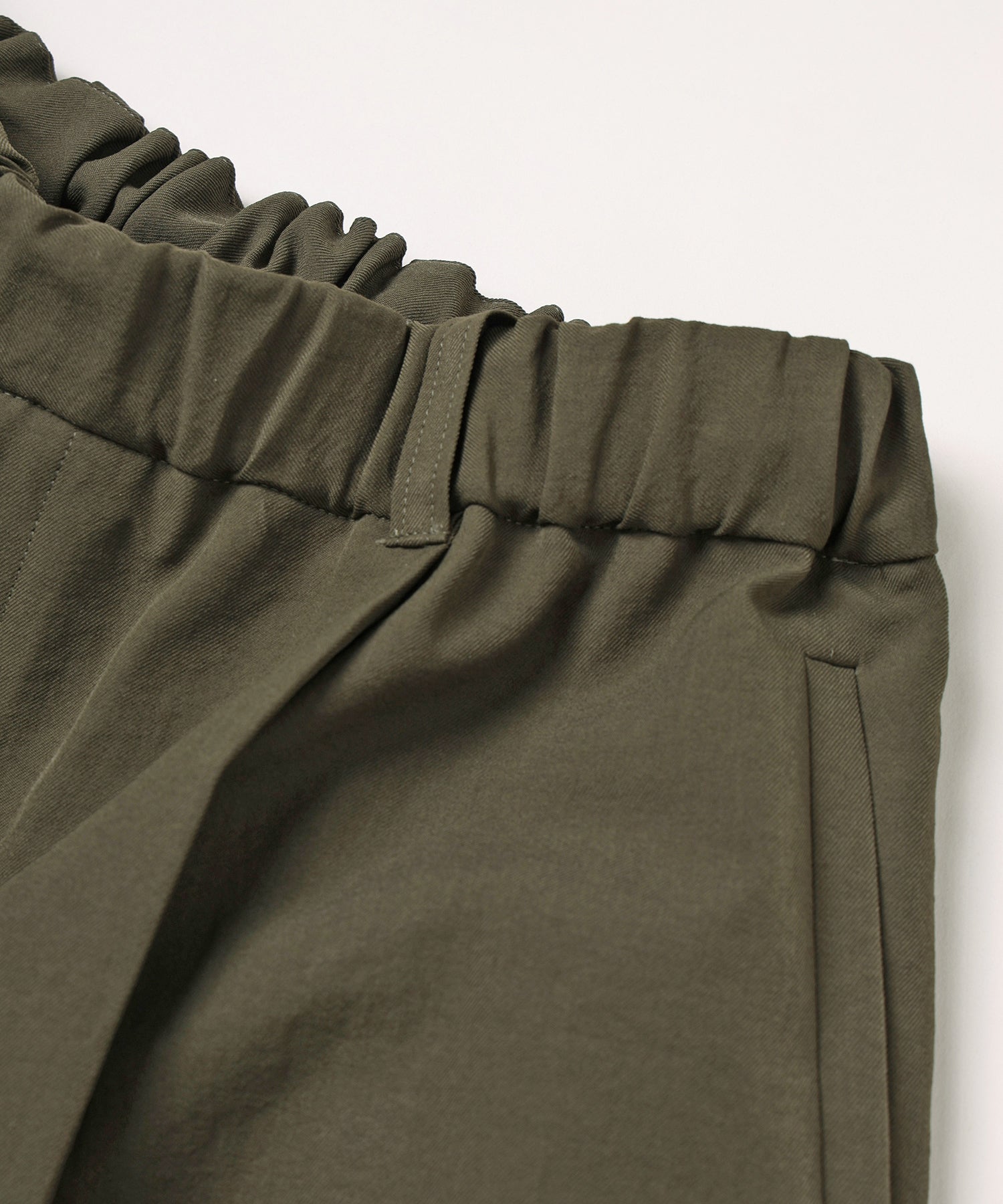 ウエストはゴムギャザー、イージー仕様。フィット感のある着心地と共に幅広い体型をカバーしてくれます。
