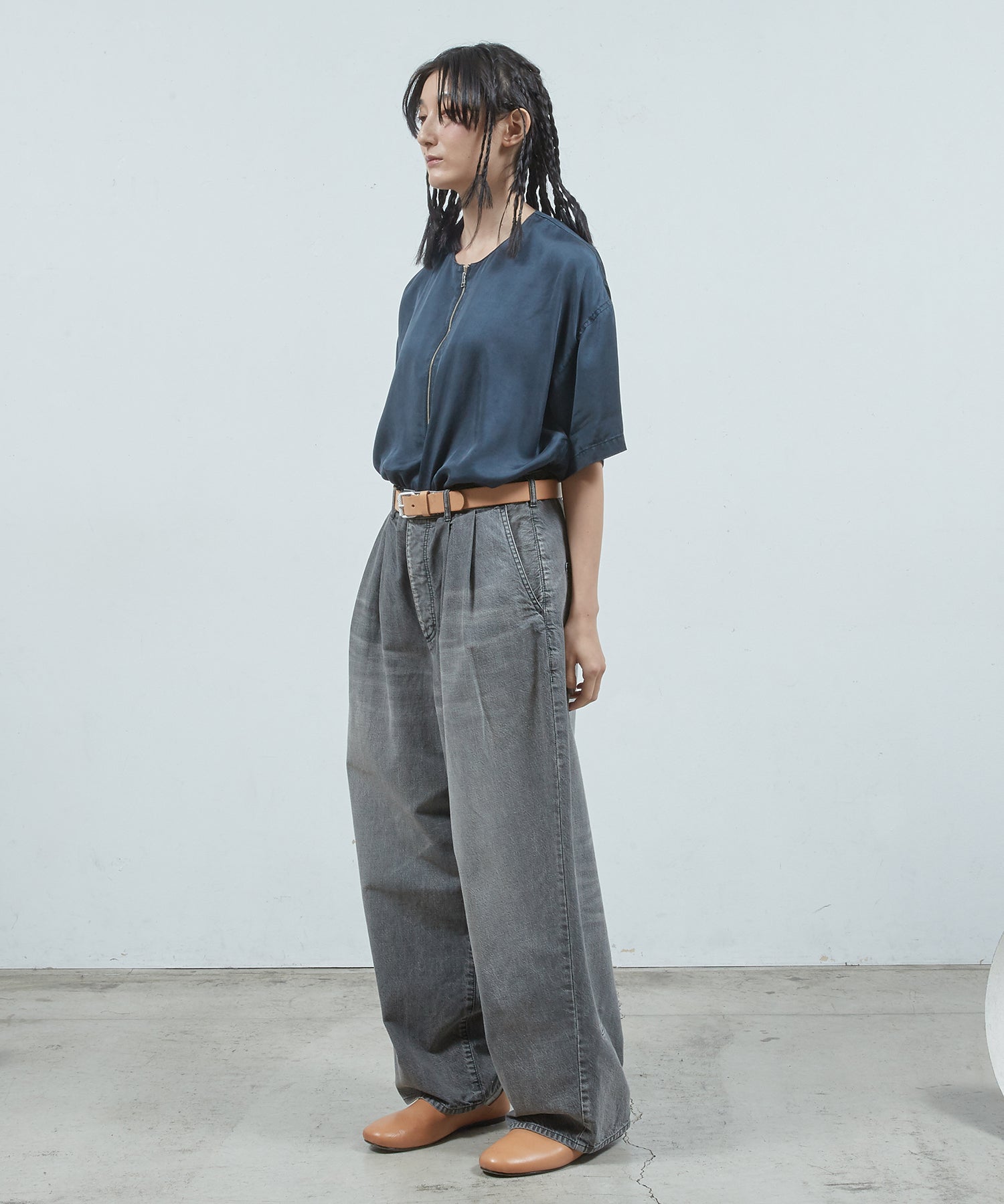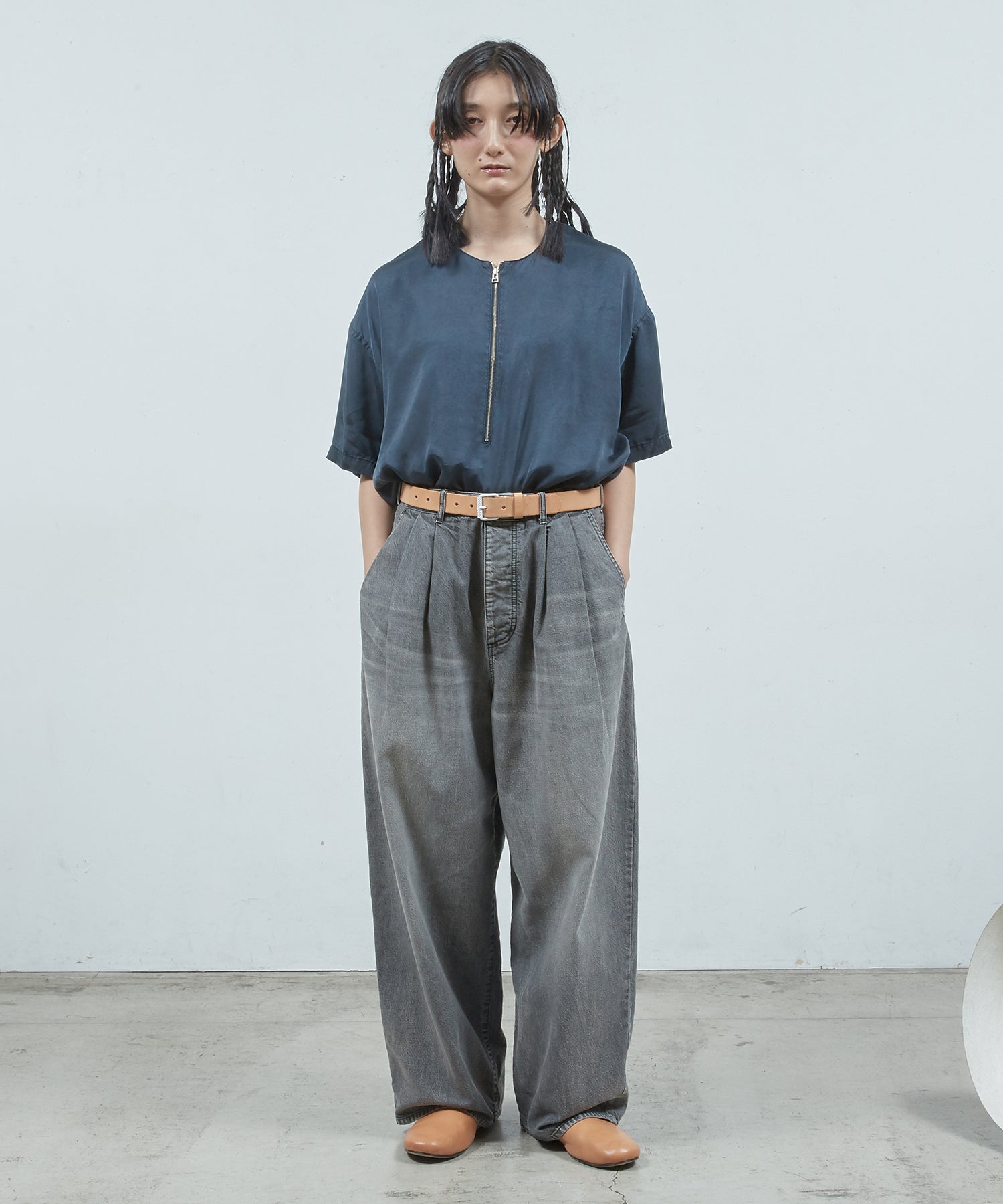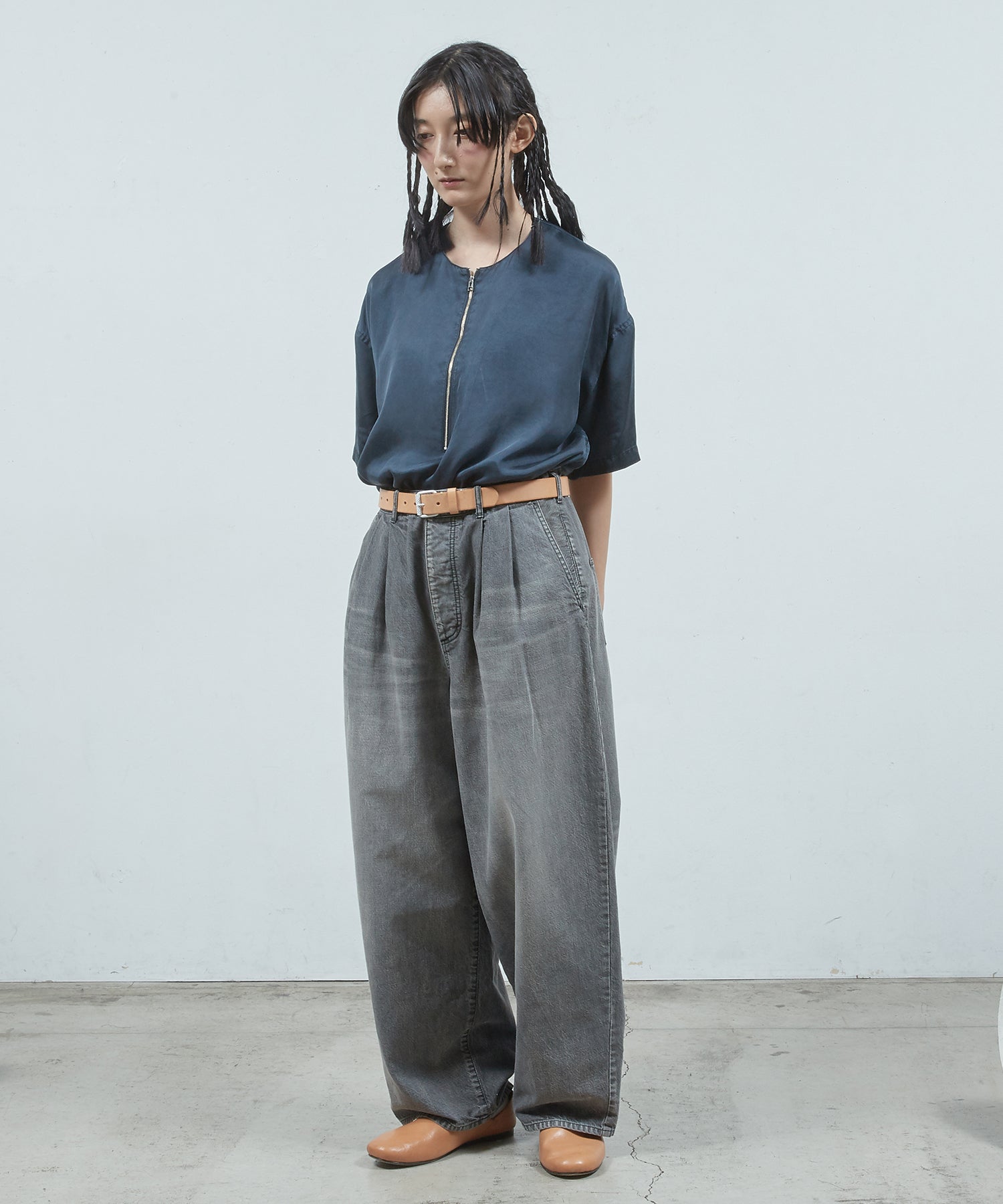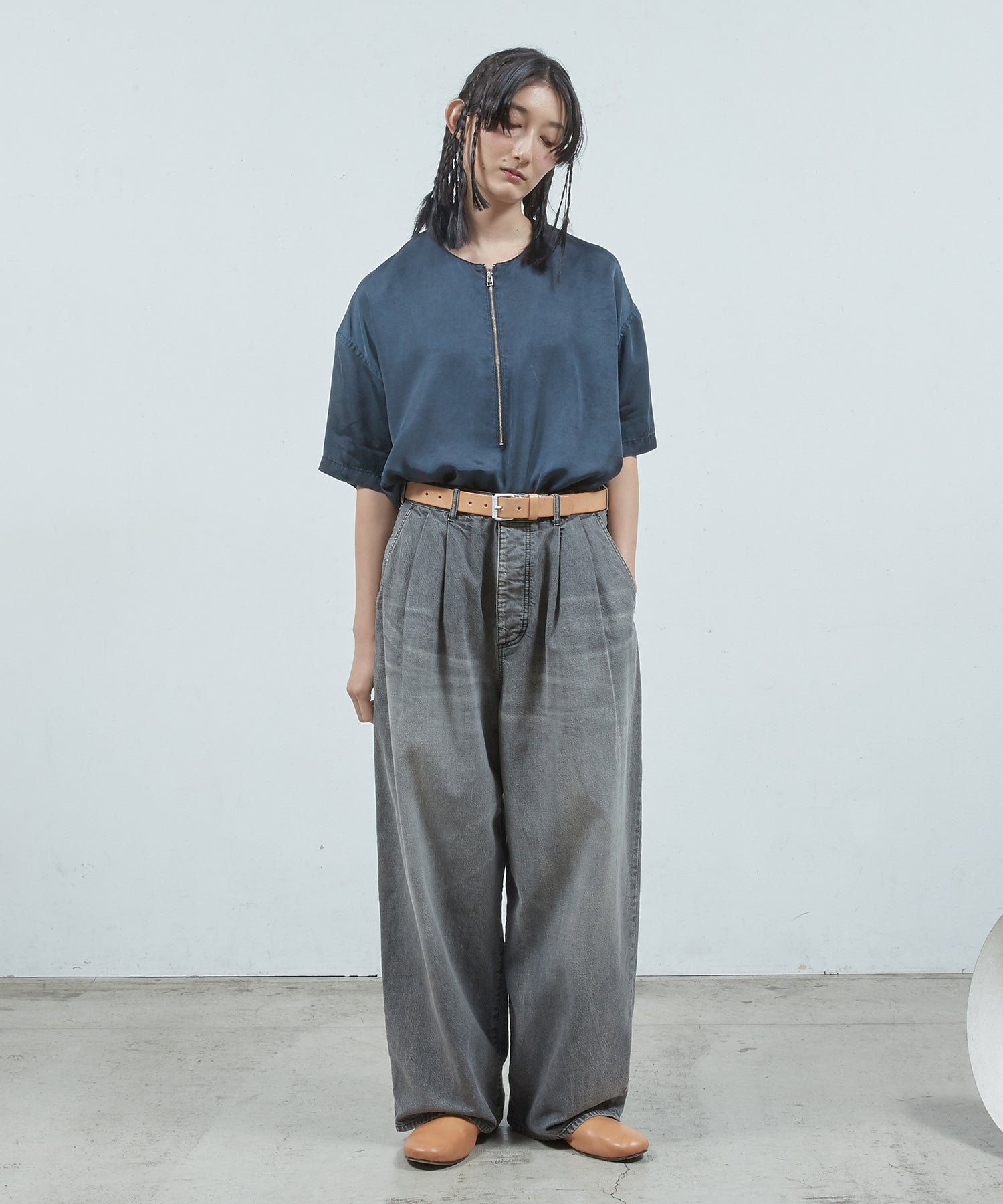 ウエストにゆとりを持たせ、通気性を高めながら、エレガントな雰囲気を纏わせた2タックデザイン。