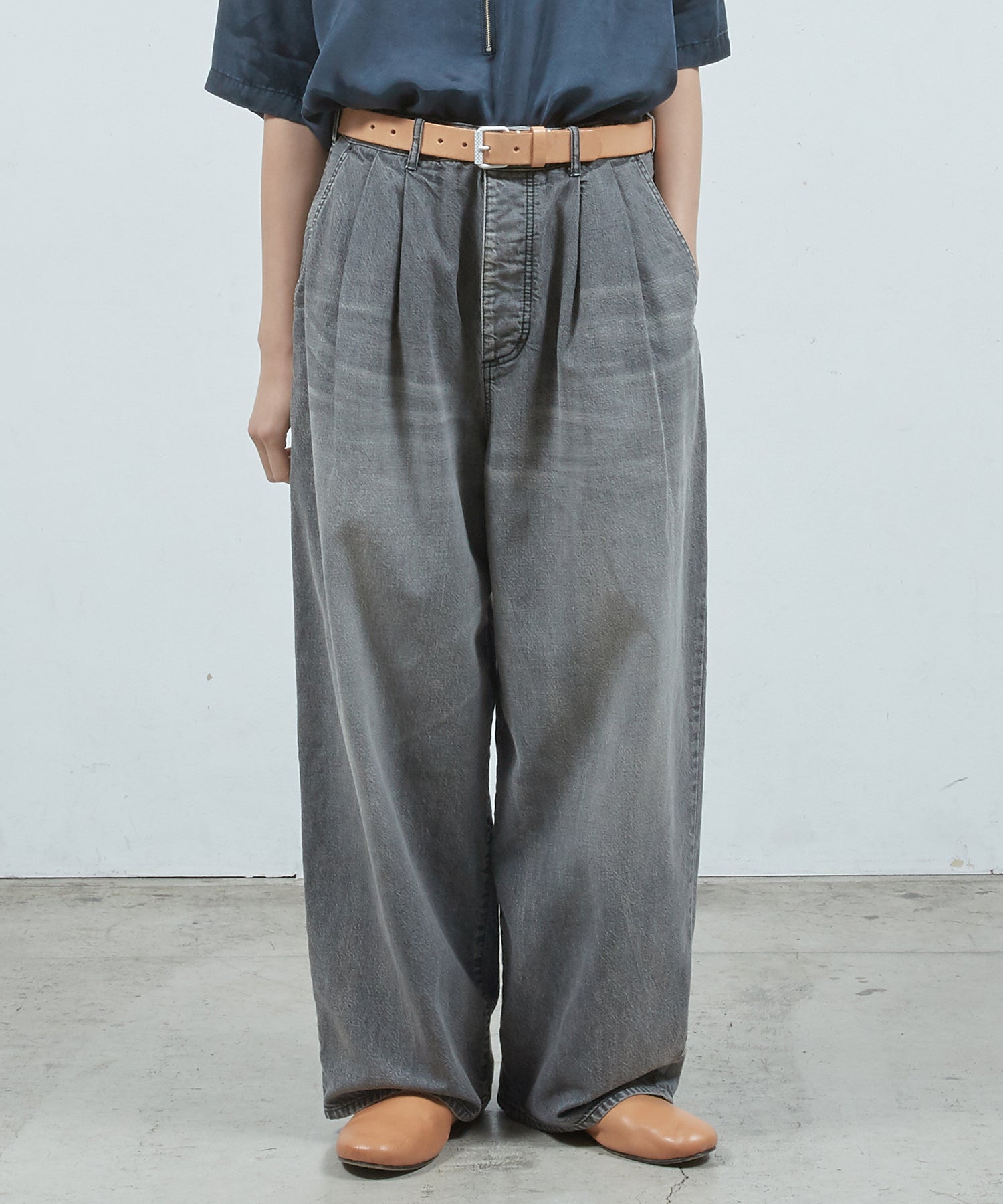 デニムシンプル2タックワ イドPT