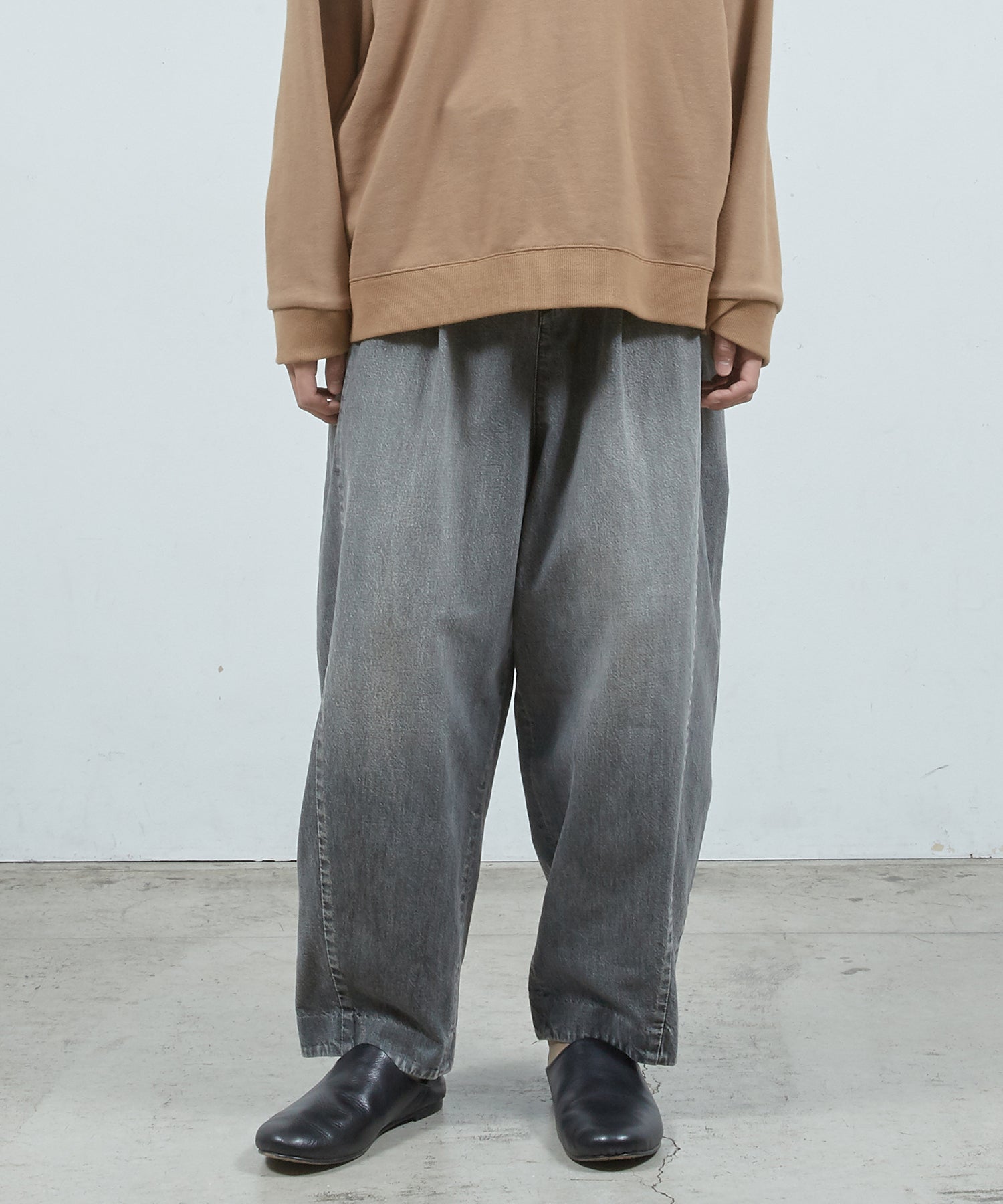 まるみをおびたワイドシルエットながら、テーパードをきかせて上品な印象にまとめました。