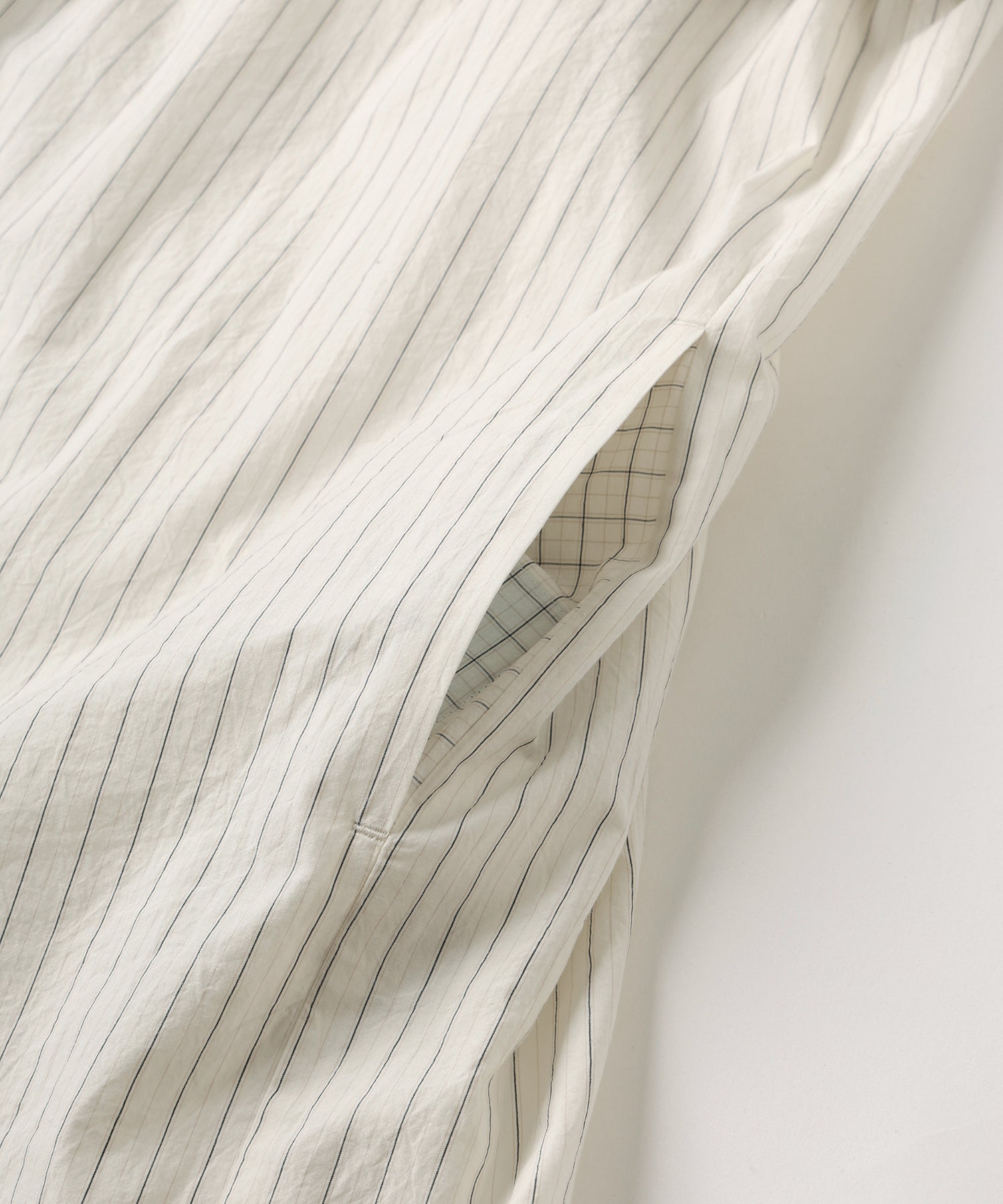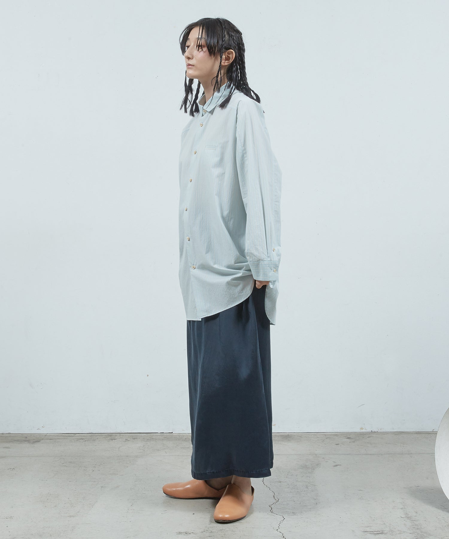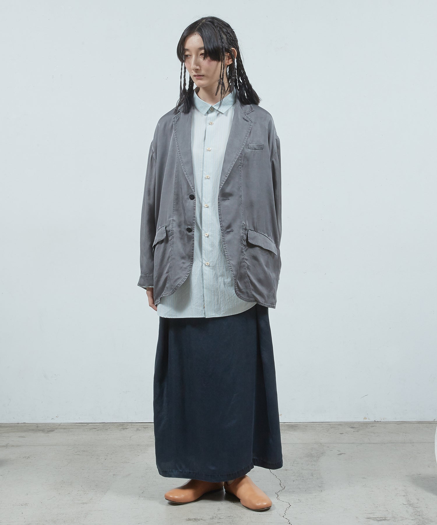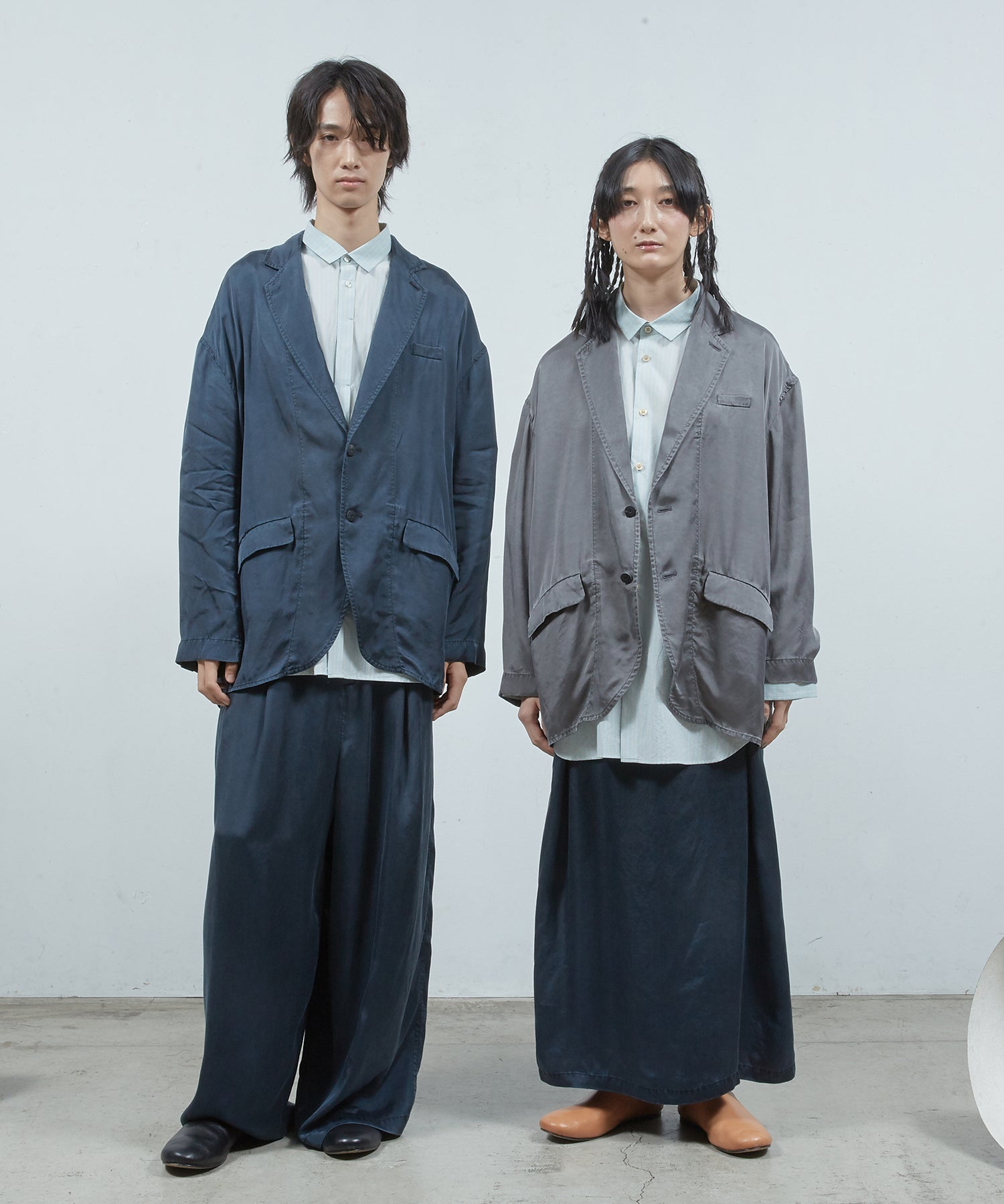 肩線をなくし、袖まで一体のパターンで仕上げることで、体に沿うシルエットになり、リラックス感のある印象を高めました。