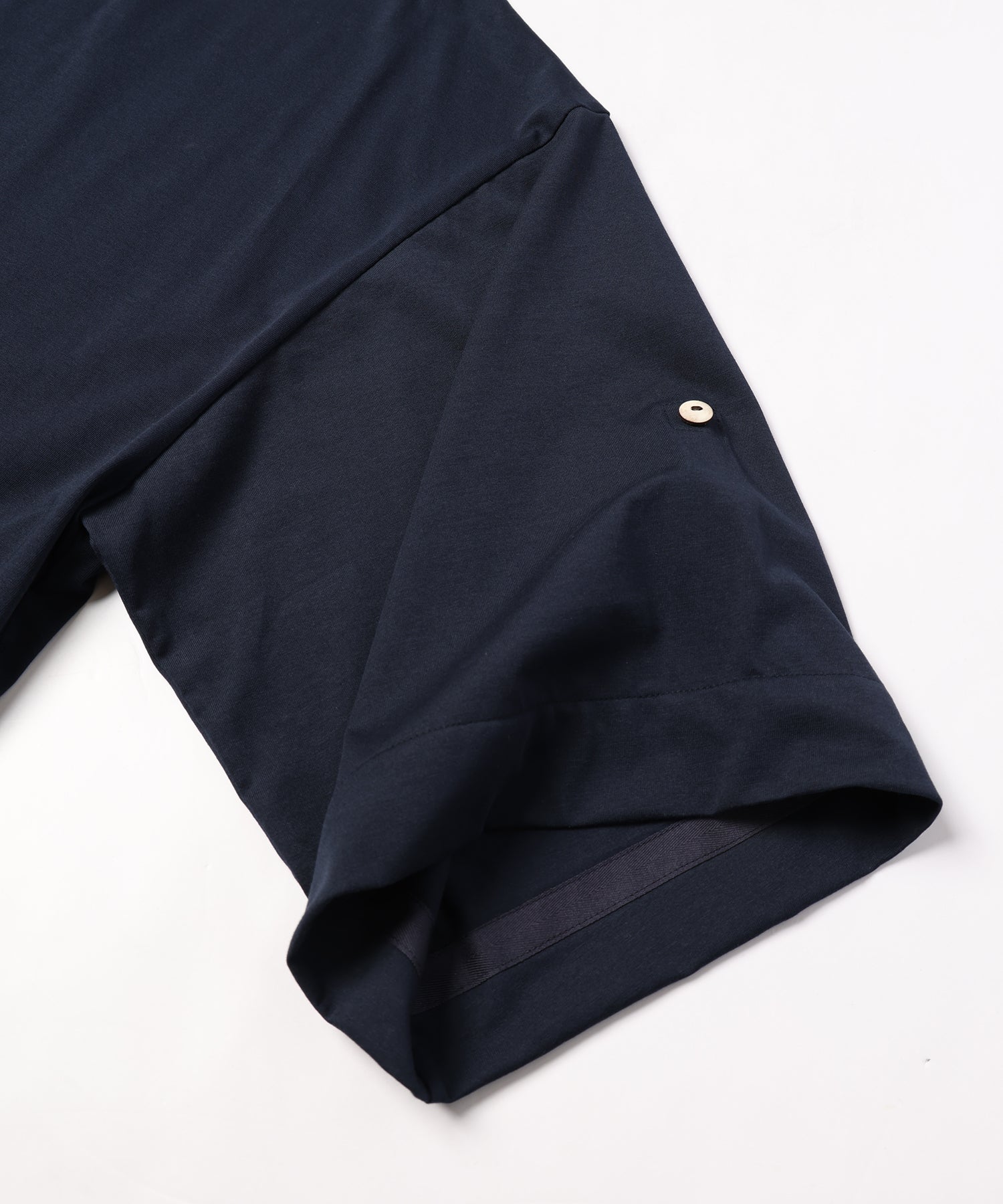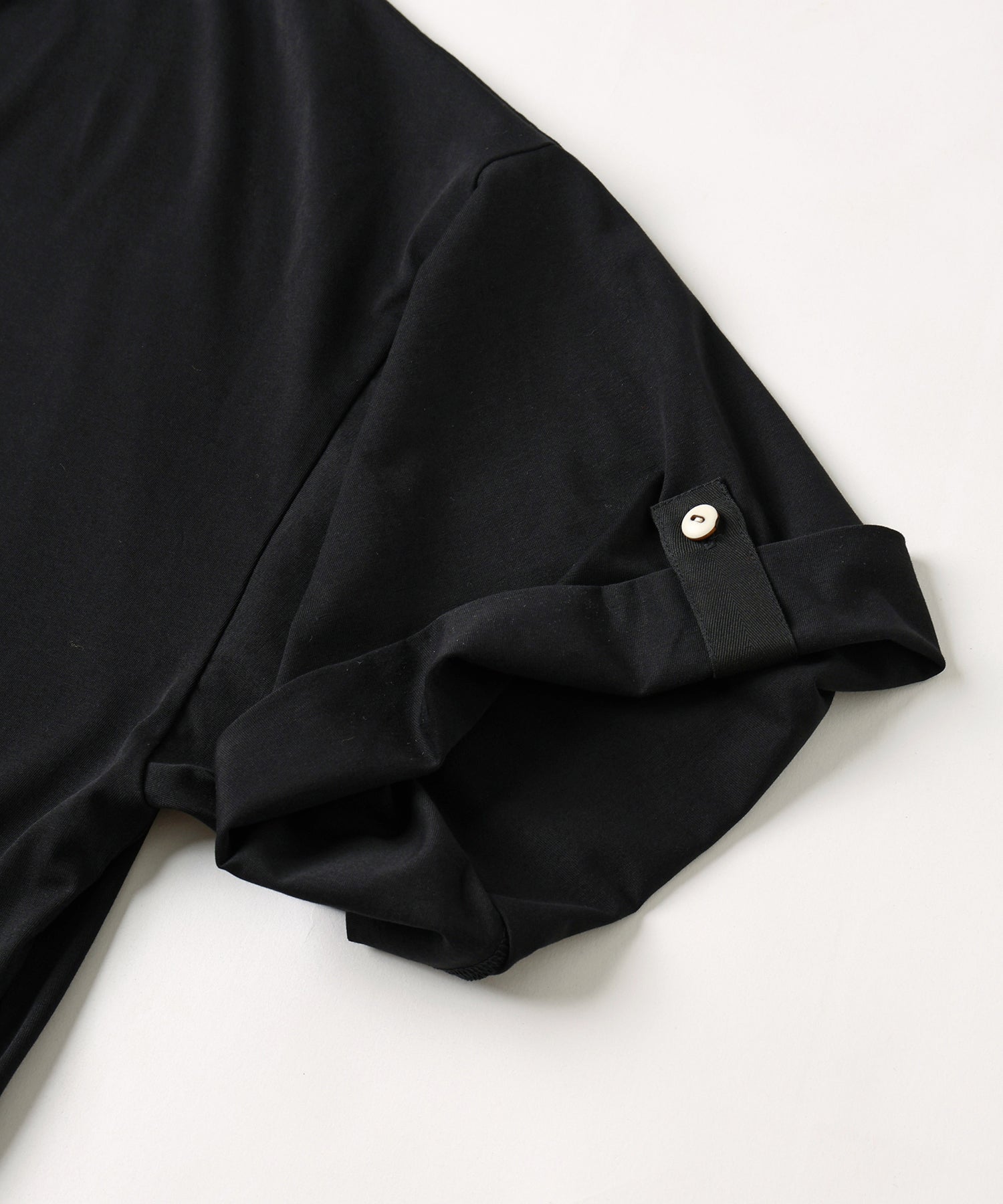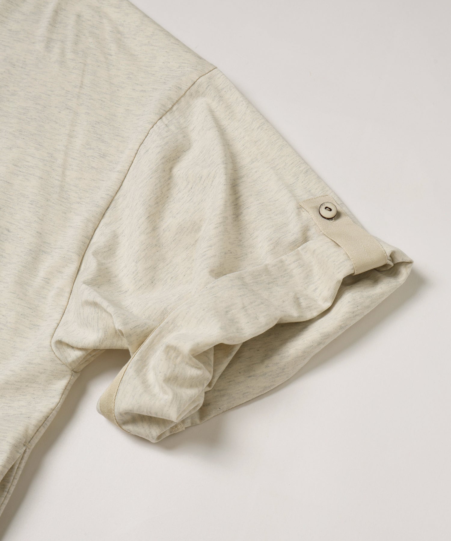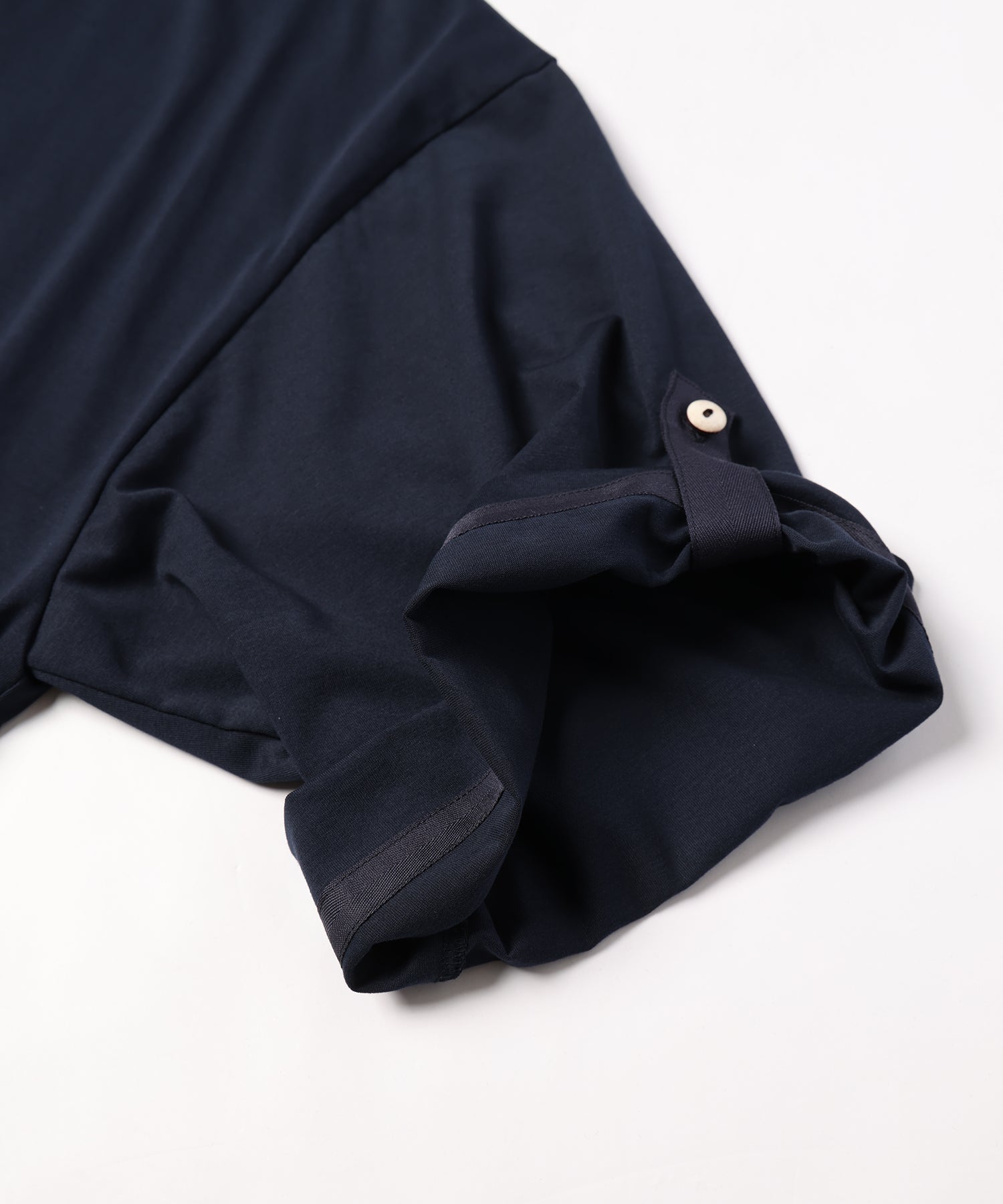 ゆったりとしたサイジング、袖の内側にはボタンが&ベルトが備えてあり、ロールアップすることで7分袖→半袖にすることが可能です。