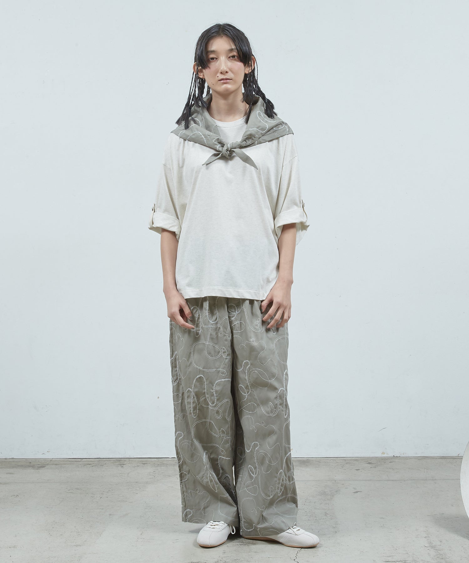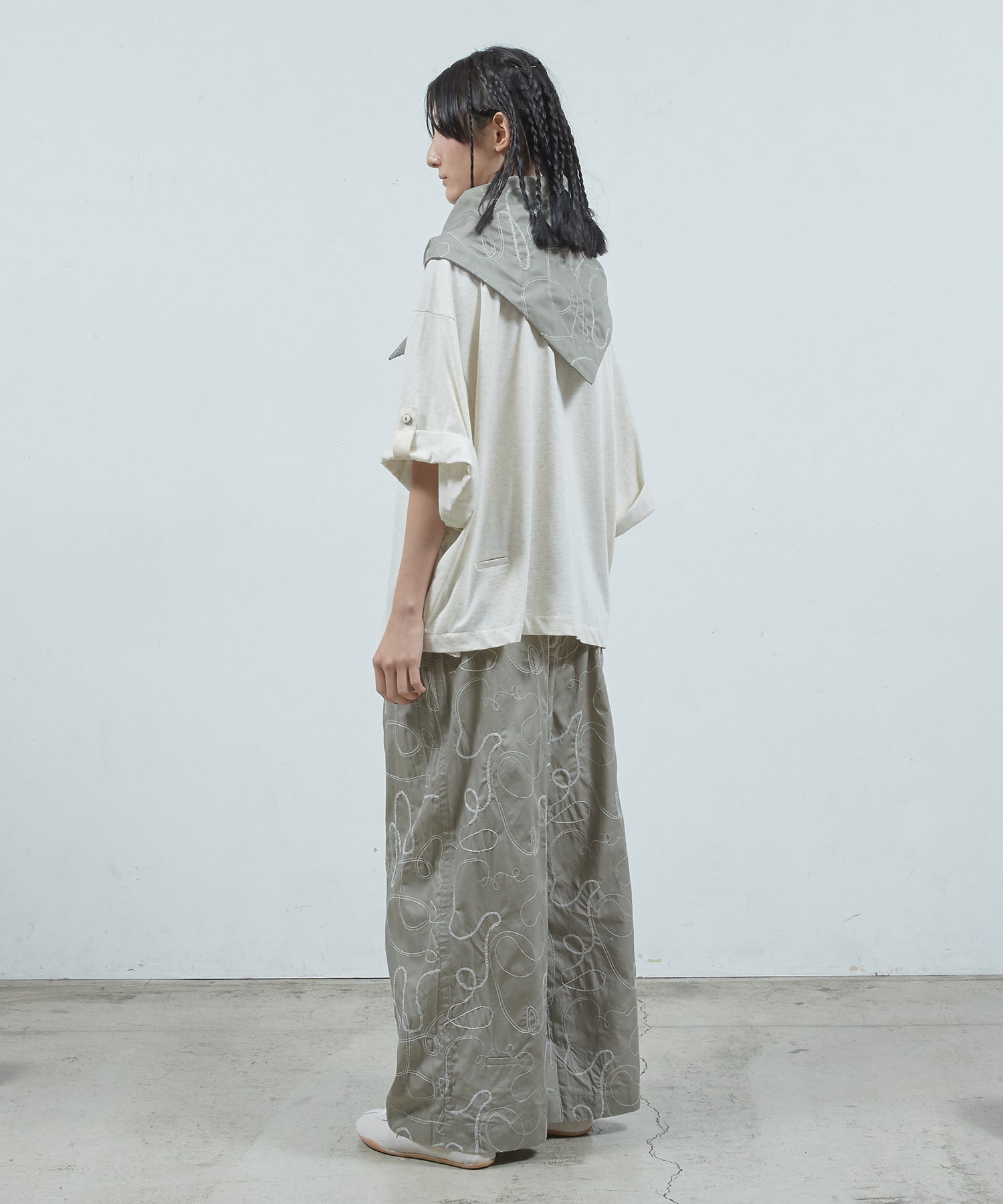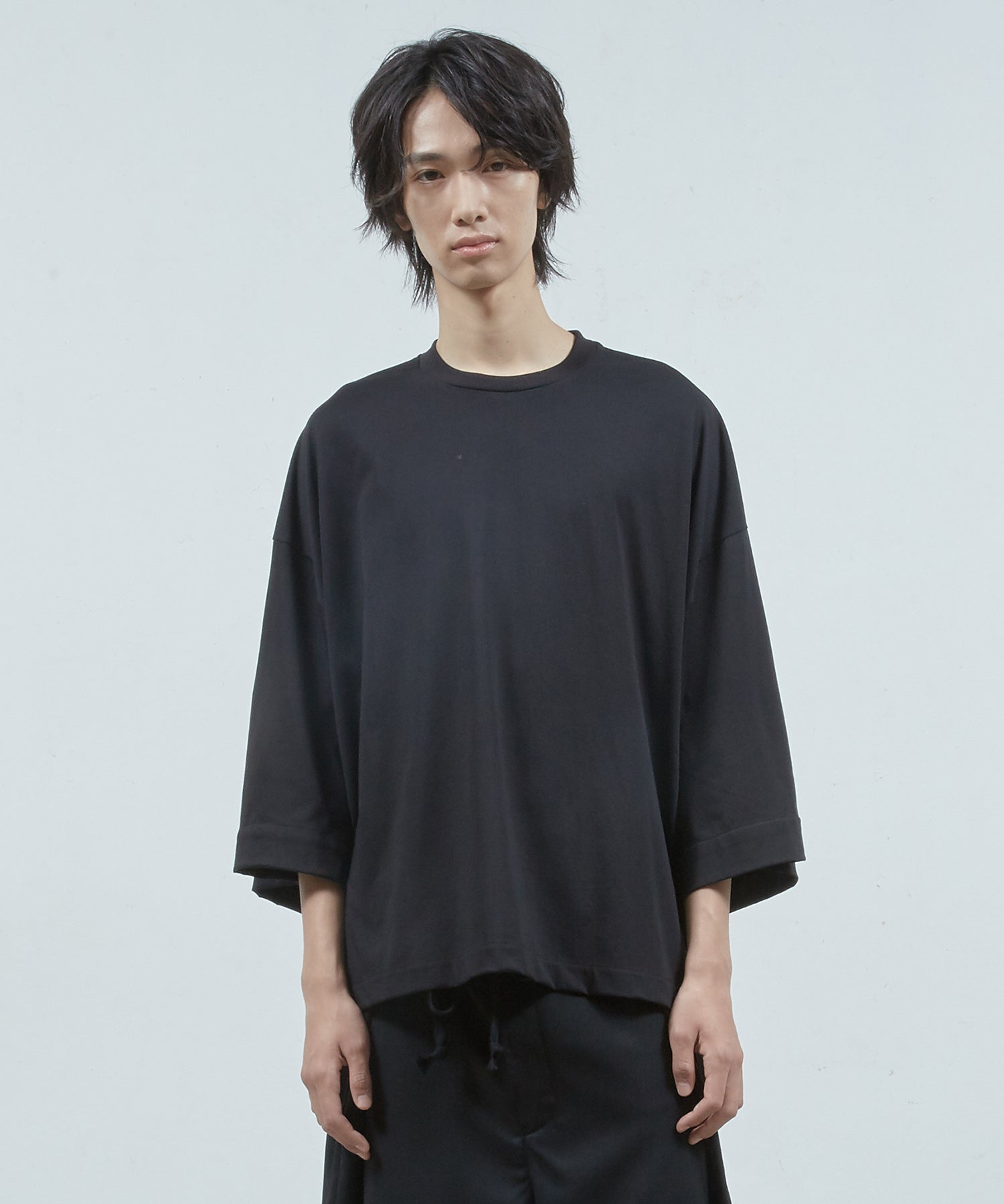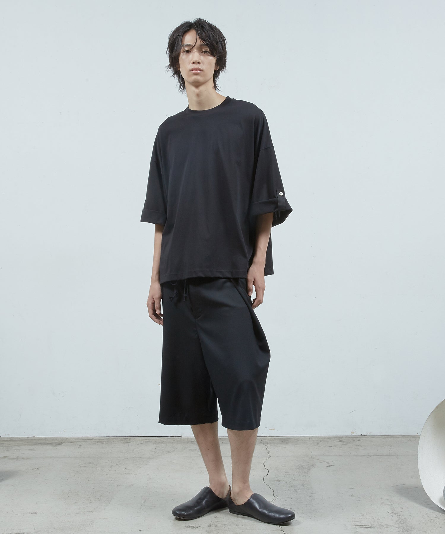 ゆったりとしたサイジング、袖の内側にはボタンが&ベルトが備えてあり、ロールアップすることで7分袖→半袖にすることが可能です。