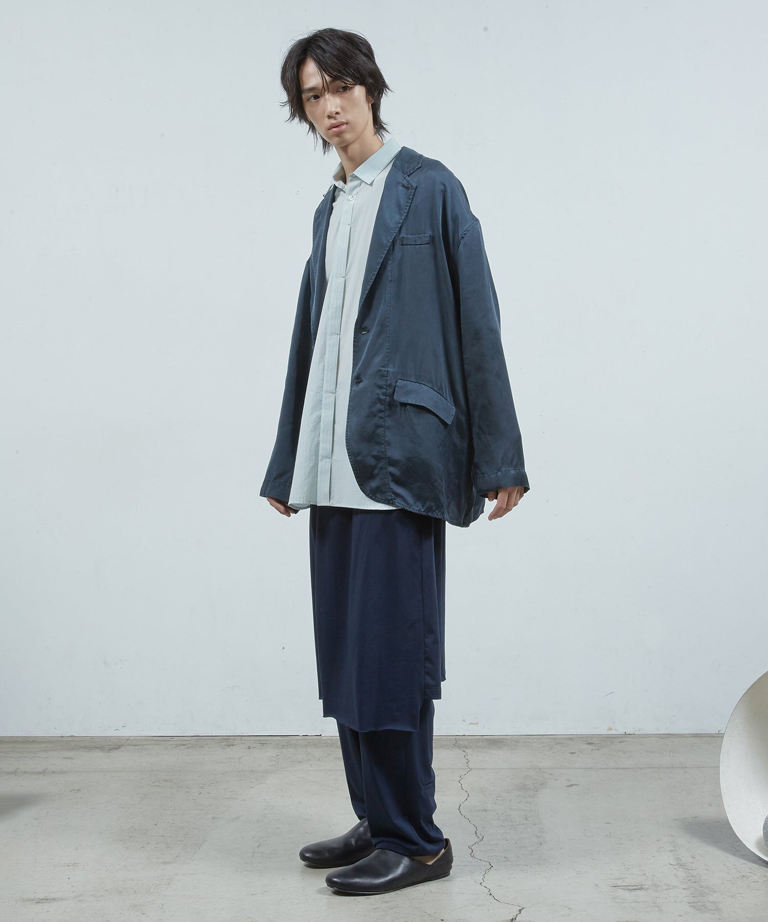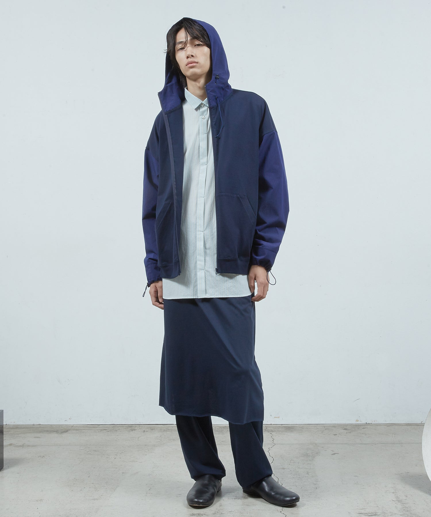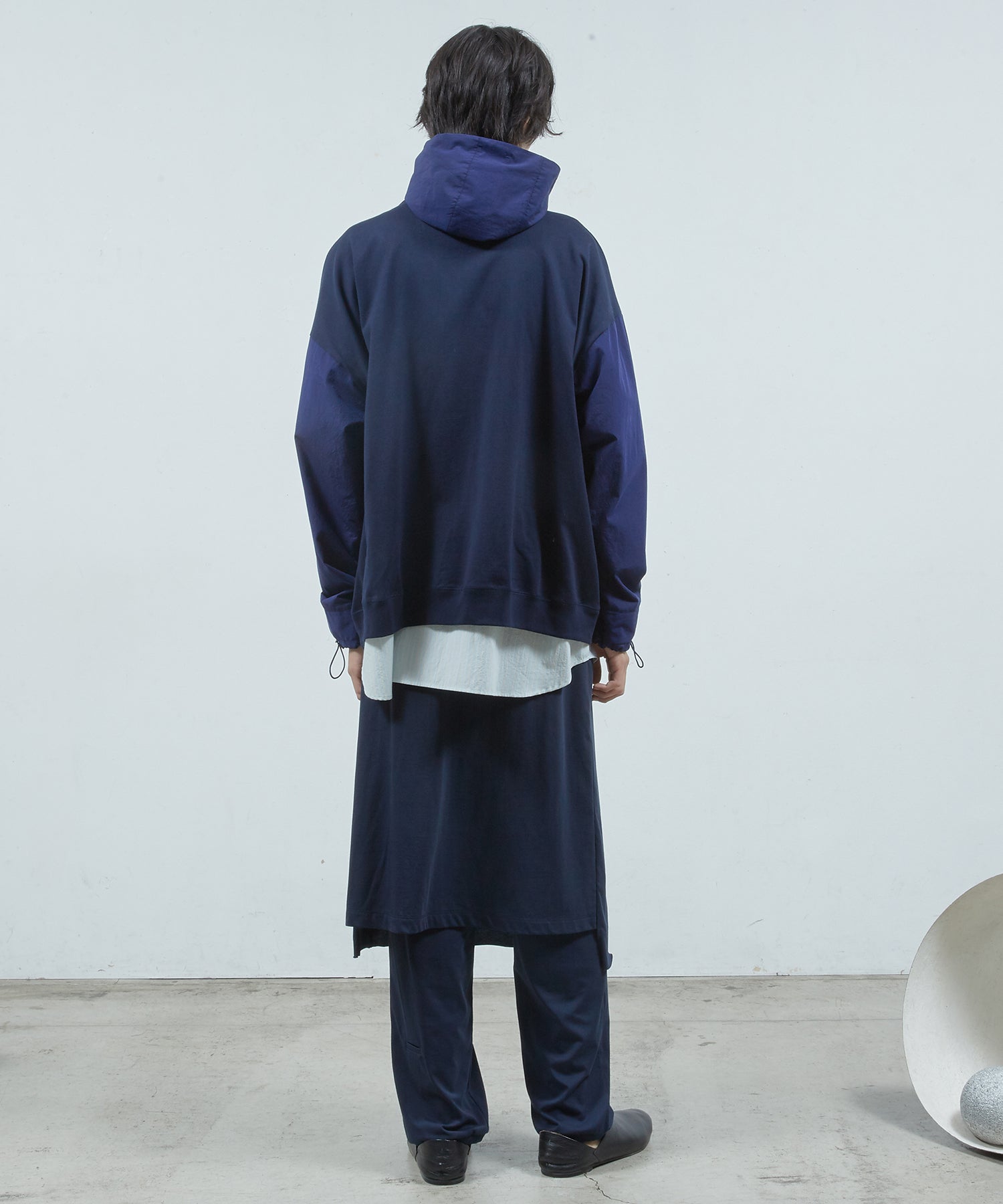 ベーシックなストレートシルエットのパンツにスカートをレイヤードしました。