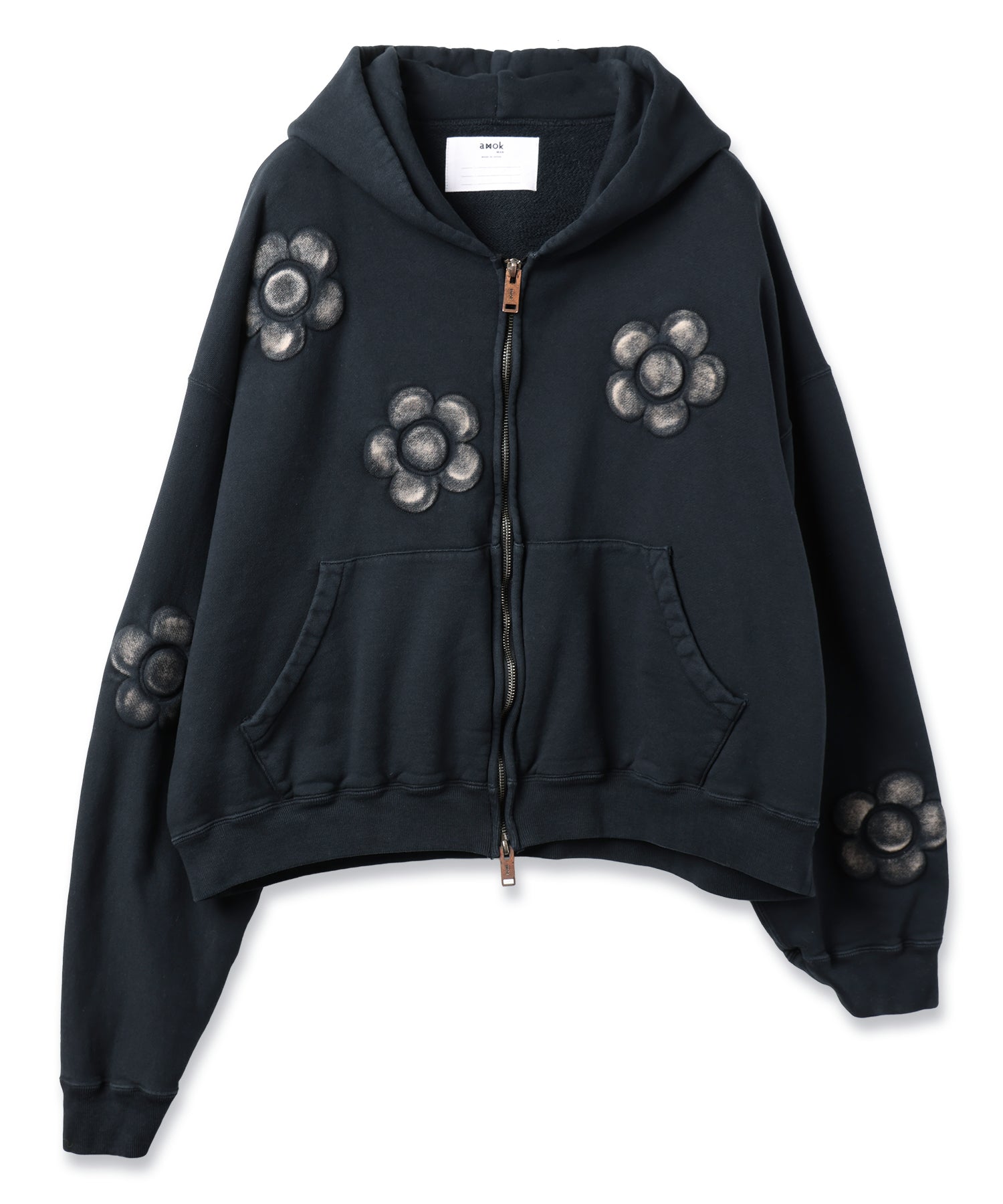 ショート丈のジップパーカー。製品ピグメント加工を施した一着となります。