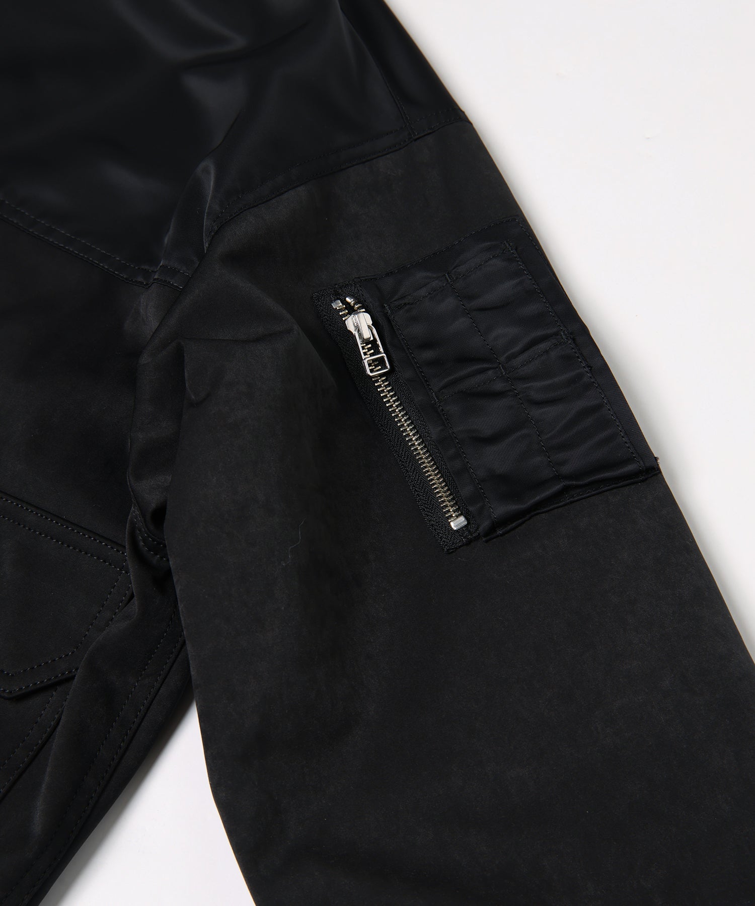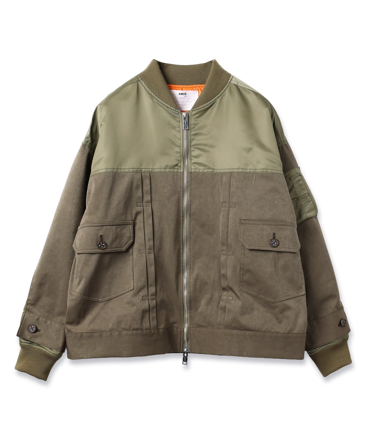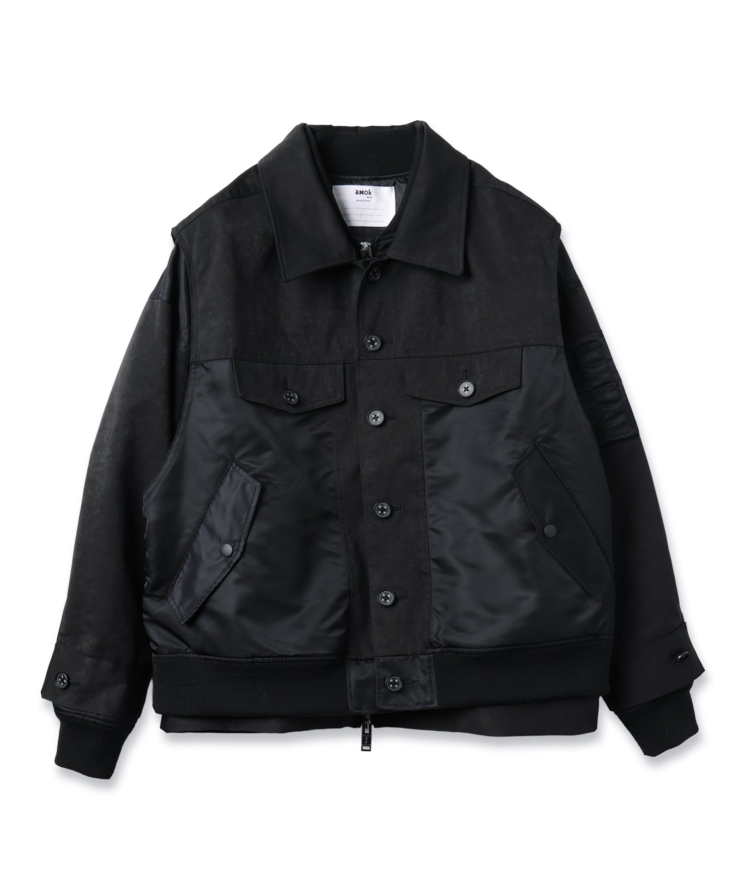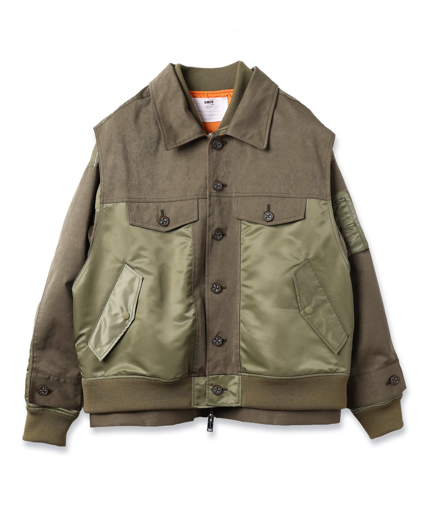 1枚にGジャンとMA-1がミックスされ、身頃のベスト部分のみ着脱可能な2WAYデザイン。