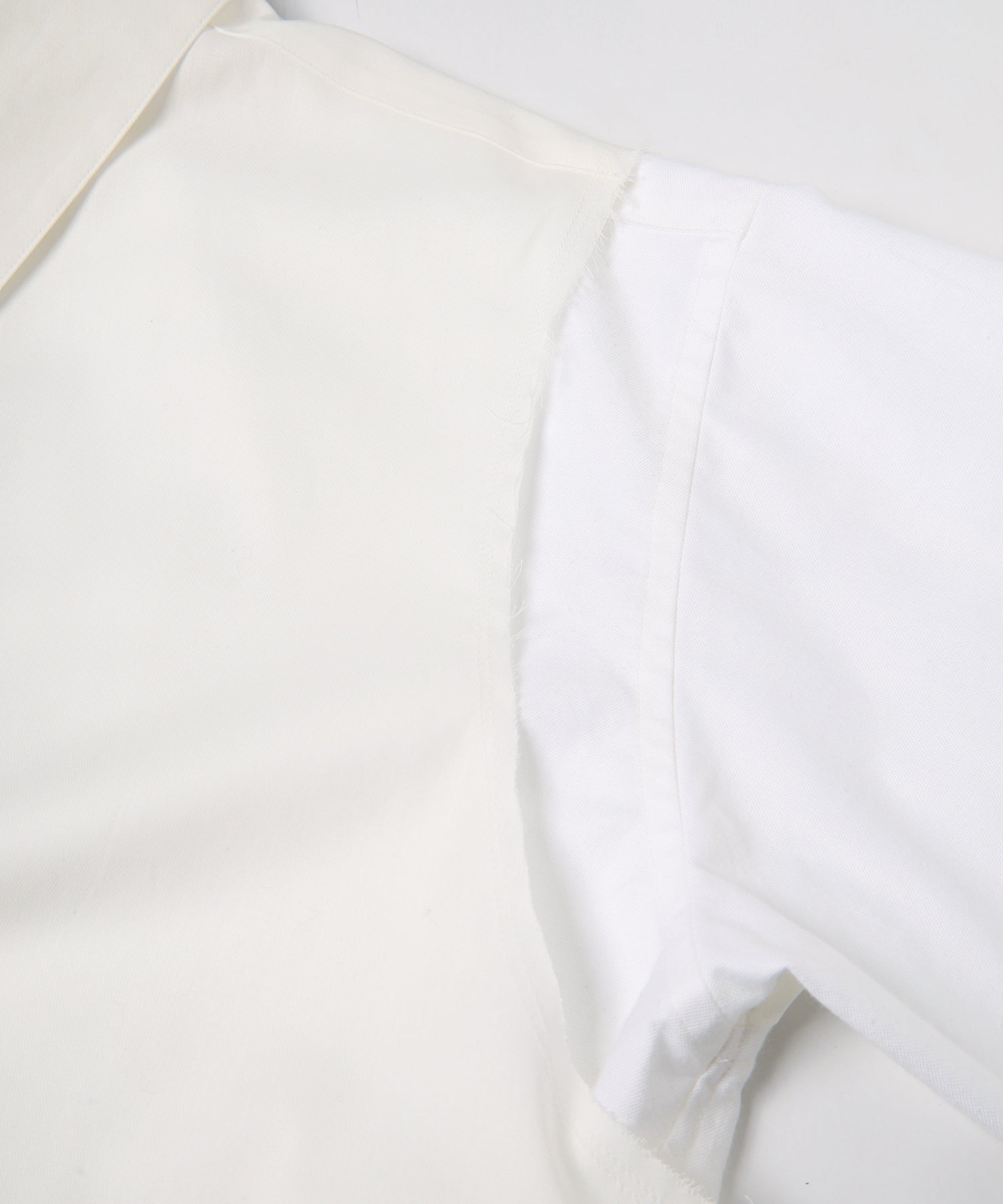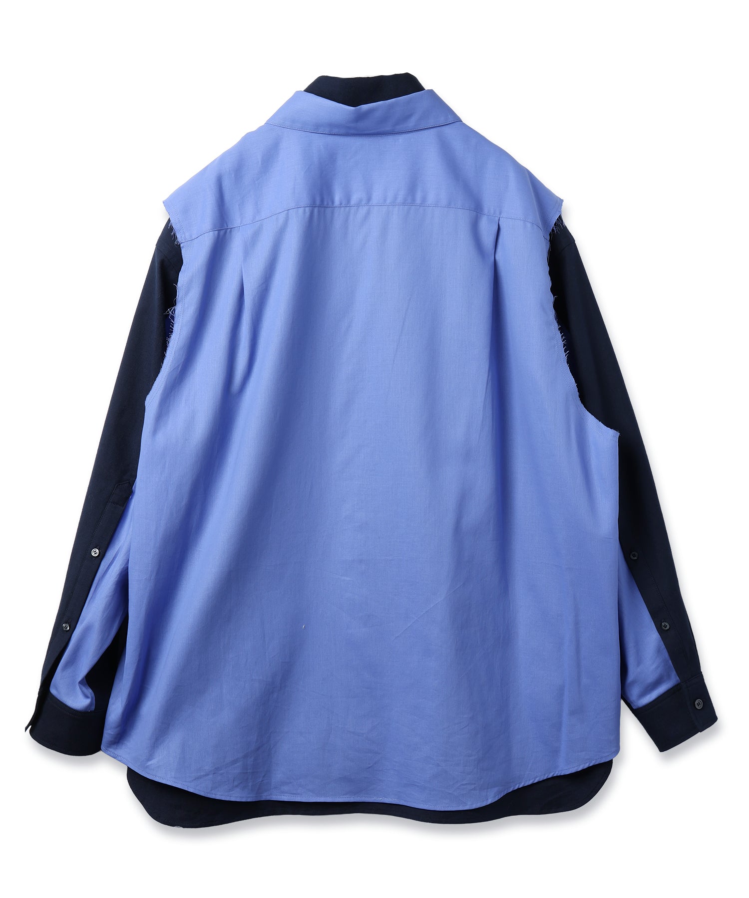 2種類の素材掛け合わせたゆったりとしたシルエットのレイヤードシャツ。