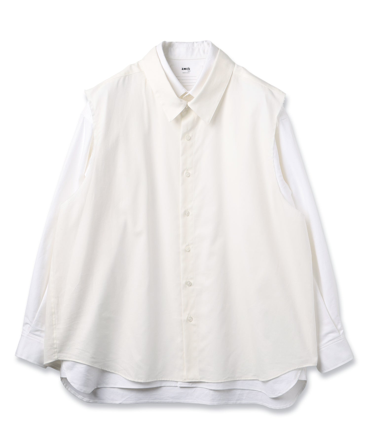 2種類の素材掛け合わせたゆったりとしたシルエットのレイヤードシャツ。