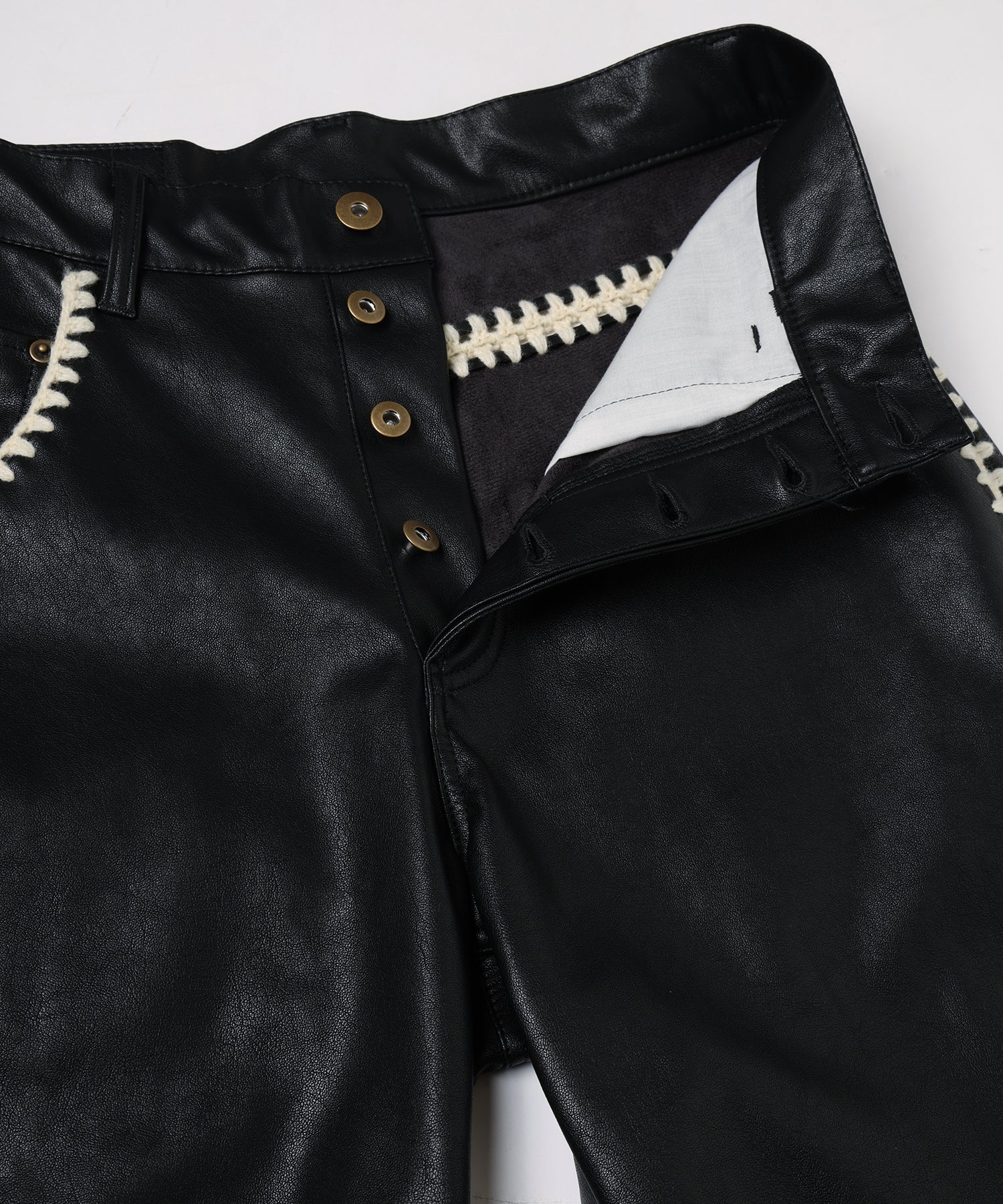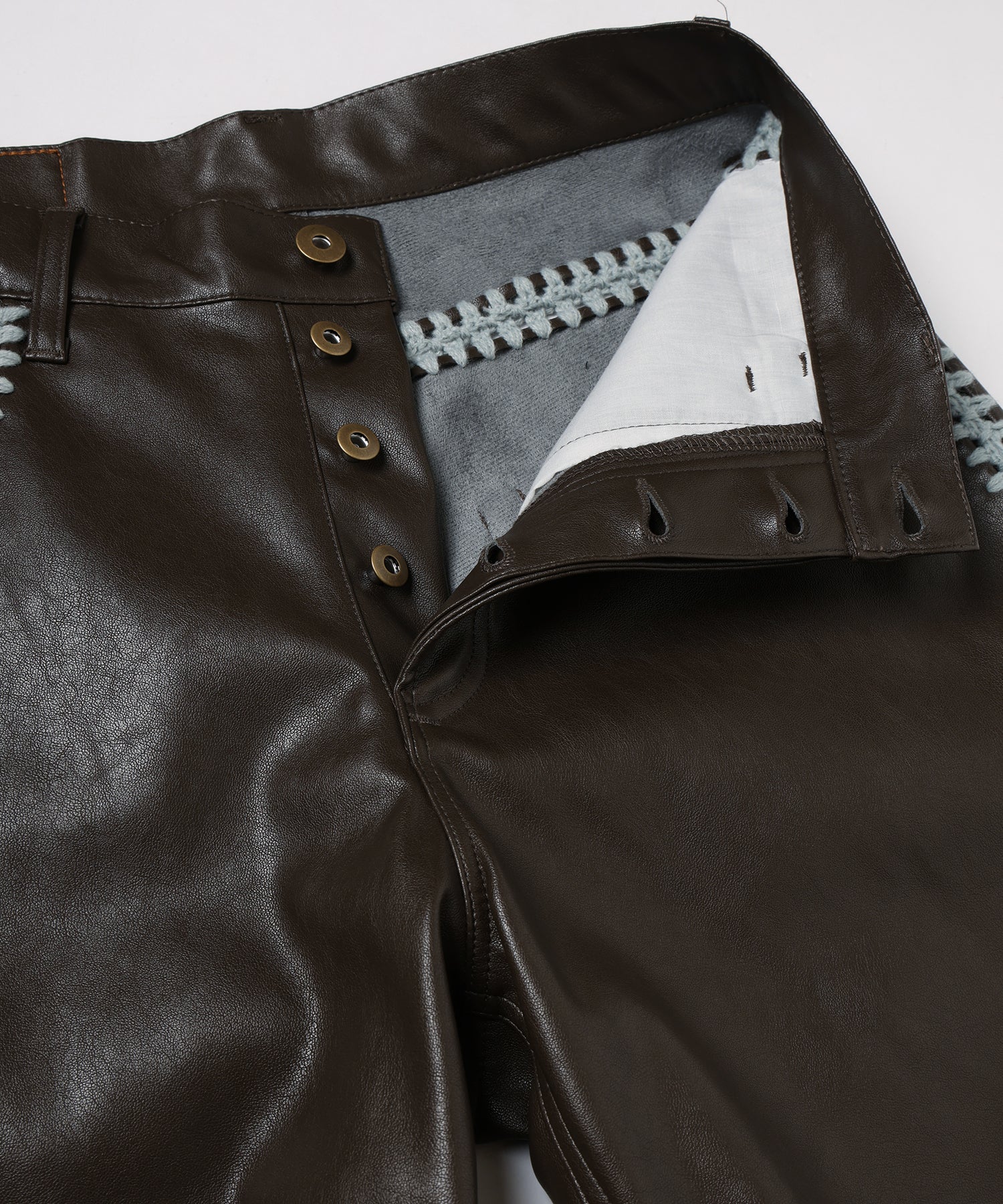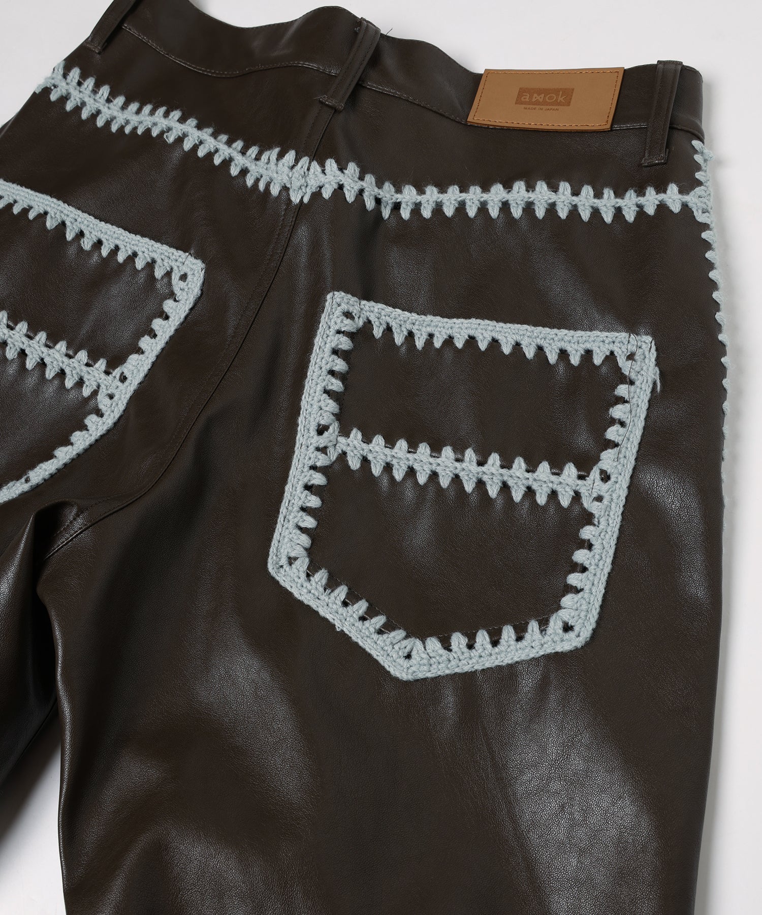 全てのシーム部分には一つずつ穴を開けかぎ針編みを組み合わせて全て手作業で接ぎ合わせました。