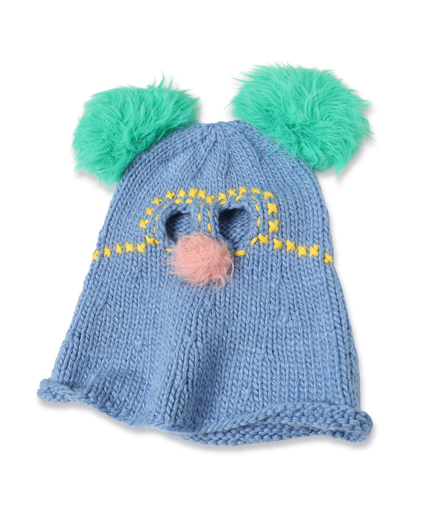 キャラクターモチーフのバラクラバは折り返すと通常のニット帽としても着用可能になります。