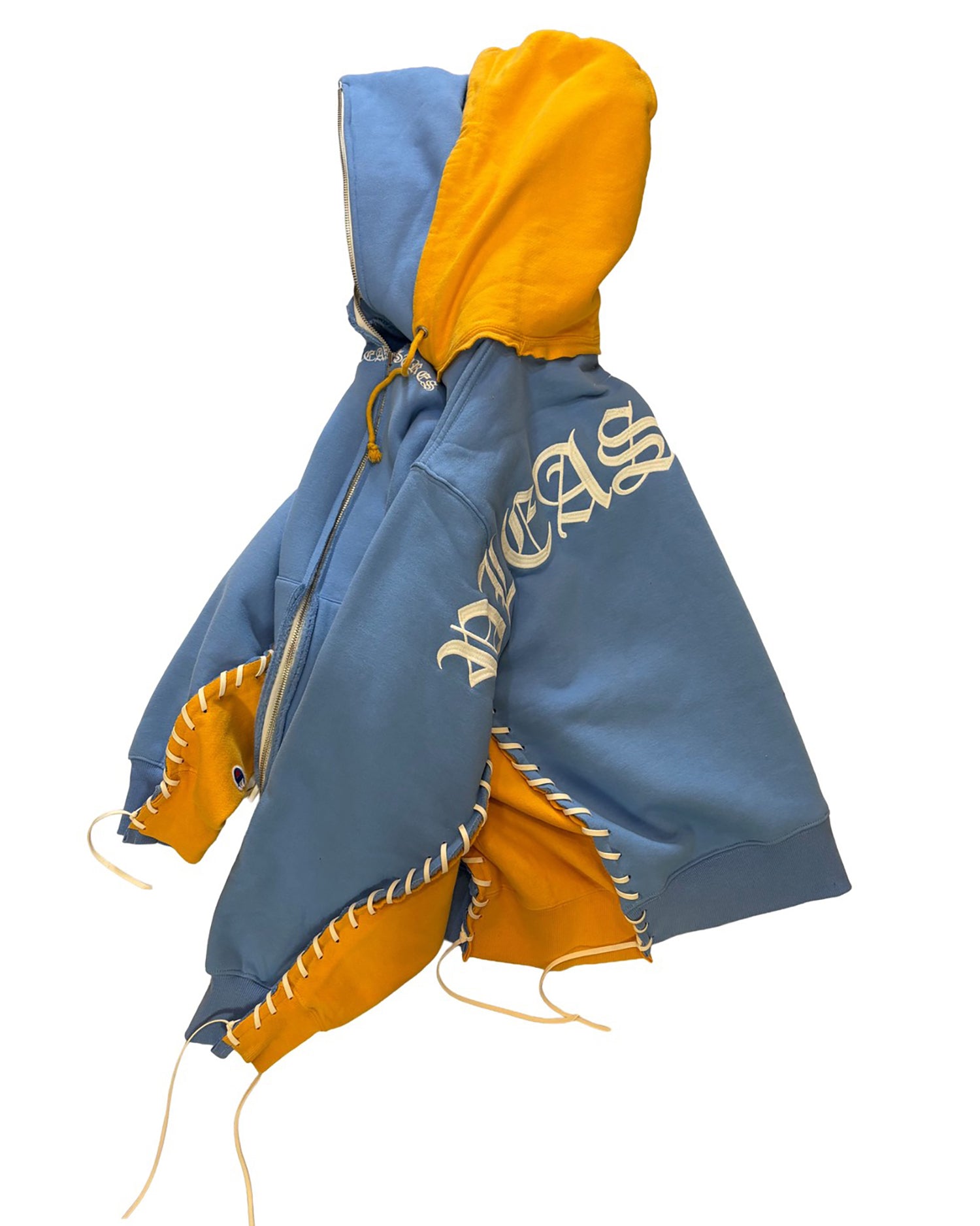 枚のhoodieを解体後、再構築することでワイドなシルエットを描きだしています。
