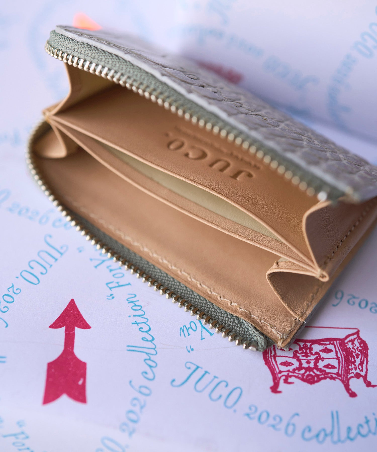 ミニマルな佇まいの中に、JUCO.らしい素材感と手仕事の魅力を感じられる、小さく頼もしいミニ財布です。