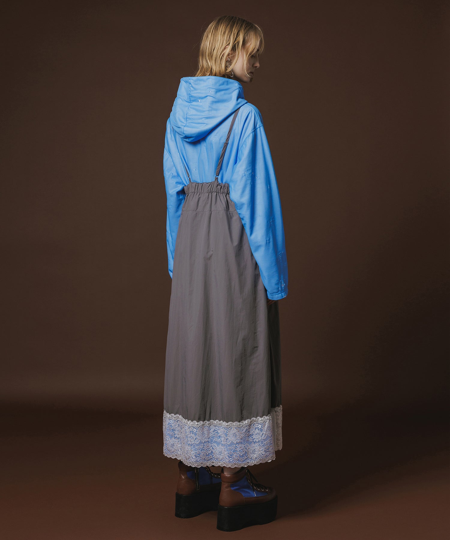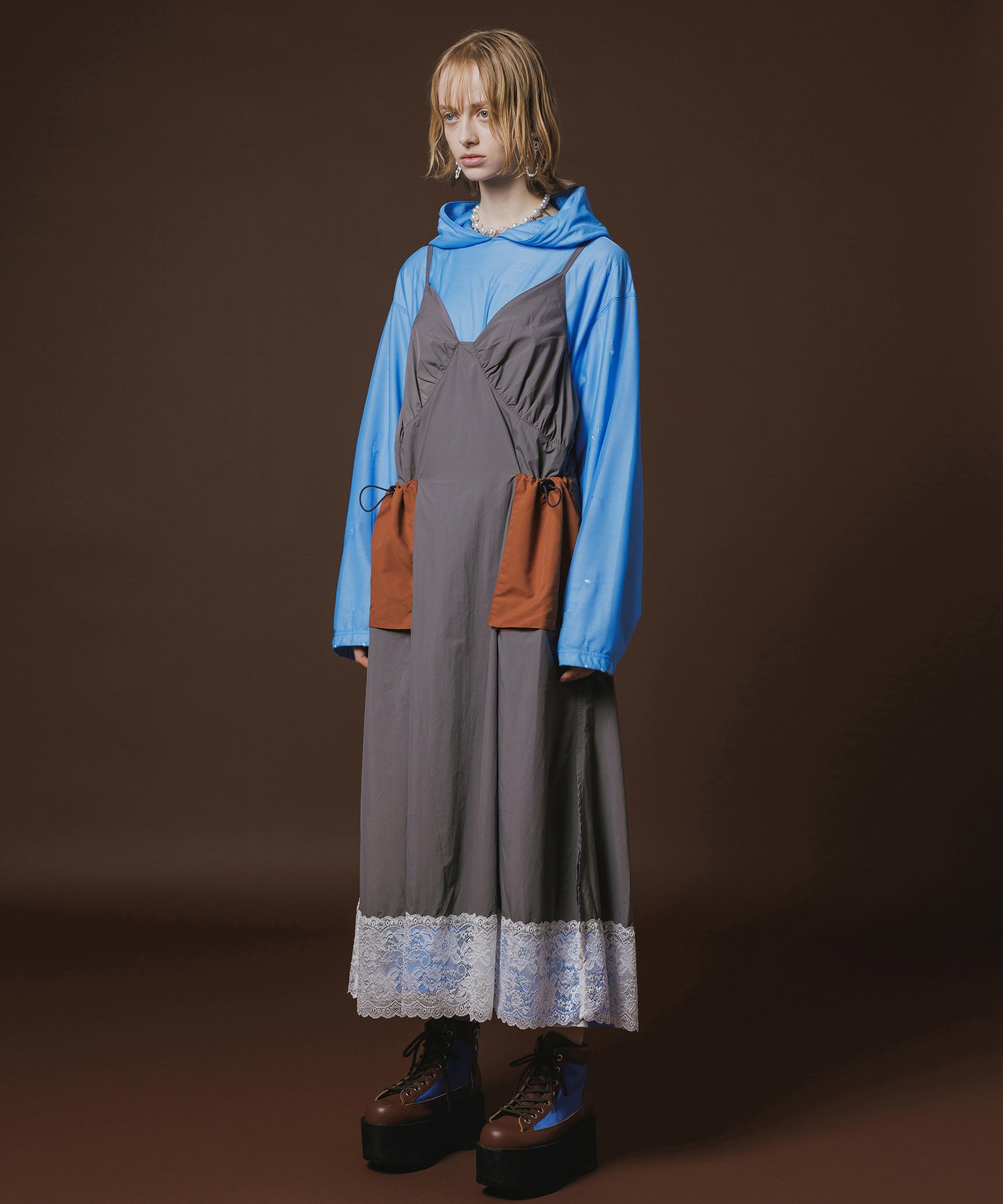 裾にレースが付いたナイロンワンピース。