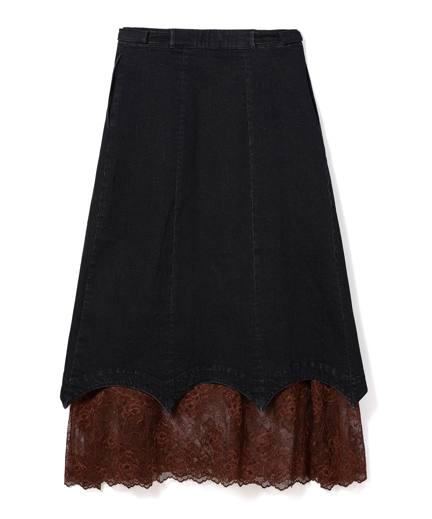 繊細なレースがレイヤーされたデニムスカート。