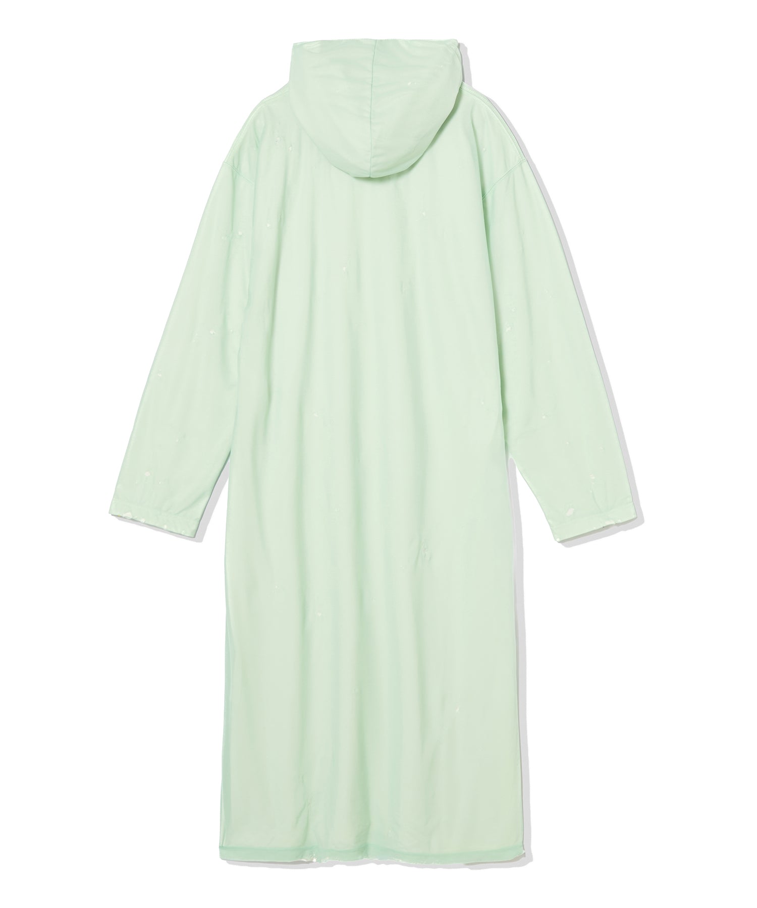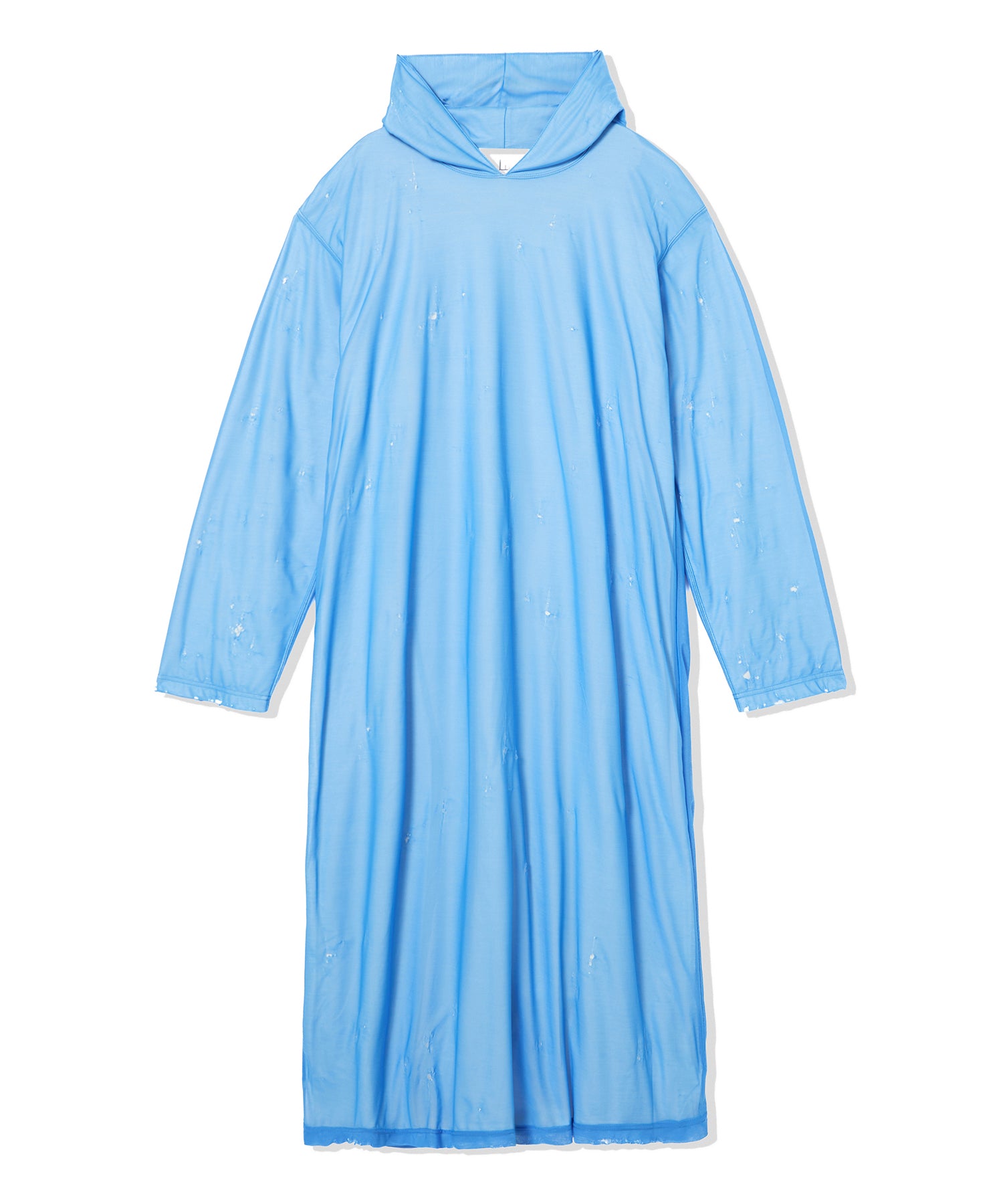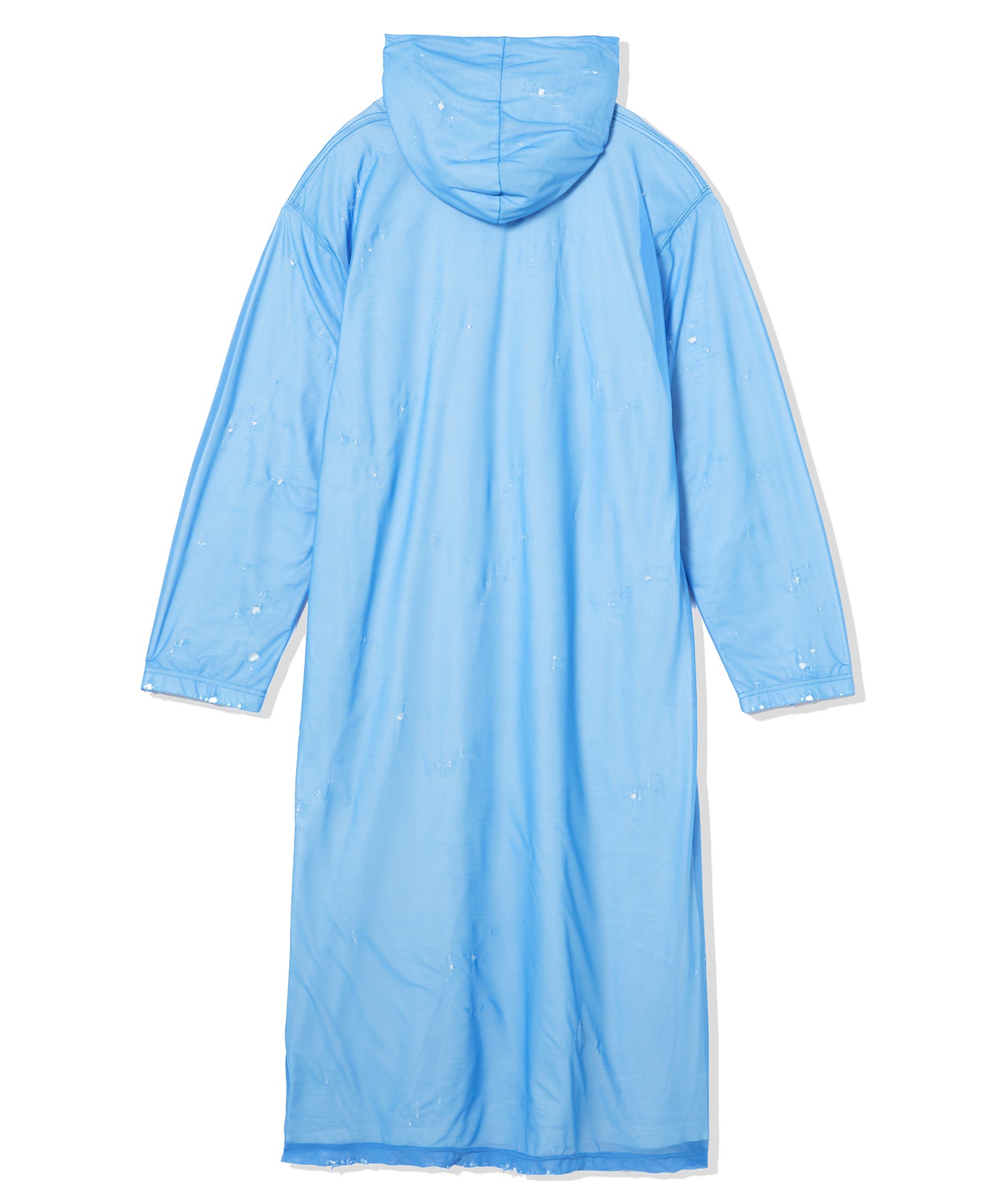 クラッシュ加工を施したマキシ丈のフーディーワンピース。