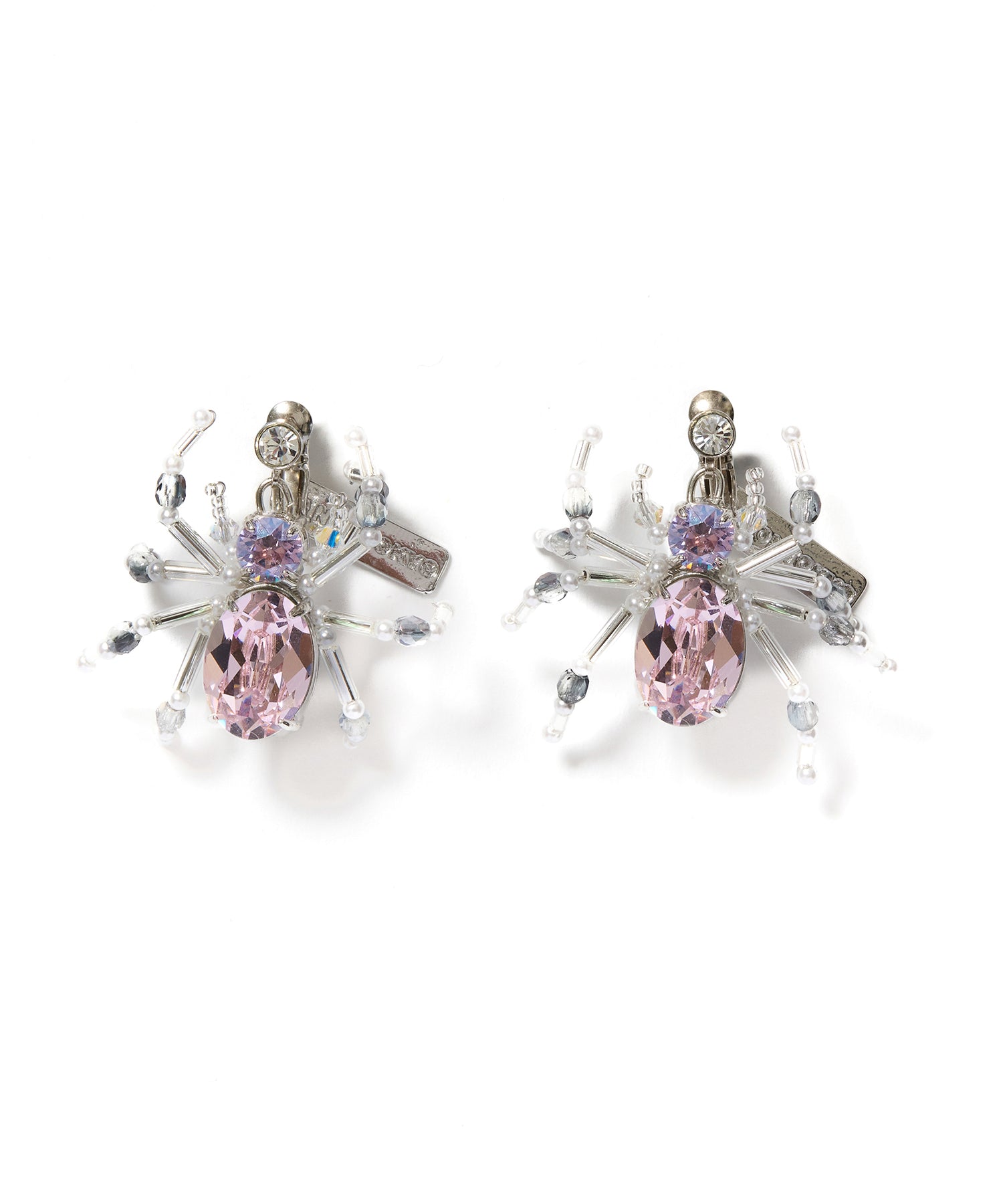 繊細な輝きを放つクリスタルガラスを使用した、蜘蛛モチーフのイヤリング。