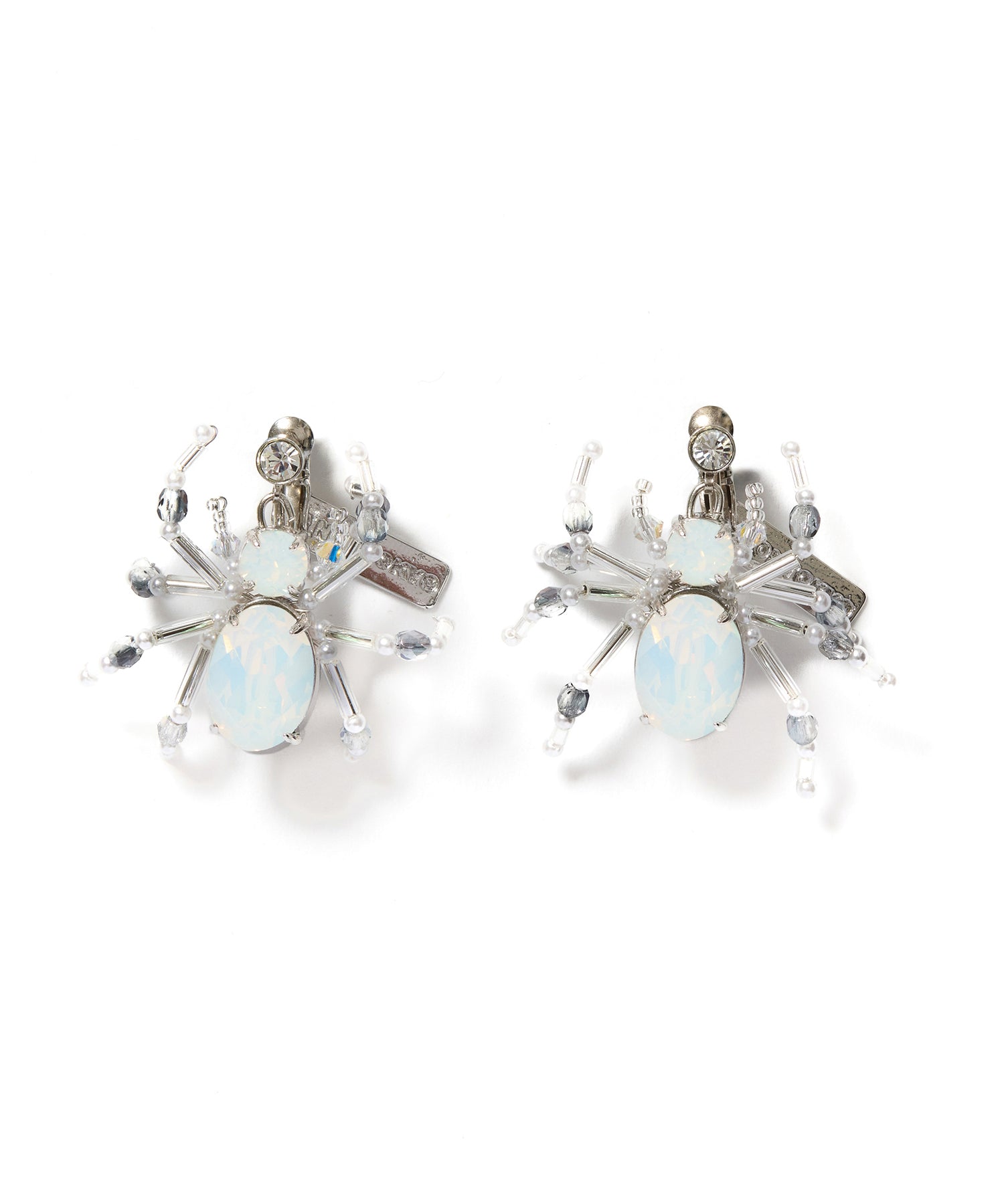 繊細な輝きを放つクリスタルガラスを使用した、蜘蛛モチーフのイヤリング。