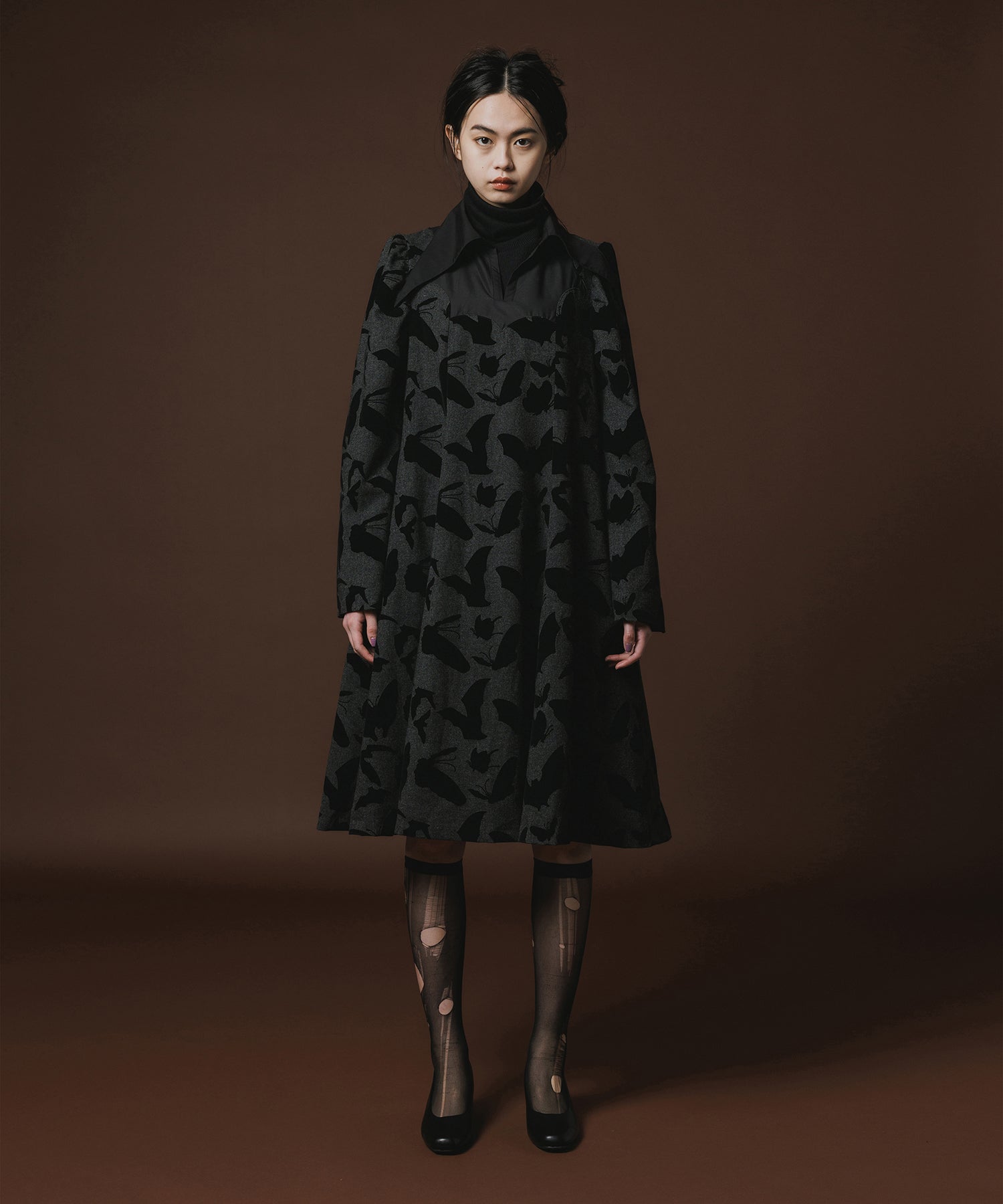 本体にオリジナルの総柄フロッキープリント(蝶とコウモリ)を施しています。