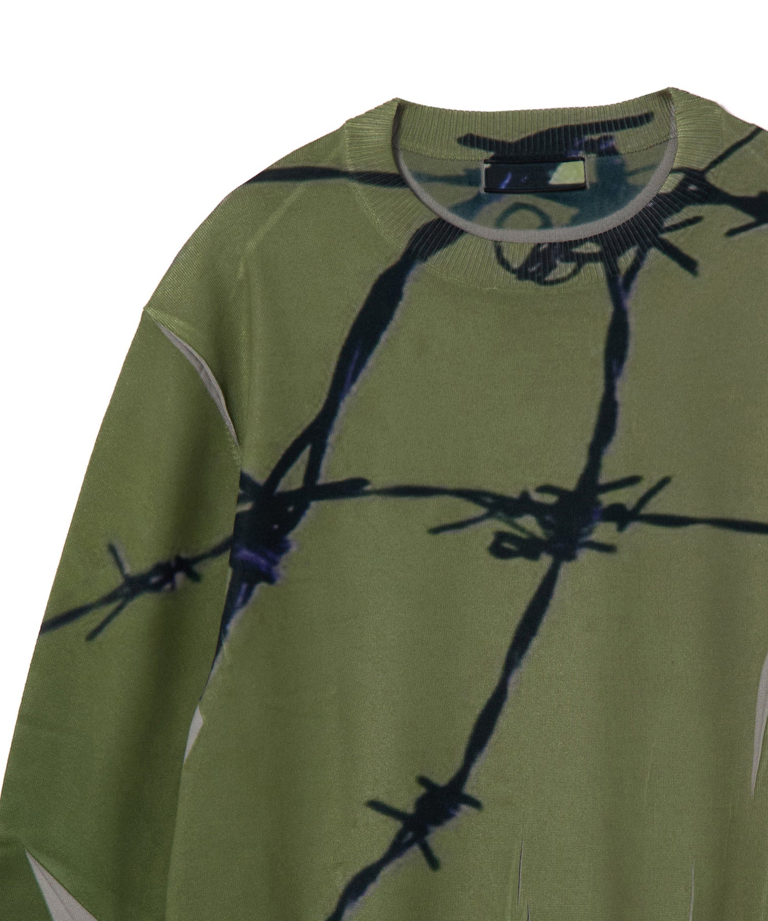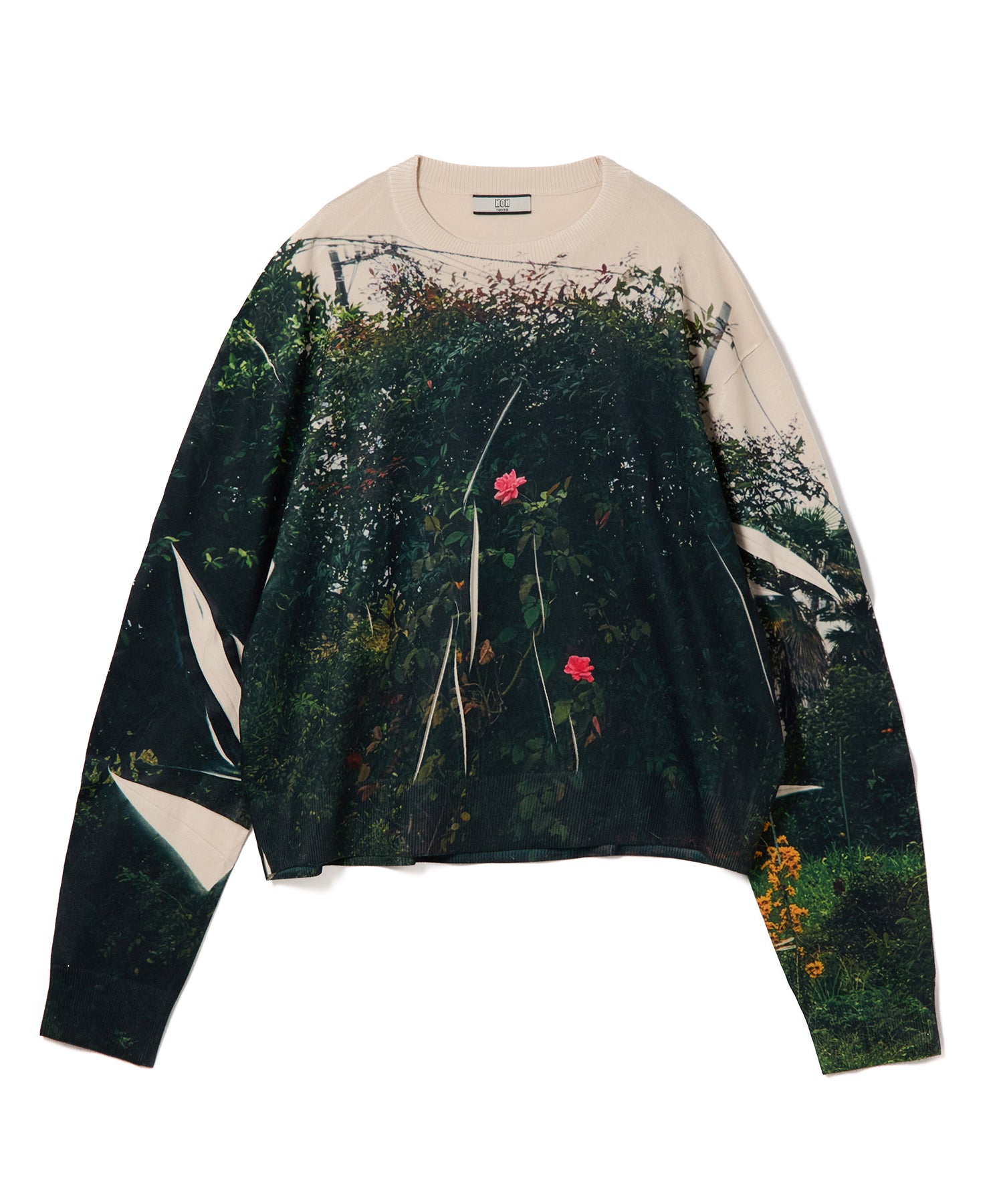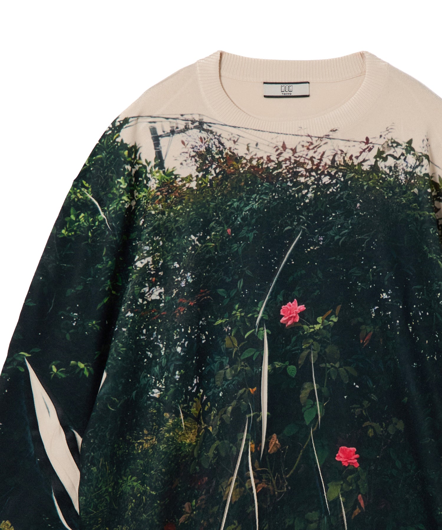 花が咲いた風景、有刺鉄線、雄大な山脈をイメージした転写プリントを施しました。