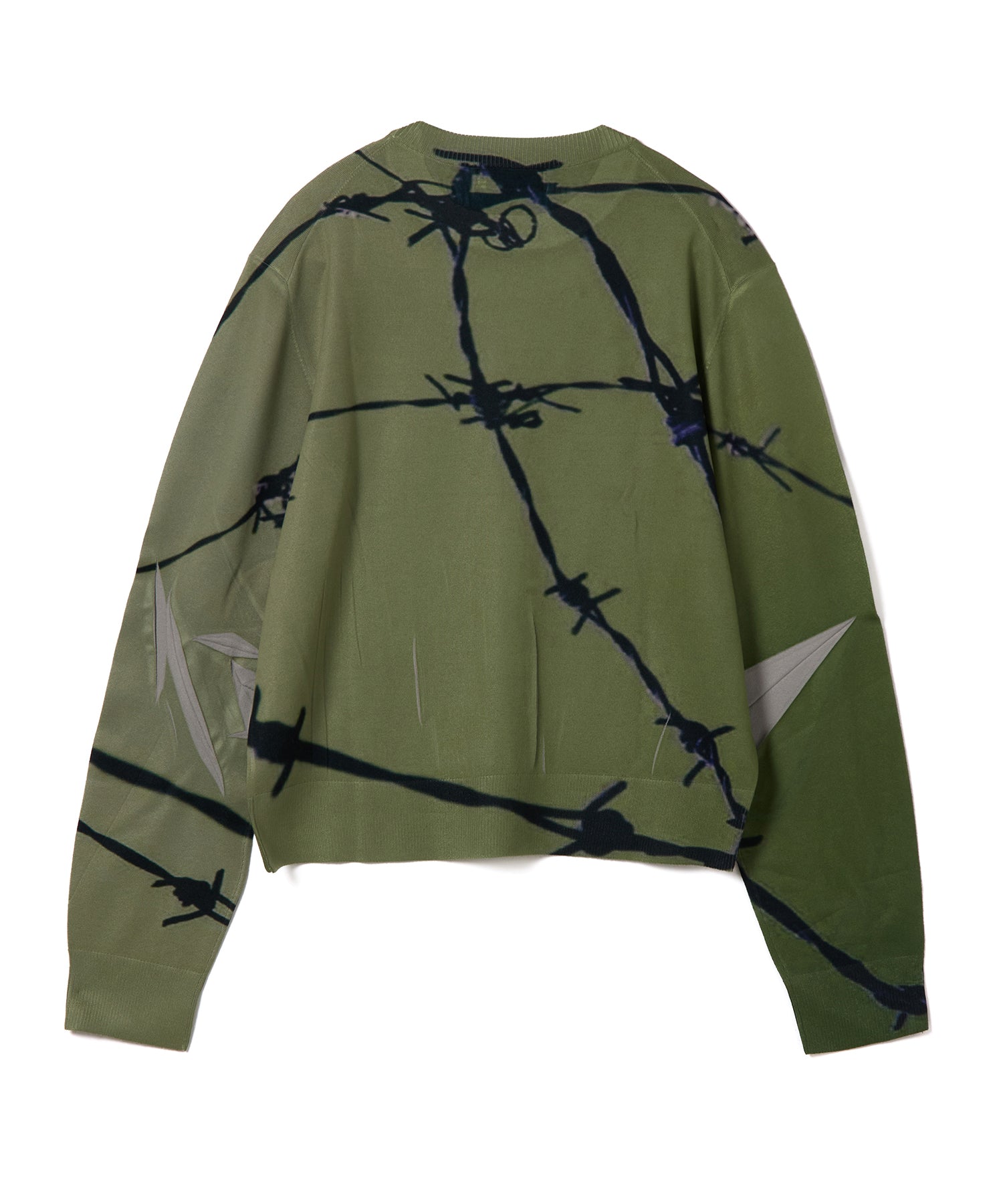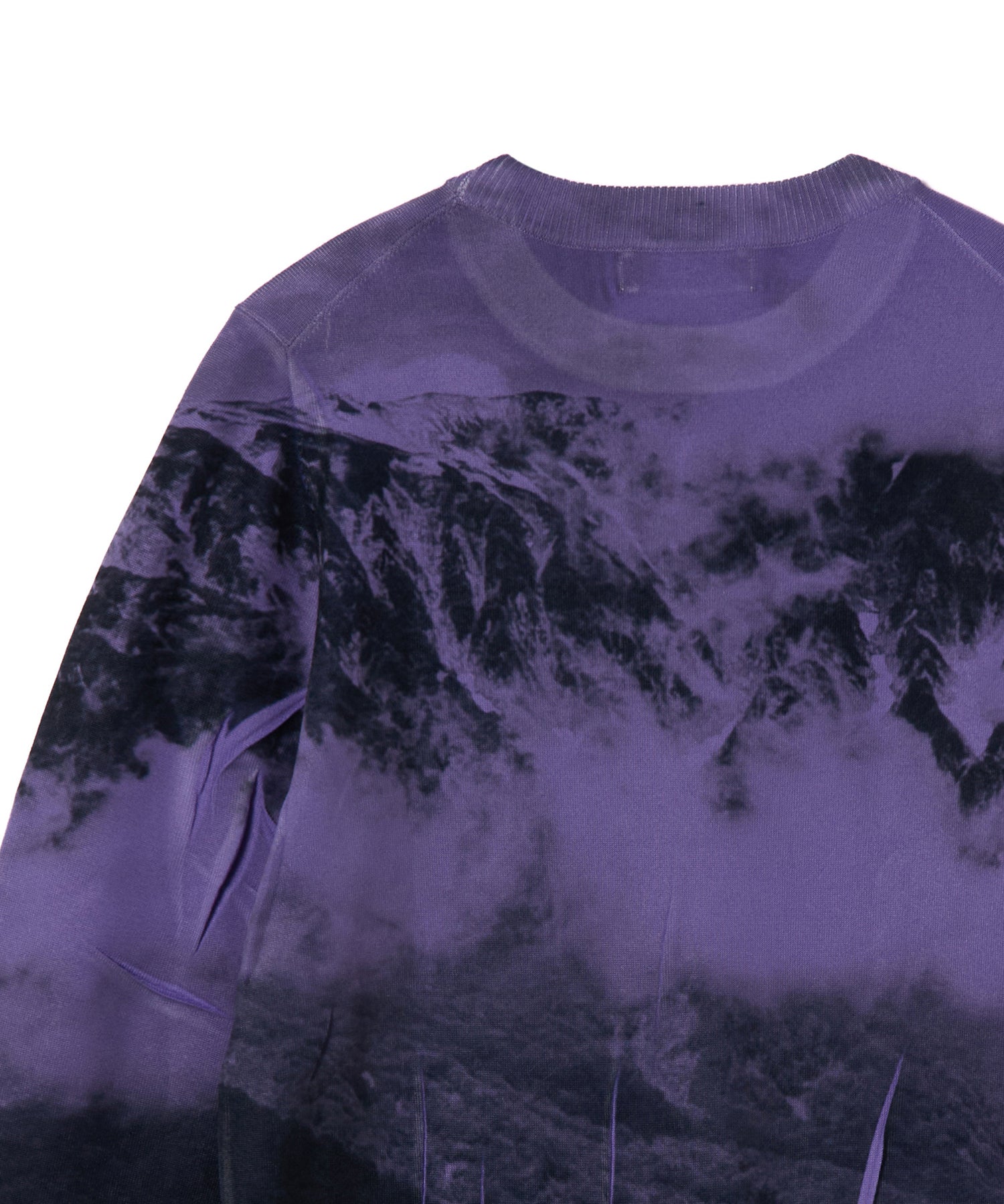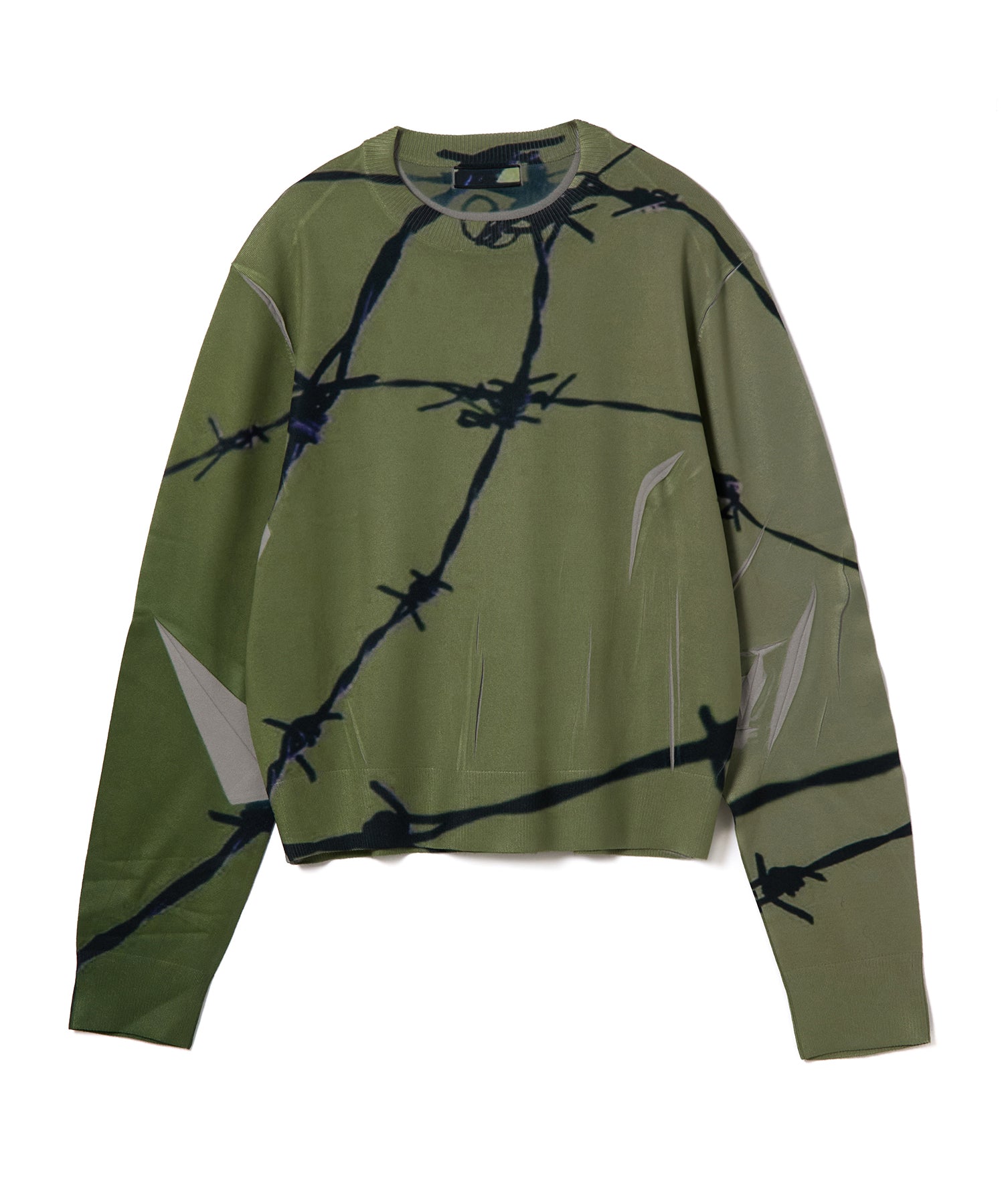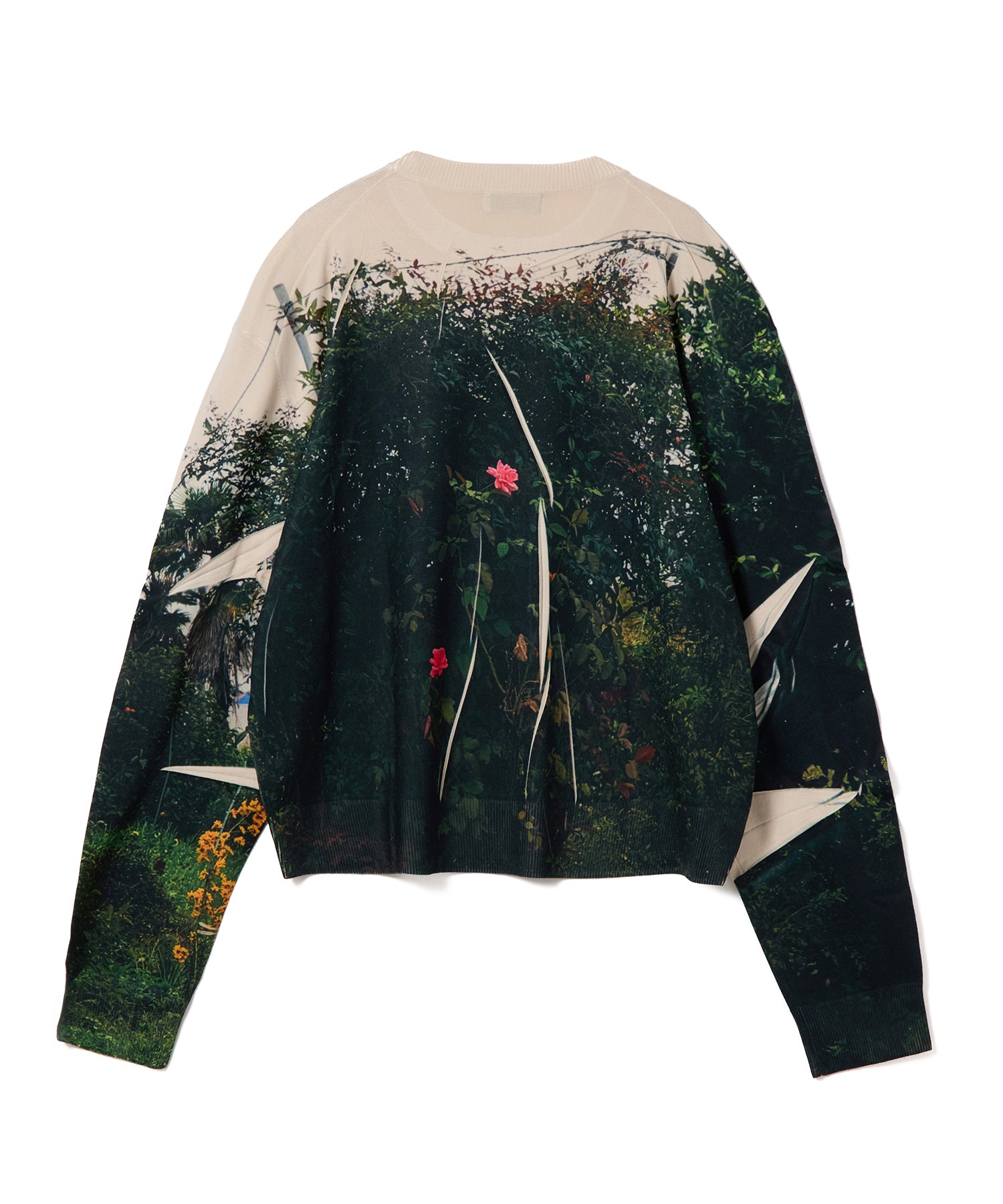 花が咲いた風景、有刺鉄線、雄大な山脈をイメージした転写プリントを施しました。