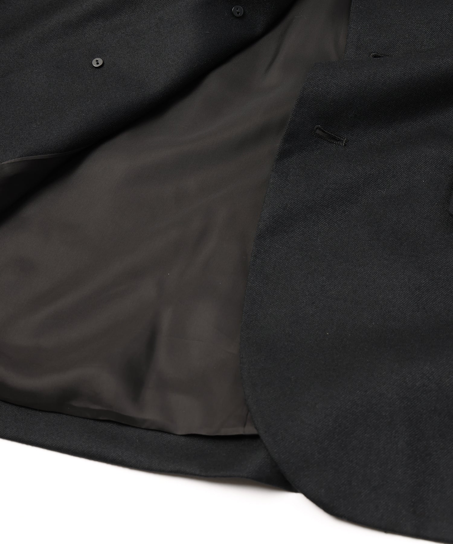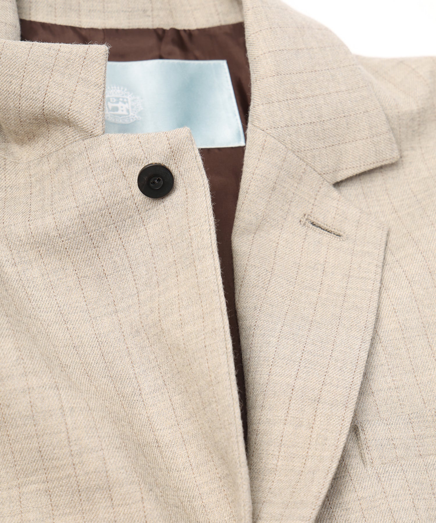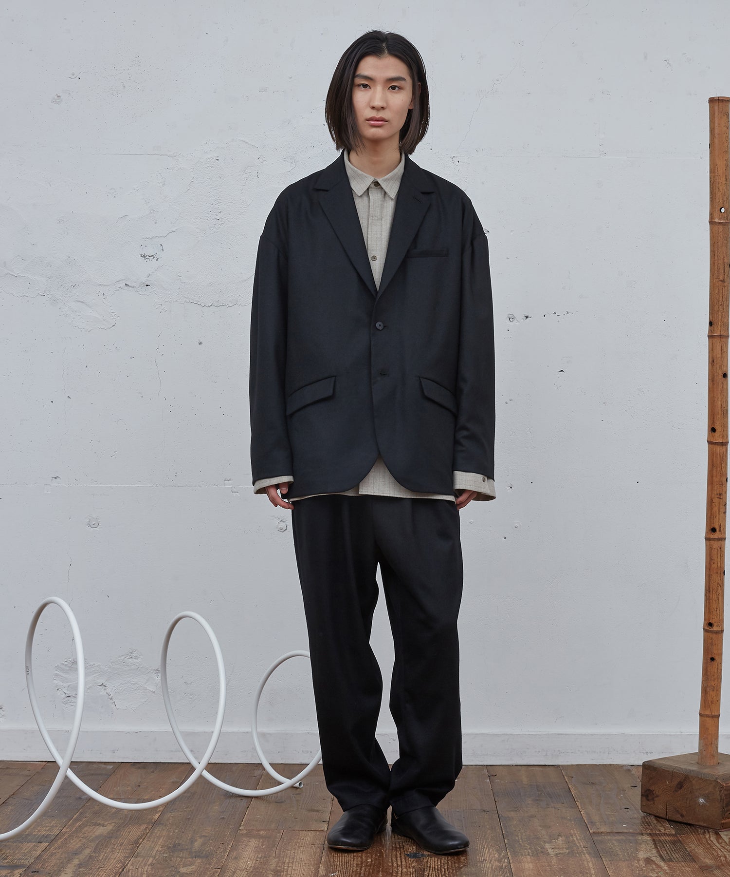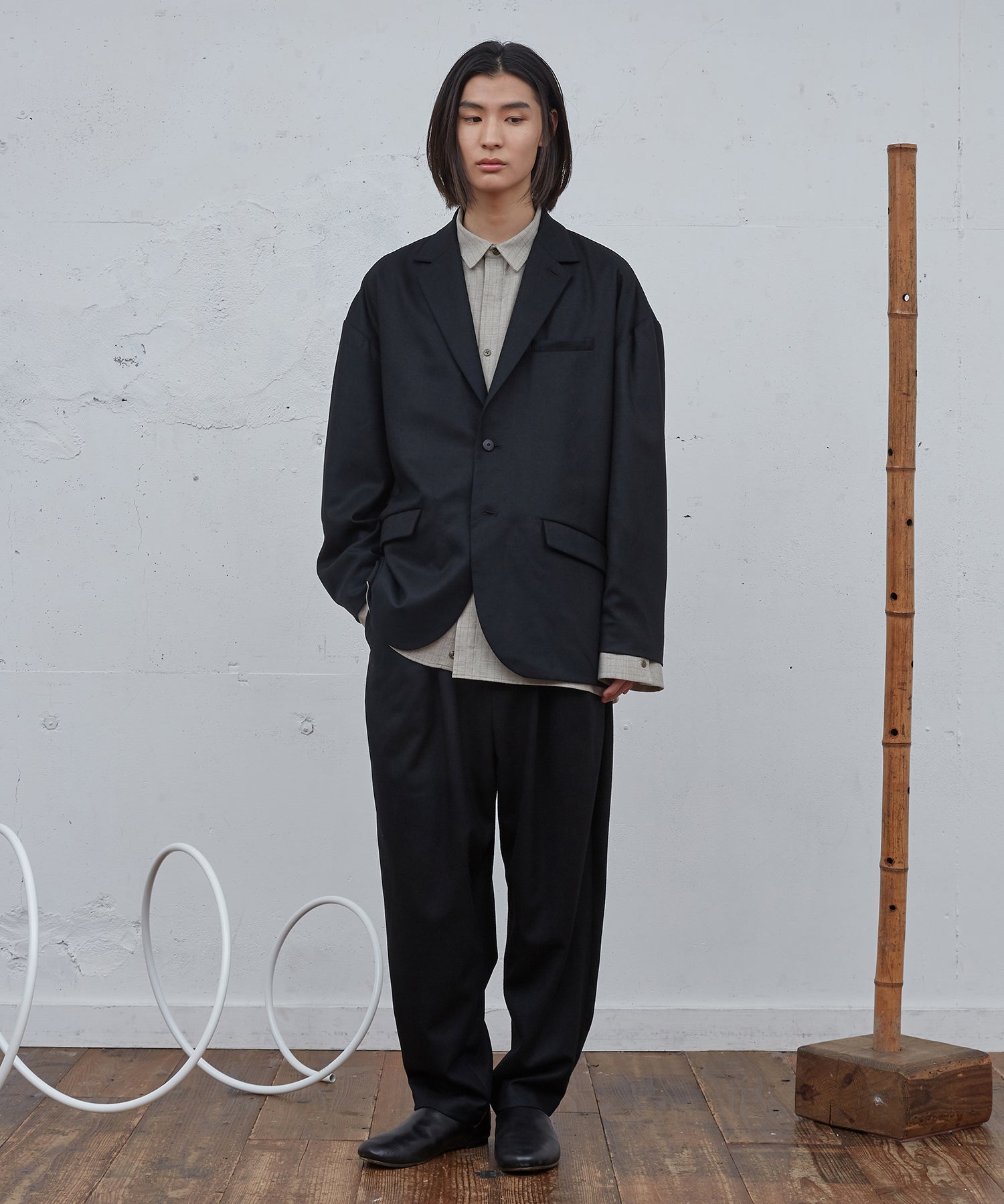 テーラードジャケットして、ハイネックのジャケットとして、2通りの着こなしを楽しめるジャケット。