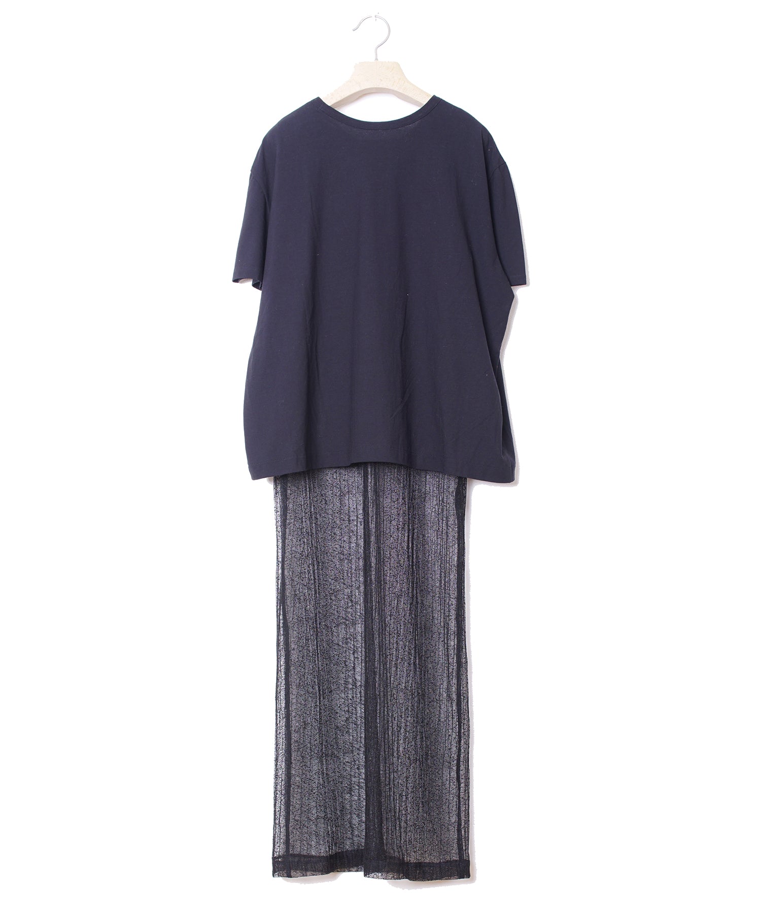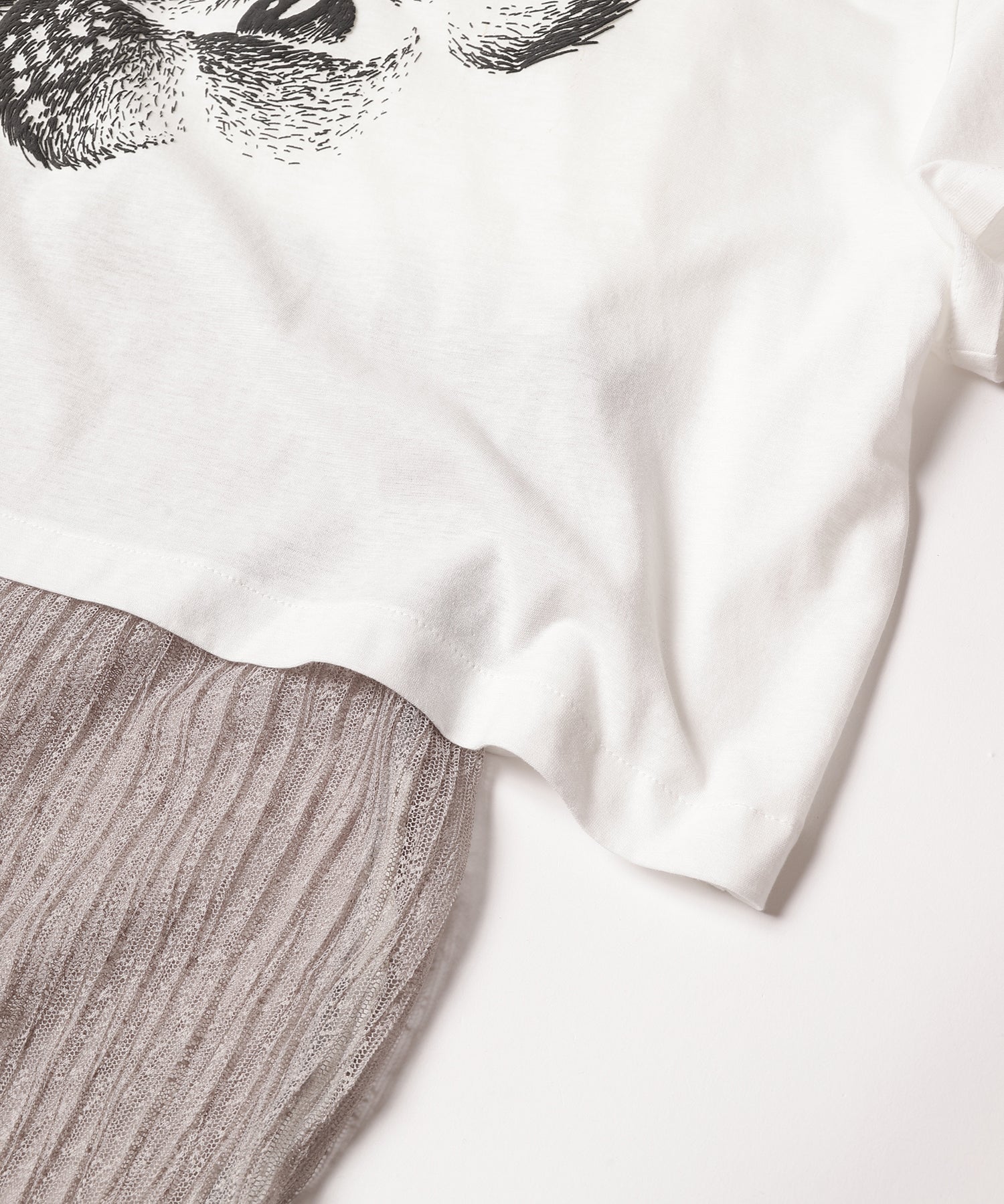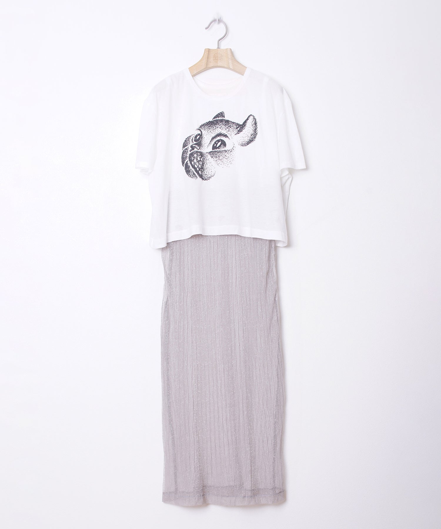 着脱可能なラメレースのスカートが付属するレイヤースタイルのドレスTシャツです。