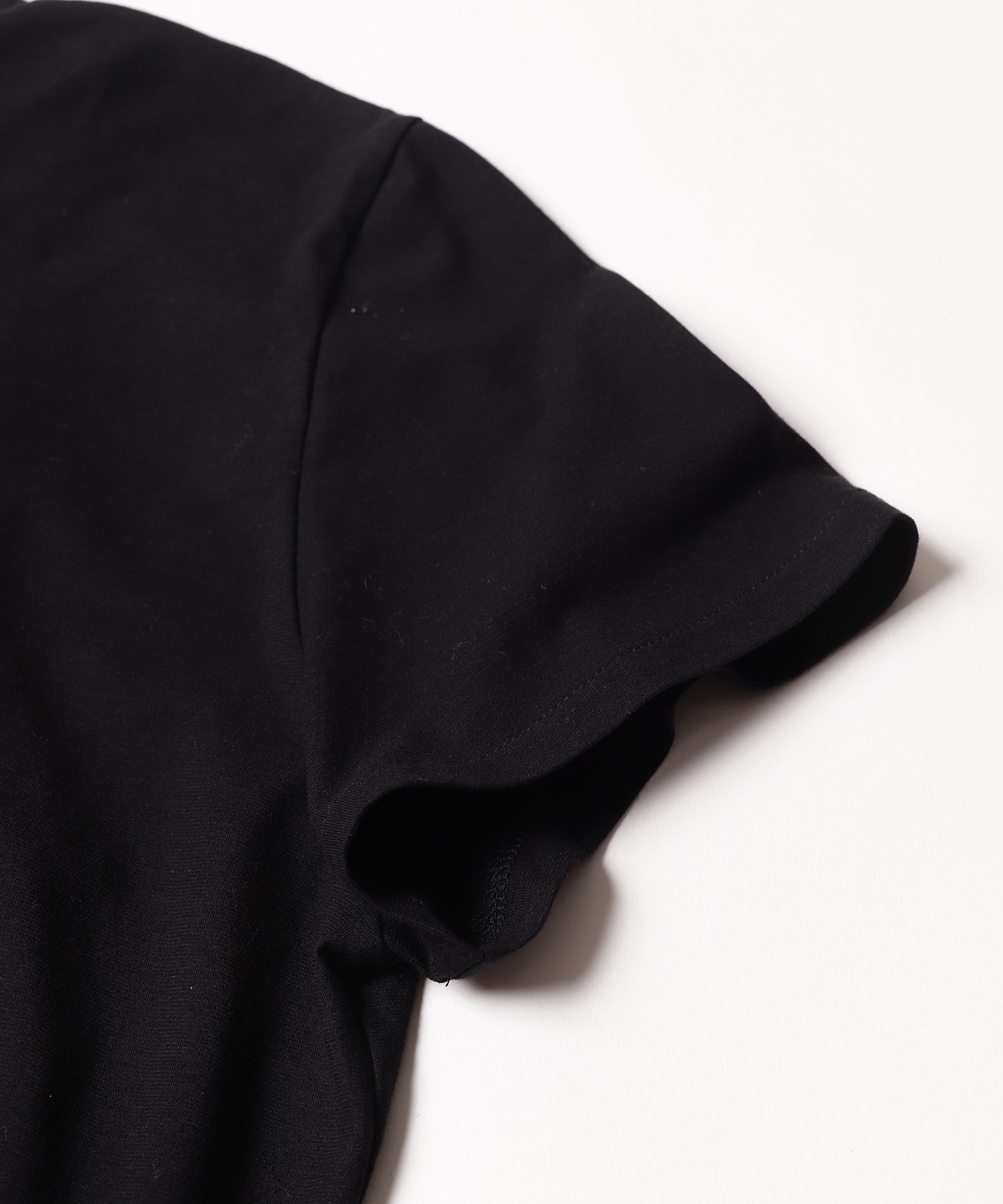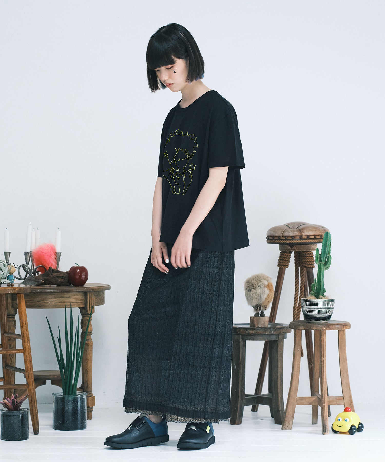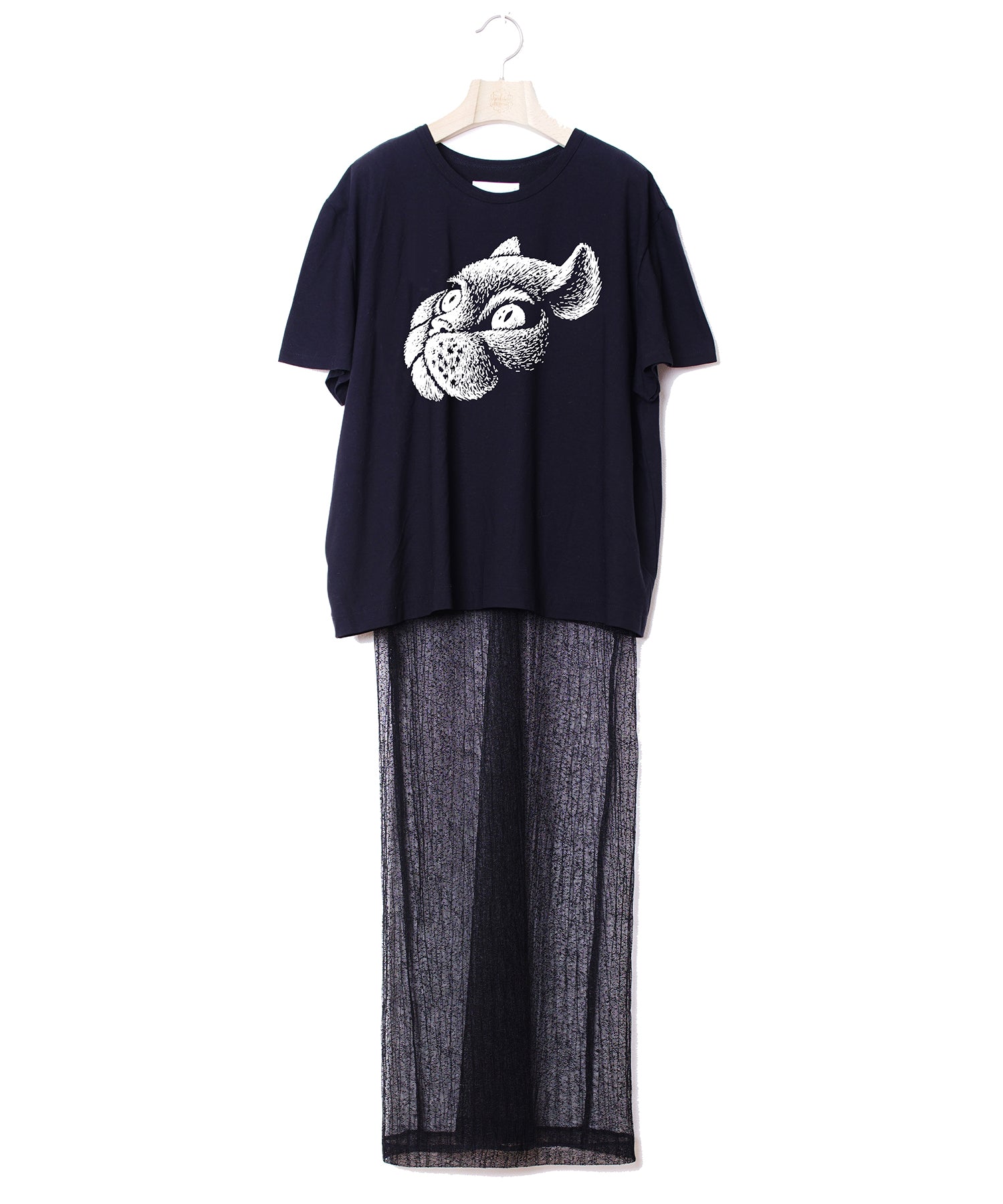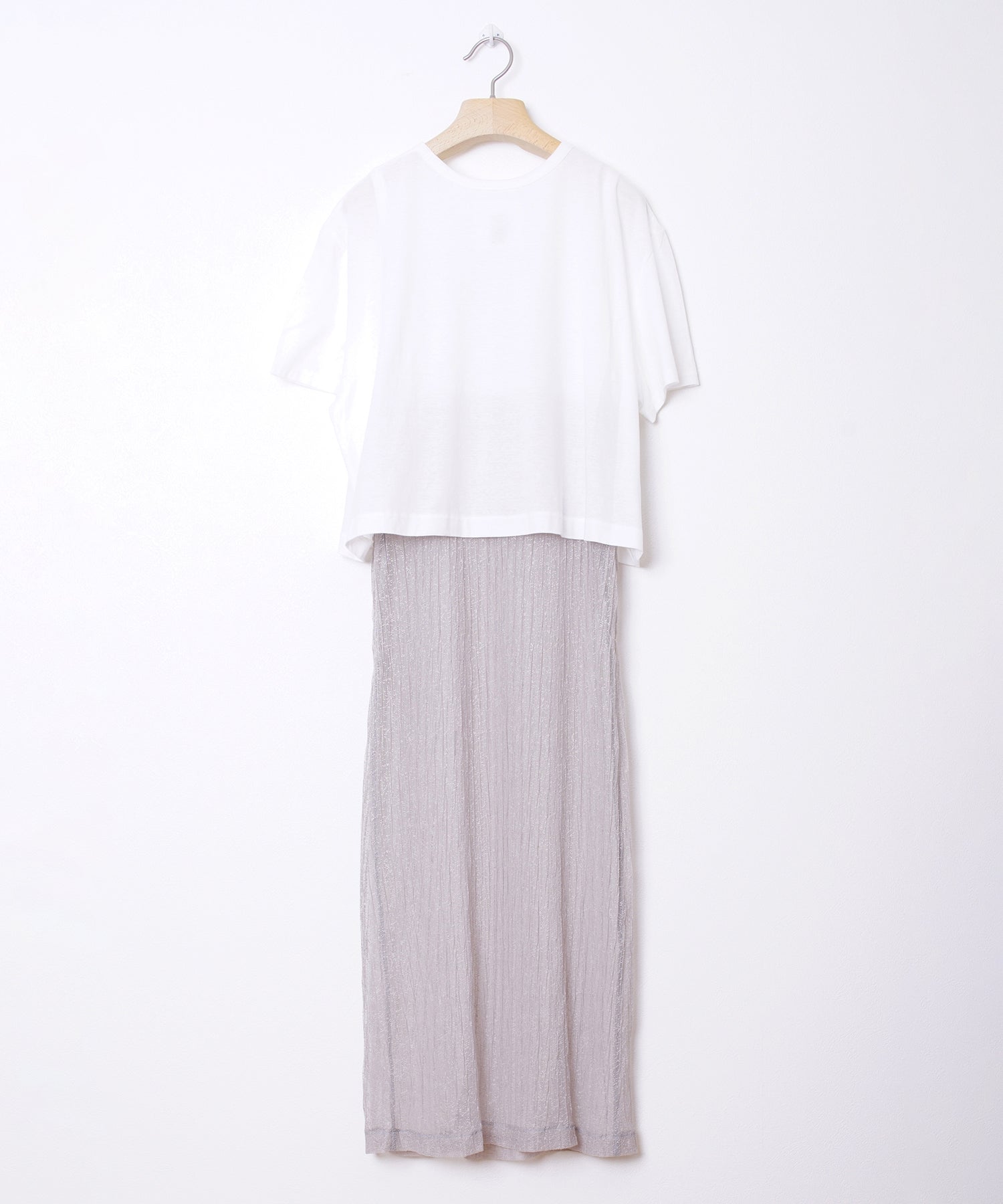 着脱可能なラメレースのスカートが付属するレイヤースタイルのドレスTシャツです。