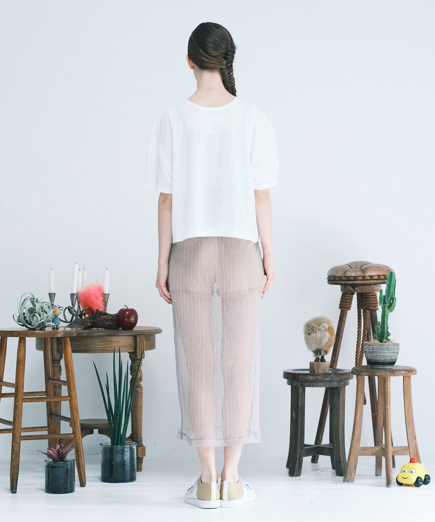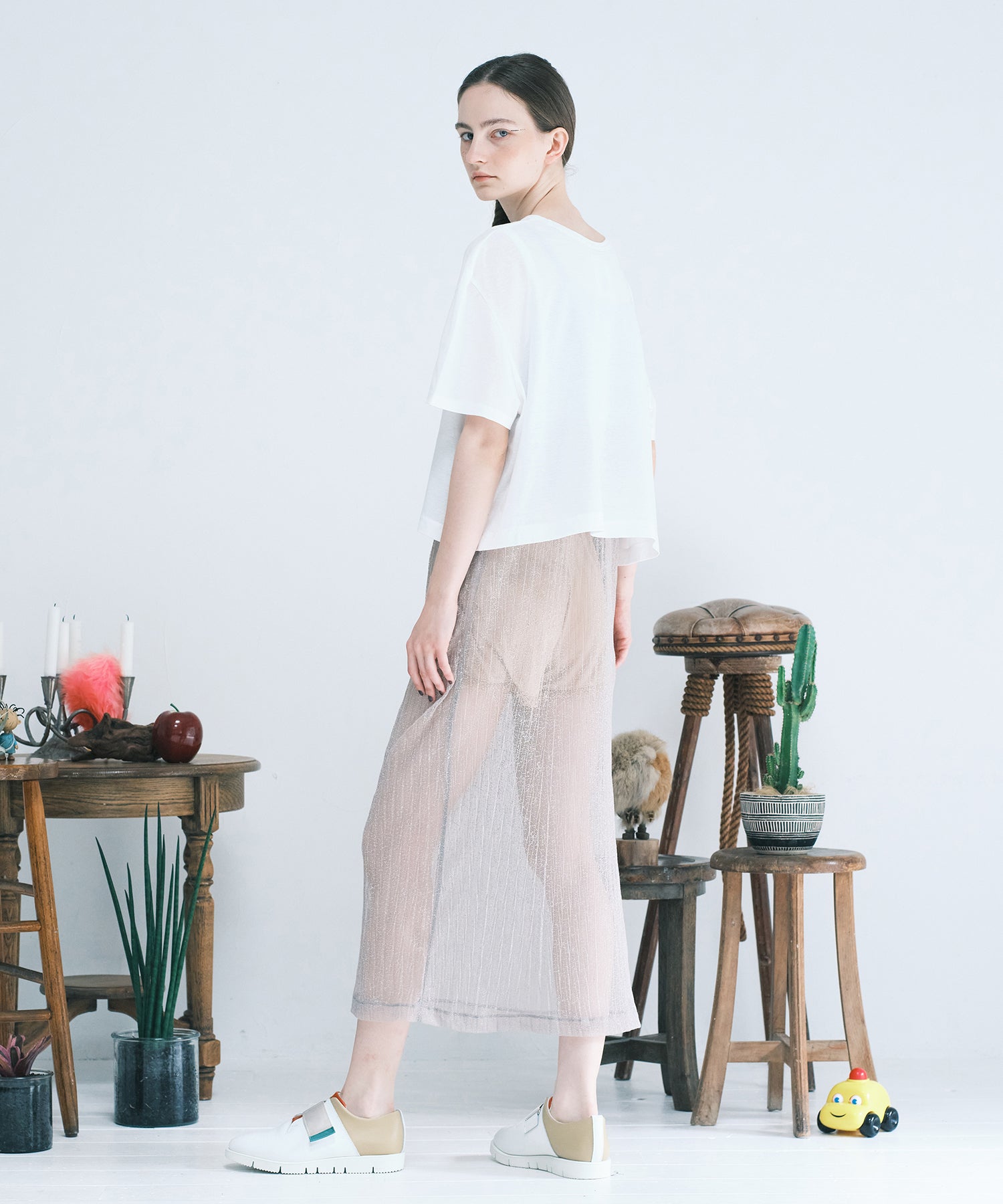 清涼感とともに、透け感のあるスカート、フルレングス、クロップド、ショートパンツ、合わせるボトムによって表情が変化します。
