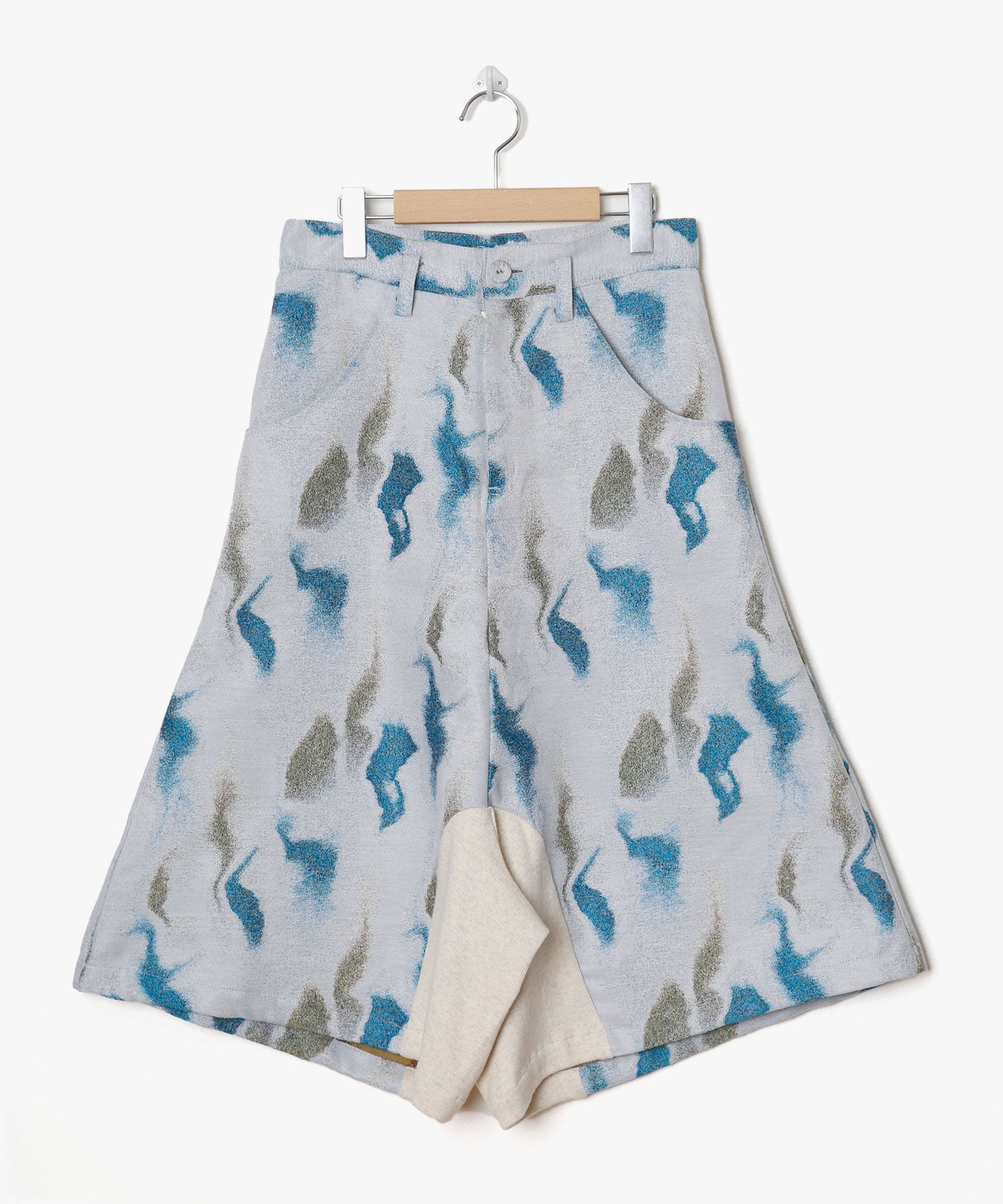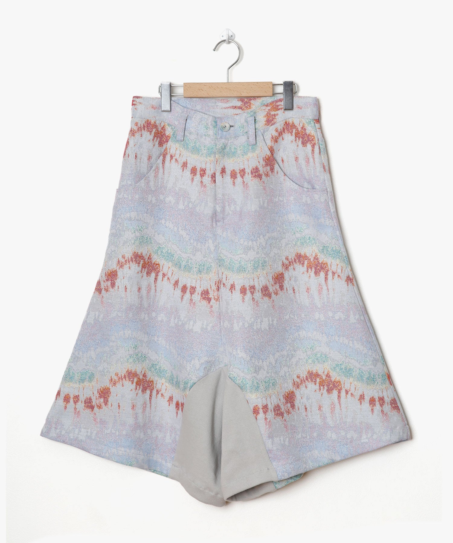 さわやかな手染めの模様を緻密なジャカード柄で再現した職人技が光るオリジナル素材を使用したワイドキュロットパンツです。