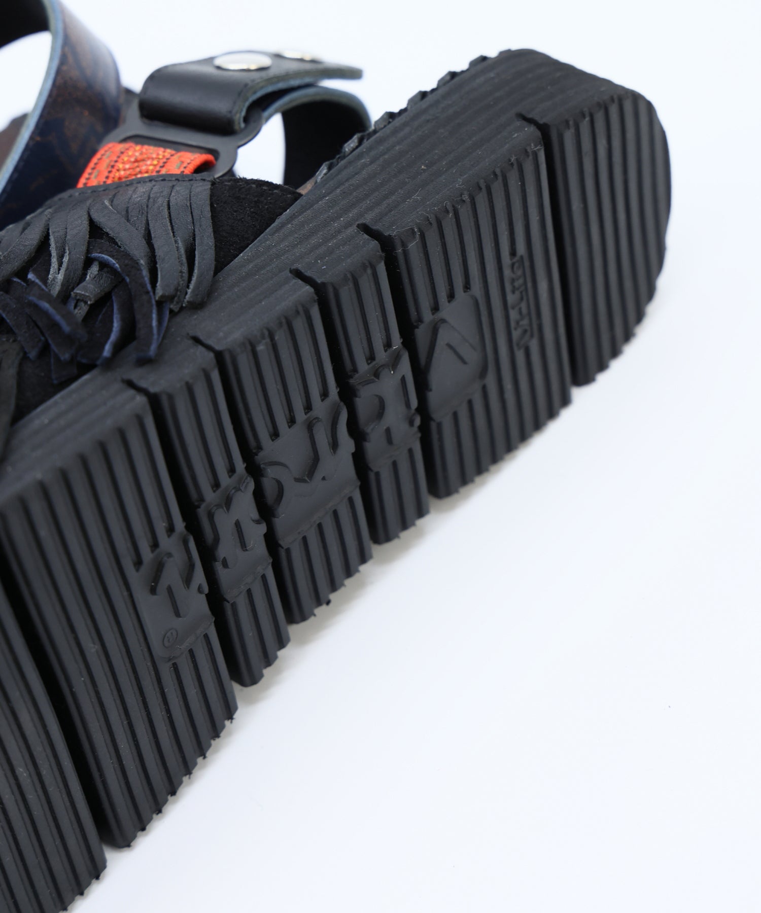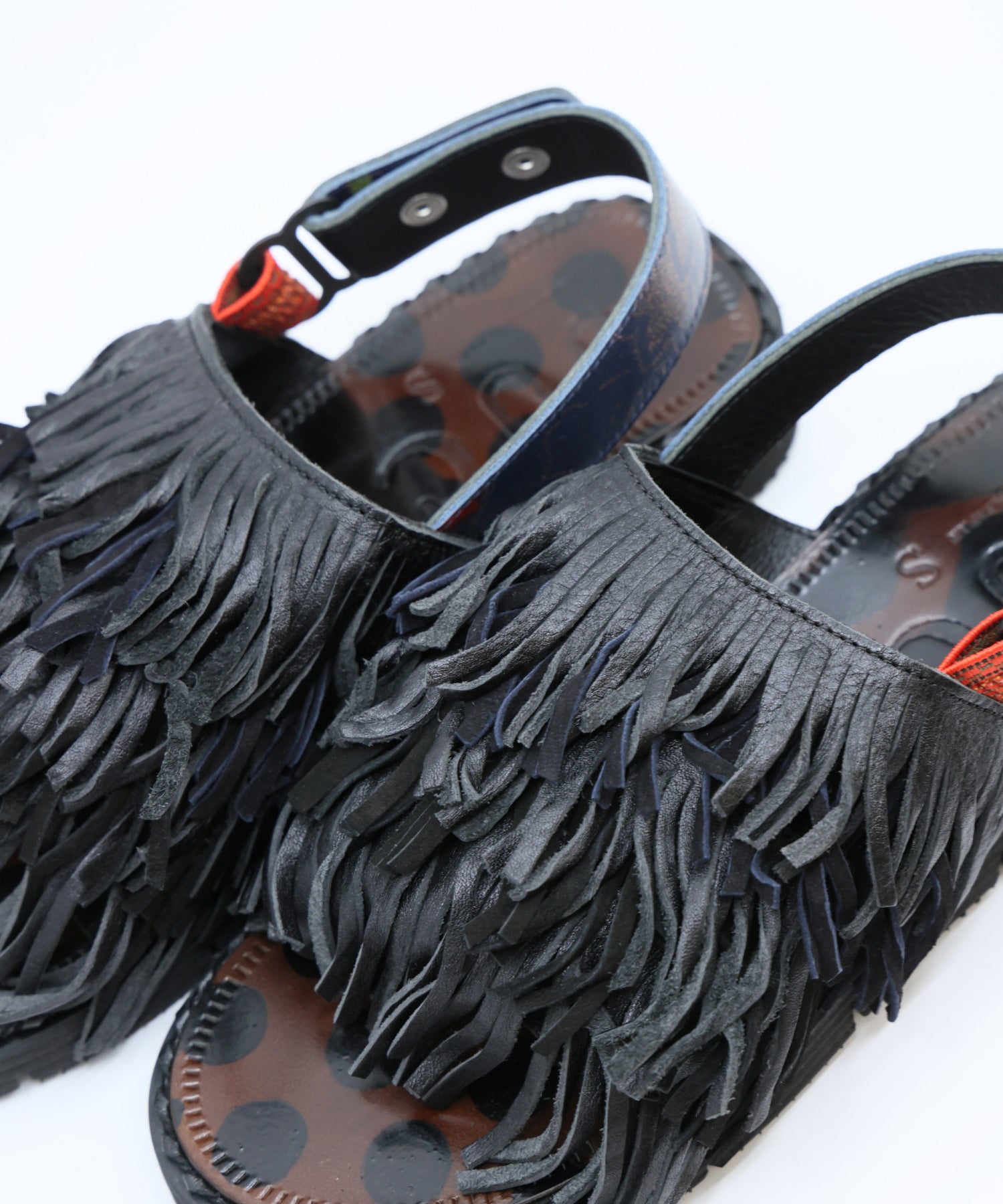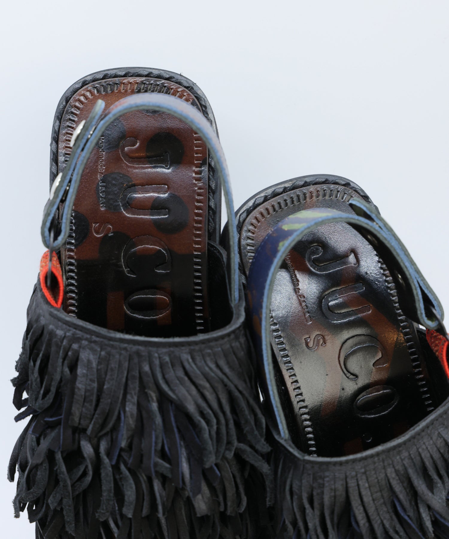 革を手洗いし、くせっ毛のような質感を演出した、JUCO.ならではのインパクトあるサンダル。