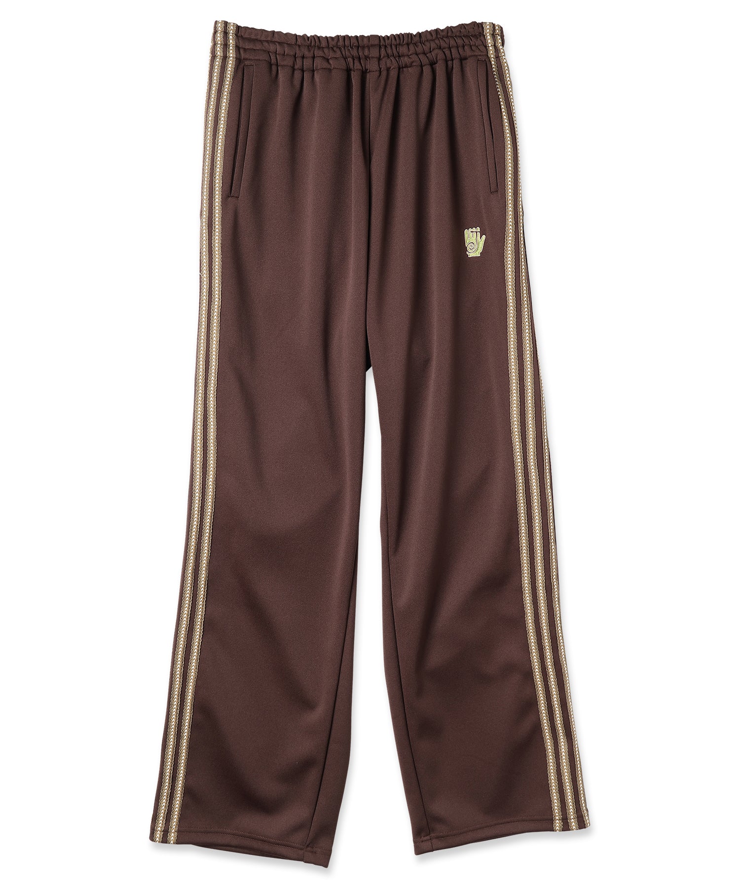 鮮やかな刺繍テープが特徴的なトラックパンツ。