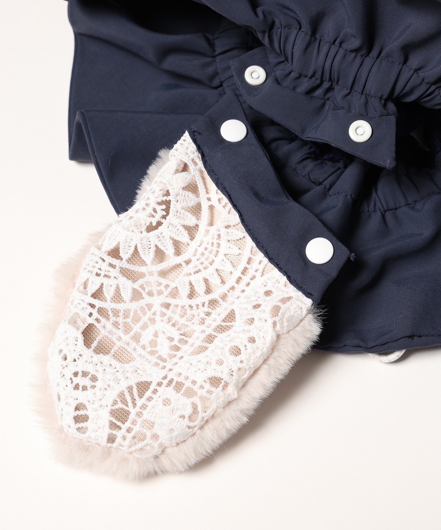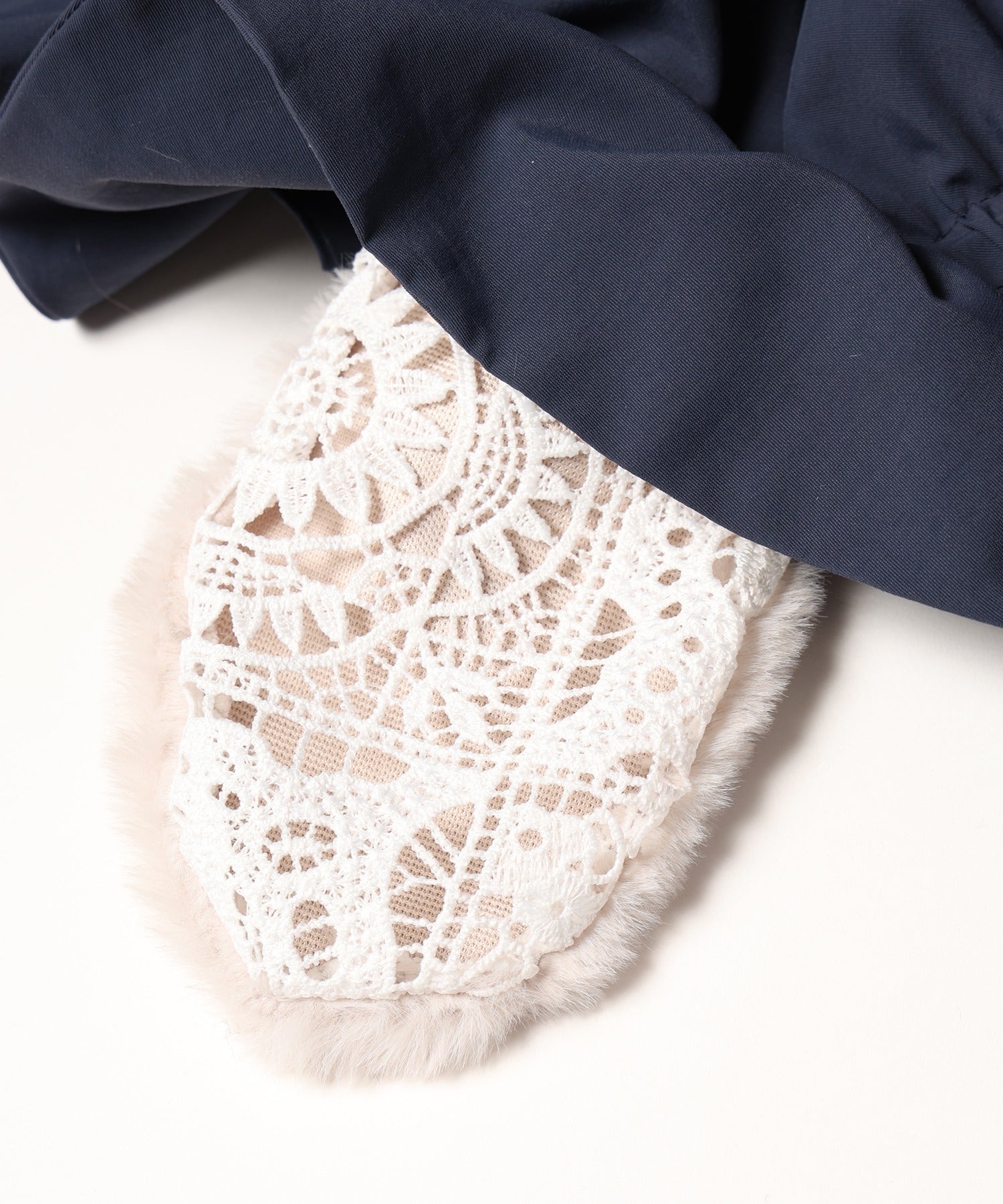 レースとエコファーの耳当て部分は取り外しが可能なので2通りの着こなしを楽しめます。