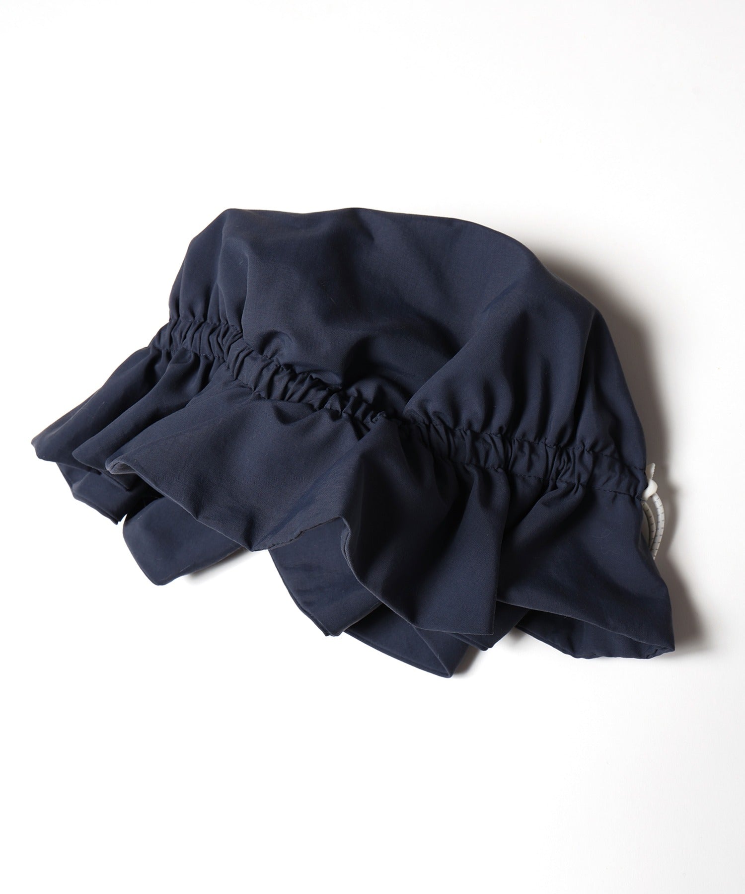 ナイトキャップをベッドサイドドラマ流にアレンジして、外でもかぶれるようにデザイン。